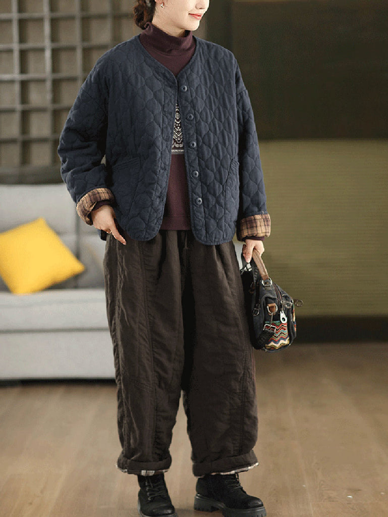 Damen Herbst Pure Color 100% Leinen gepolsterte gerade Hose