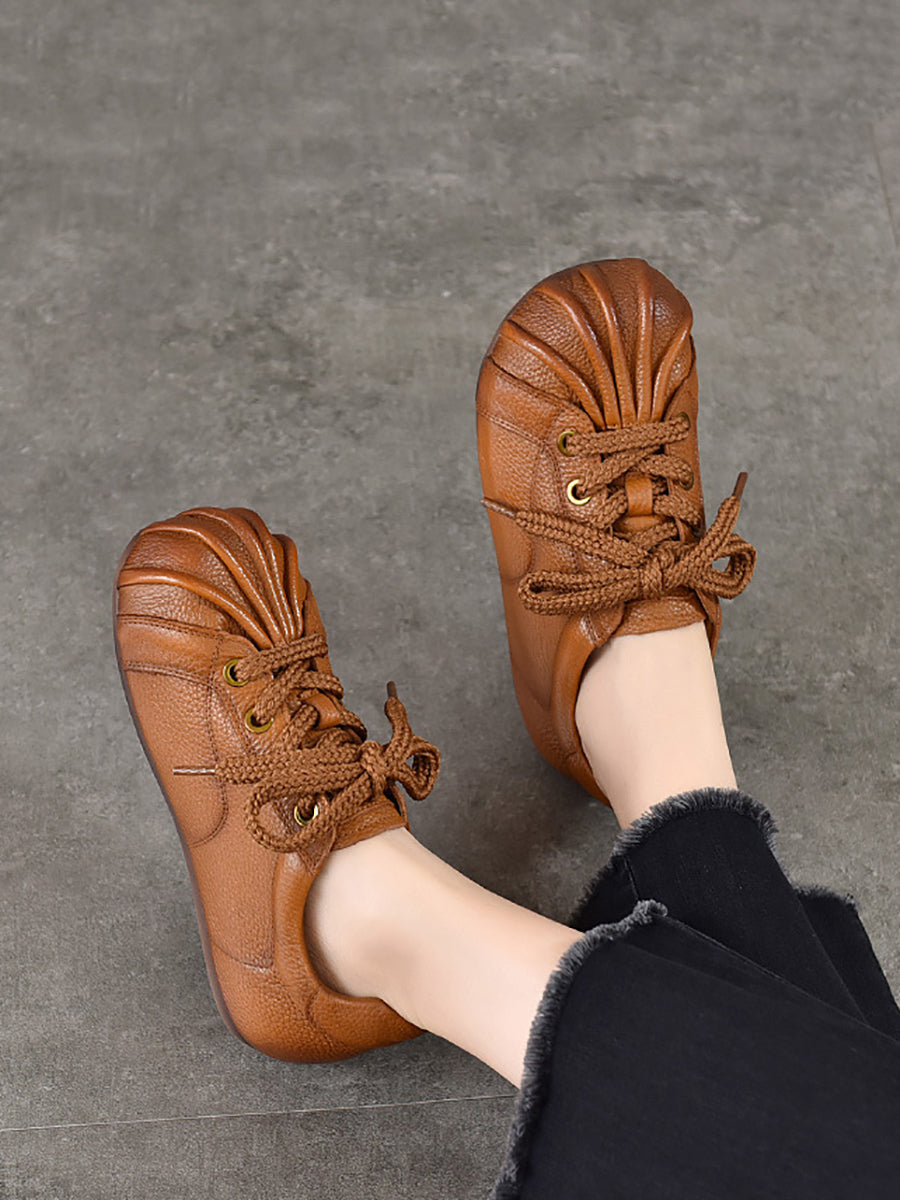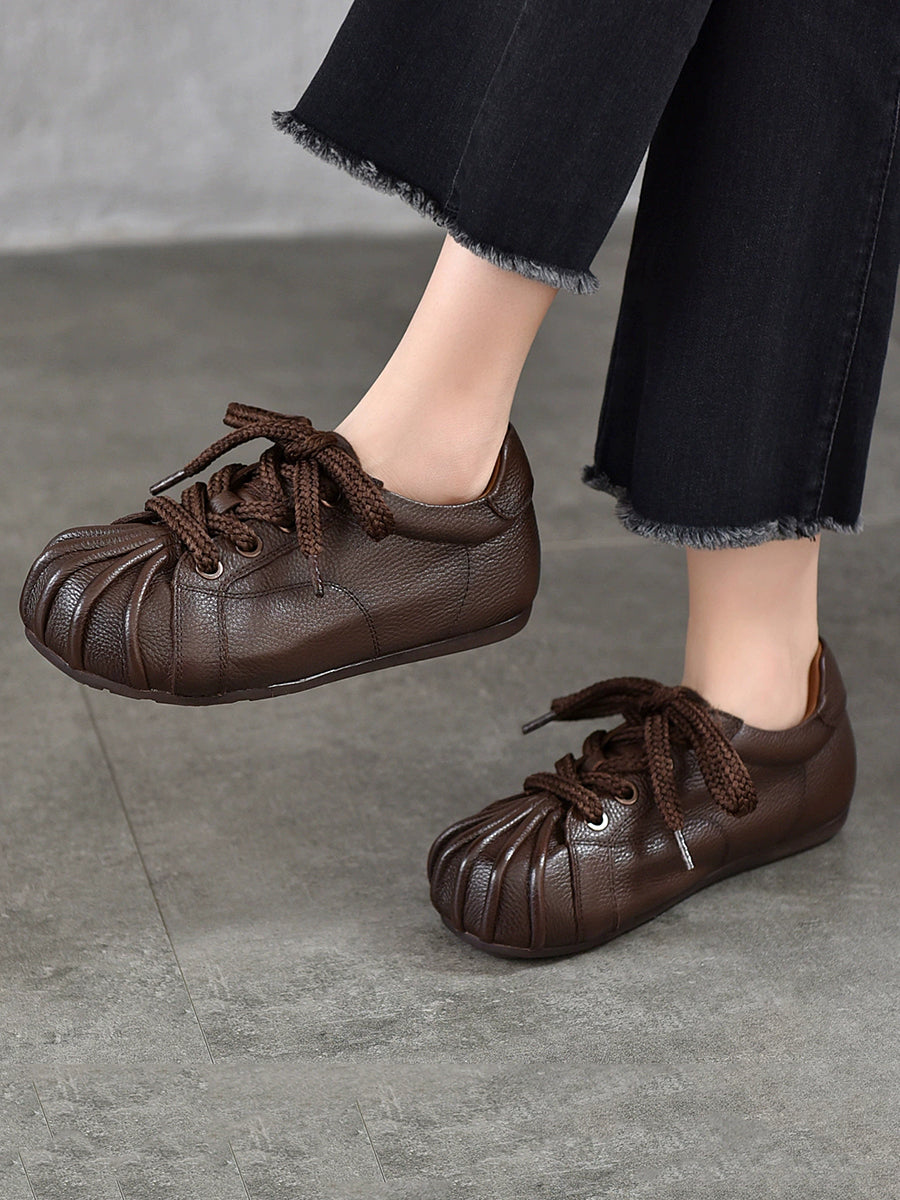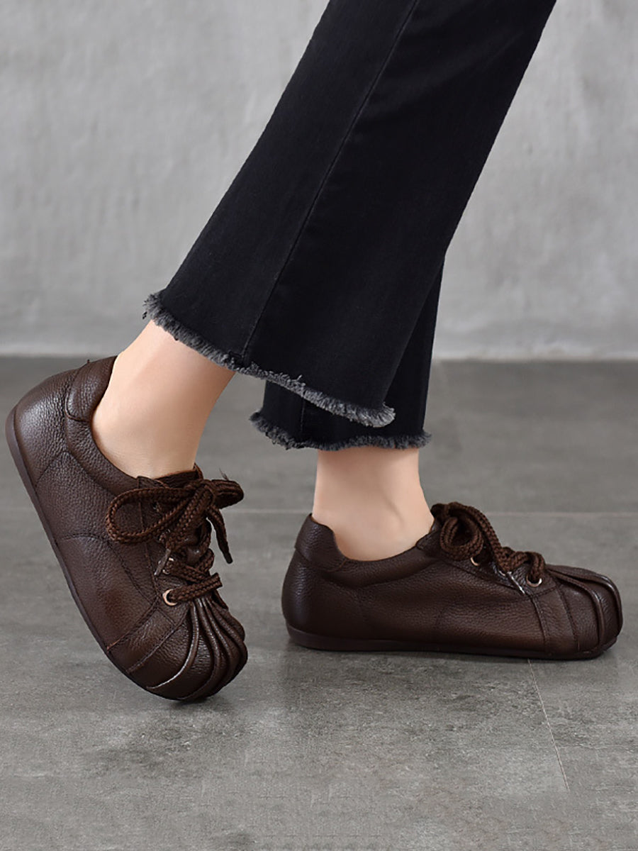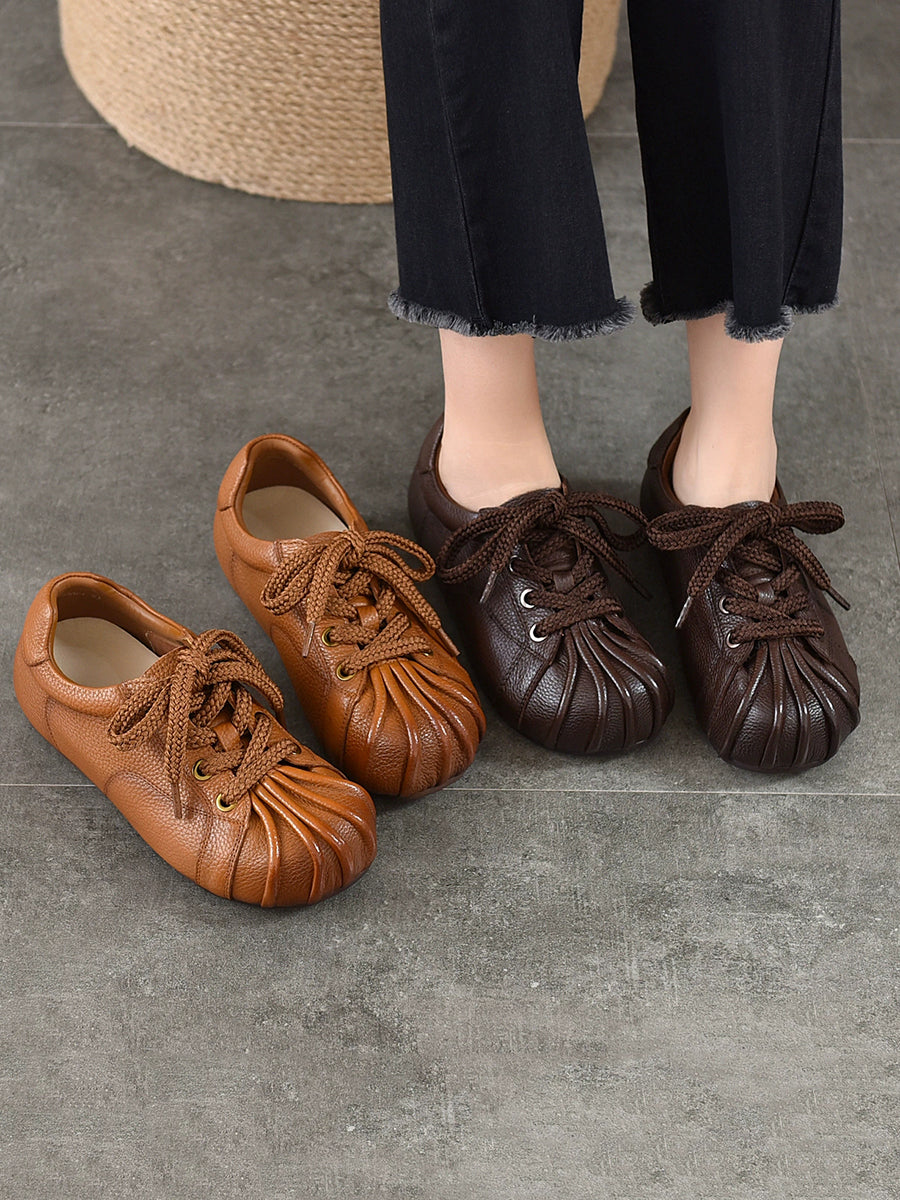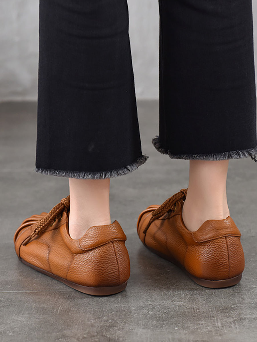 Retro-Ballerinas aus echtem Leder für Damen