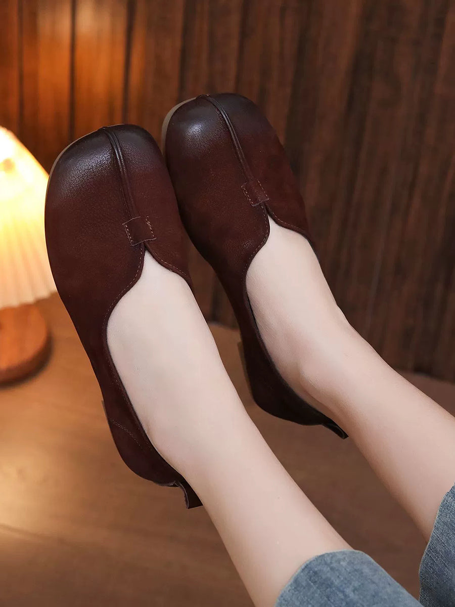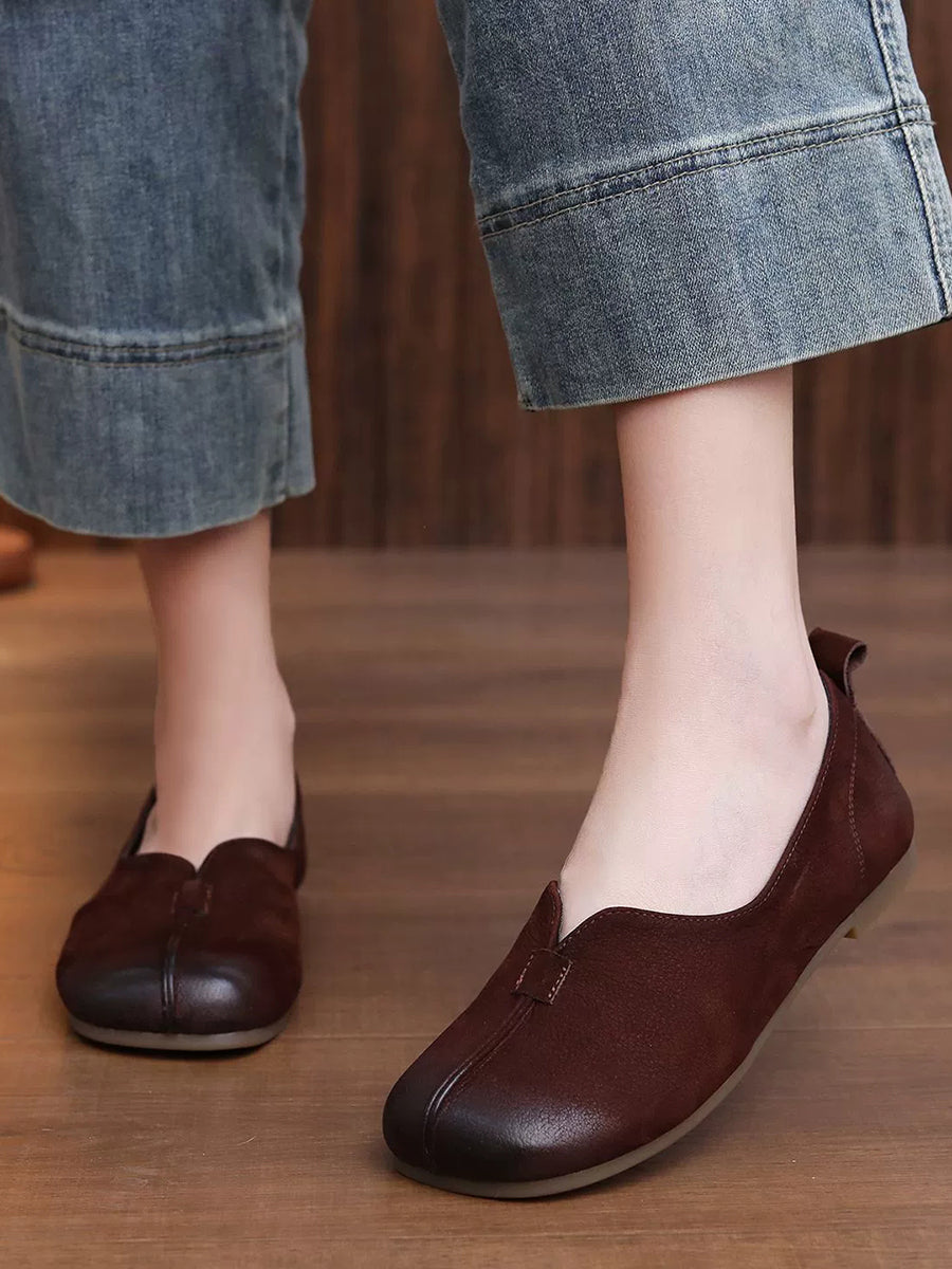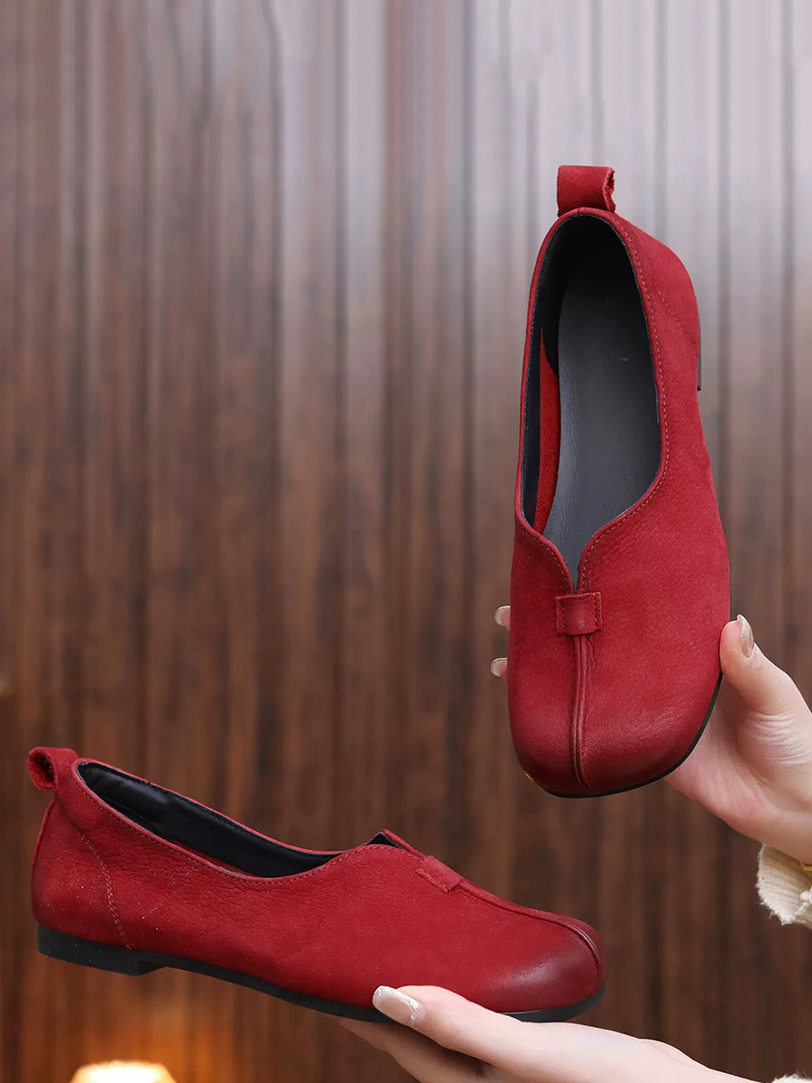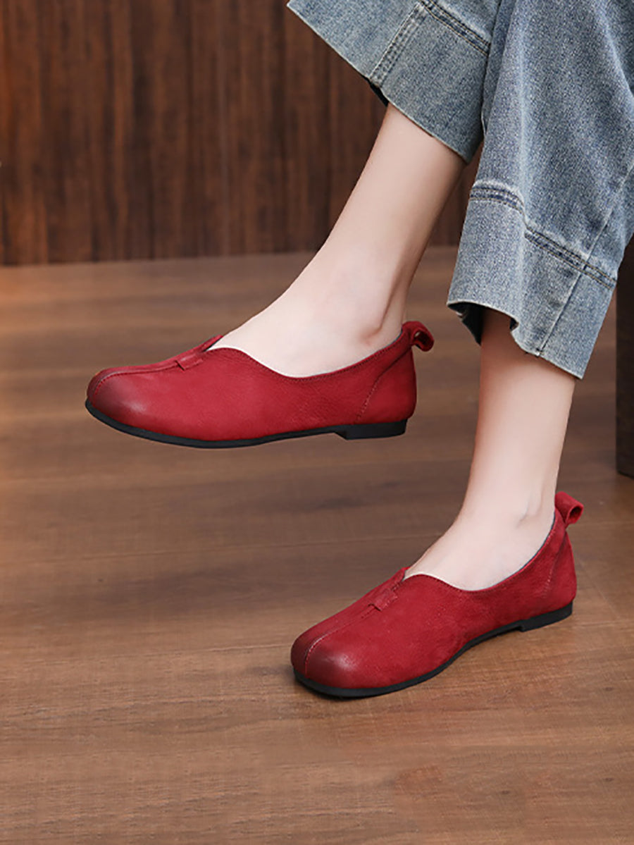 Damen-Sommerschuhe aus echtem Leder mit niedrigem Absatz