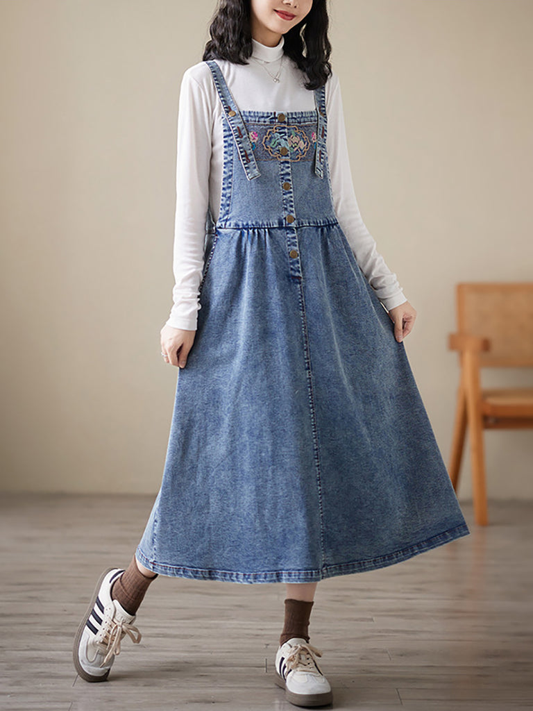Damen Sommer Casual Floral Denim Weite Bein Jumpsuits