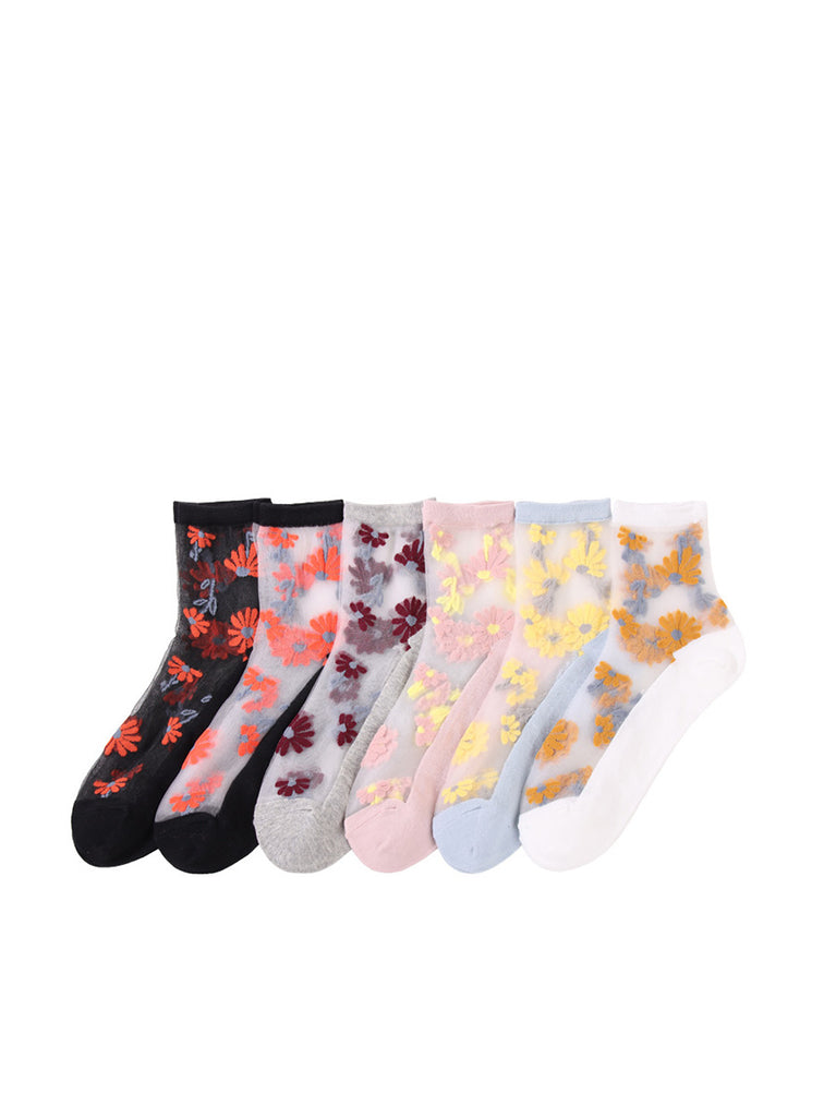 6 Paar dünne Damensocken mit Blumenmuster für den Sommer