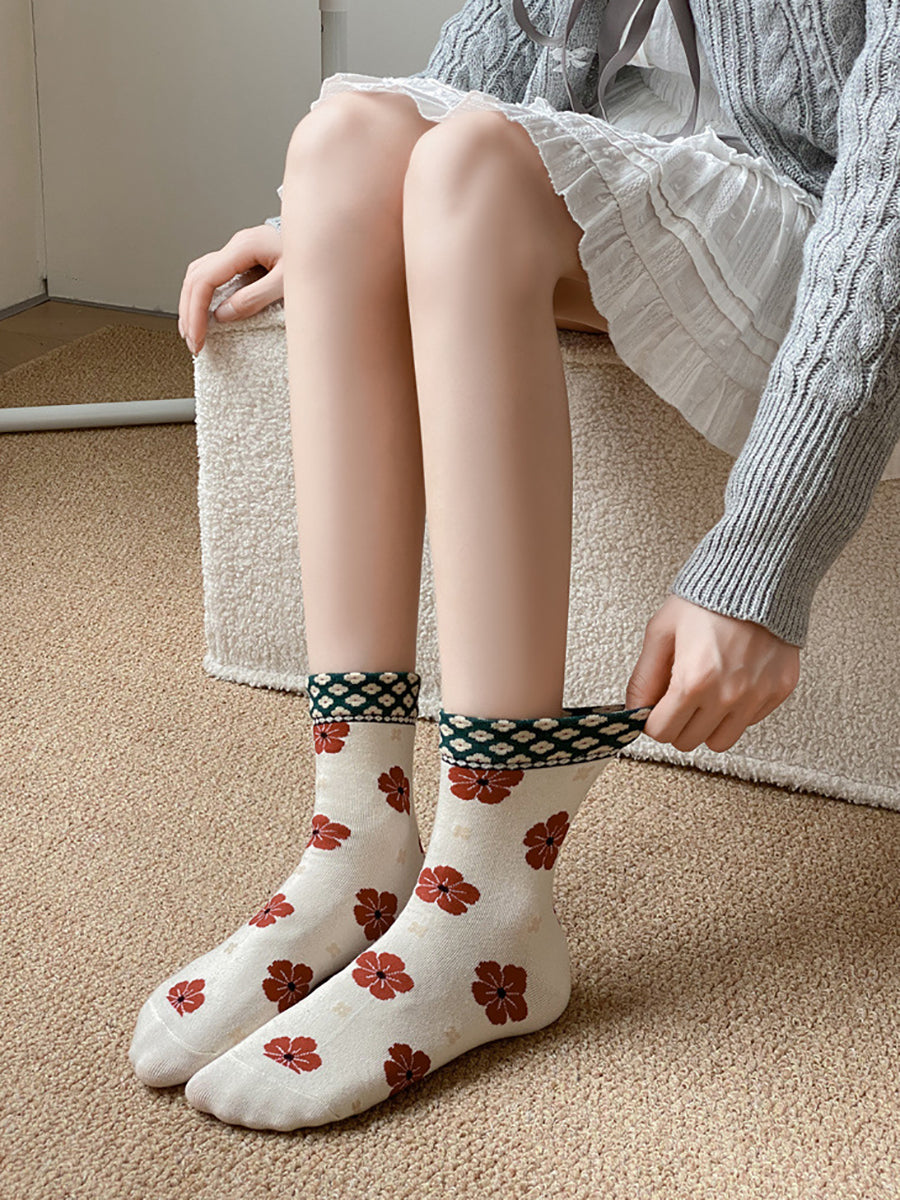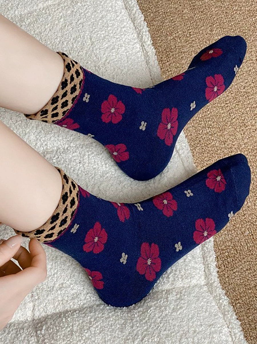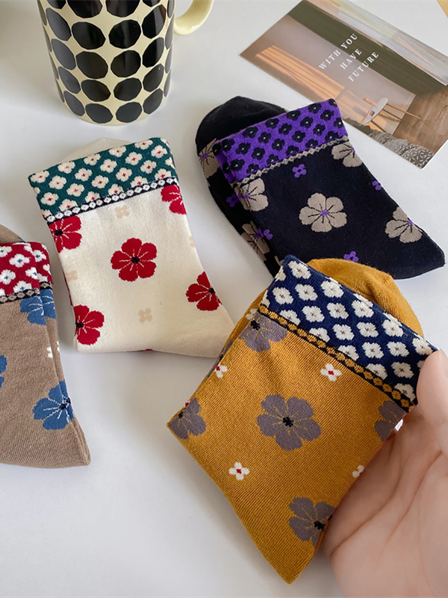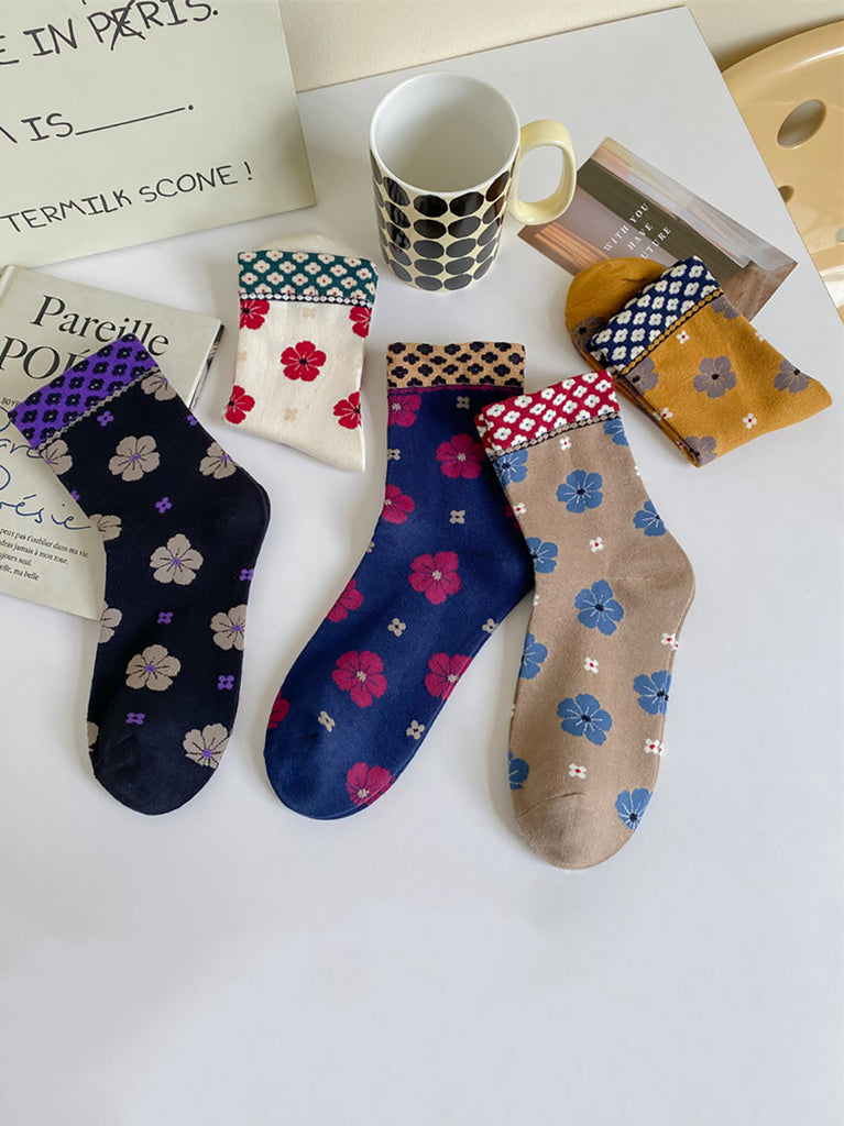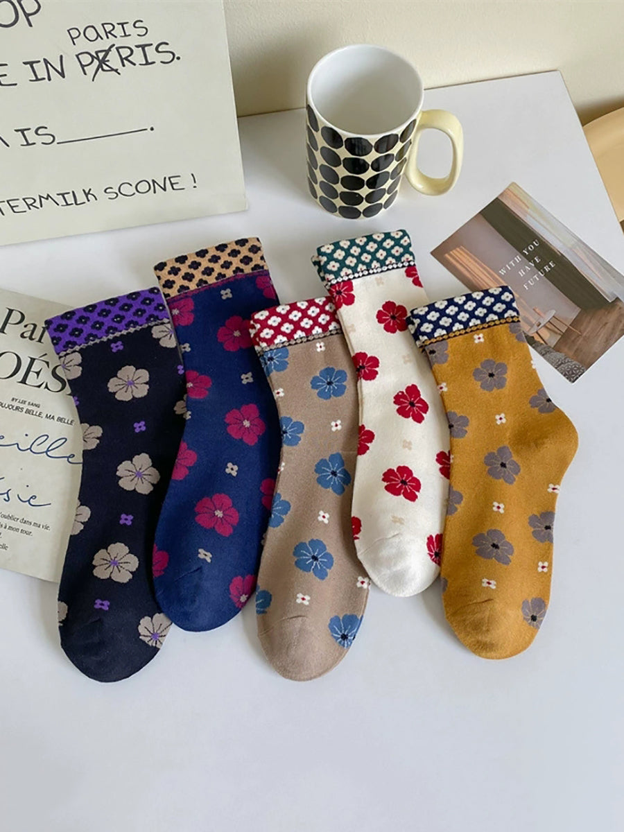 5 Paar Damen-Socken aus Baumwolle mit kunstvollem Blumenmuster