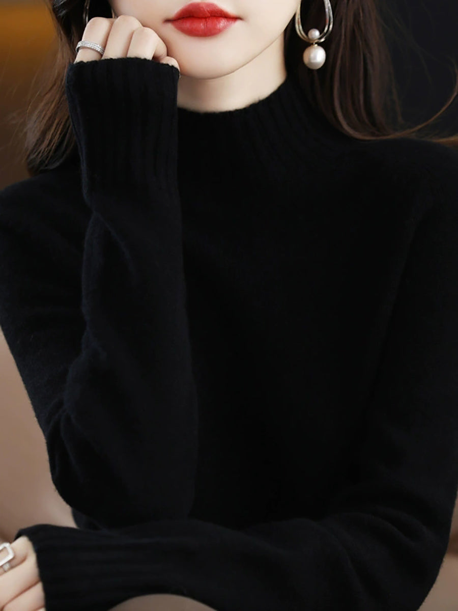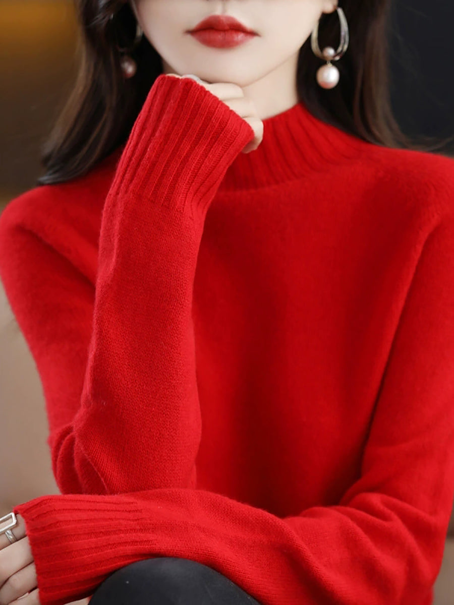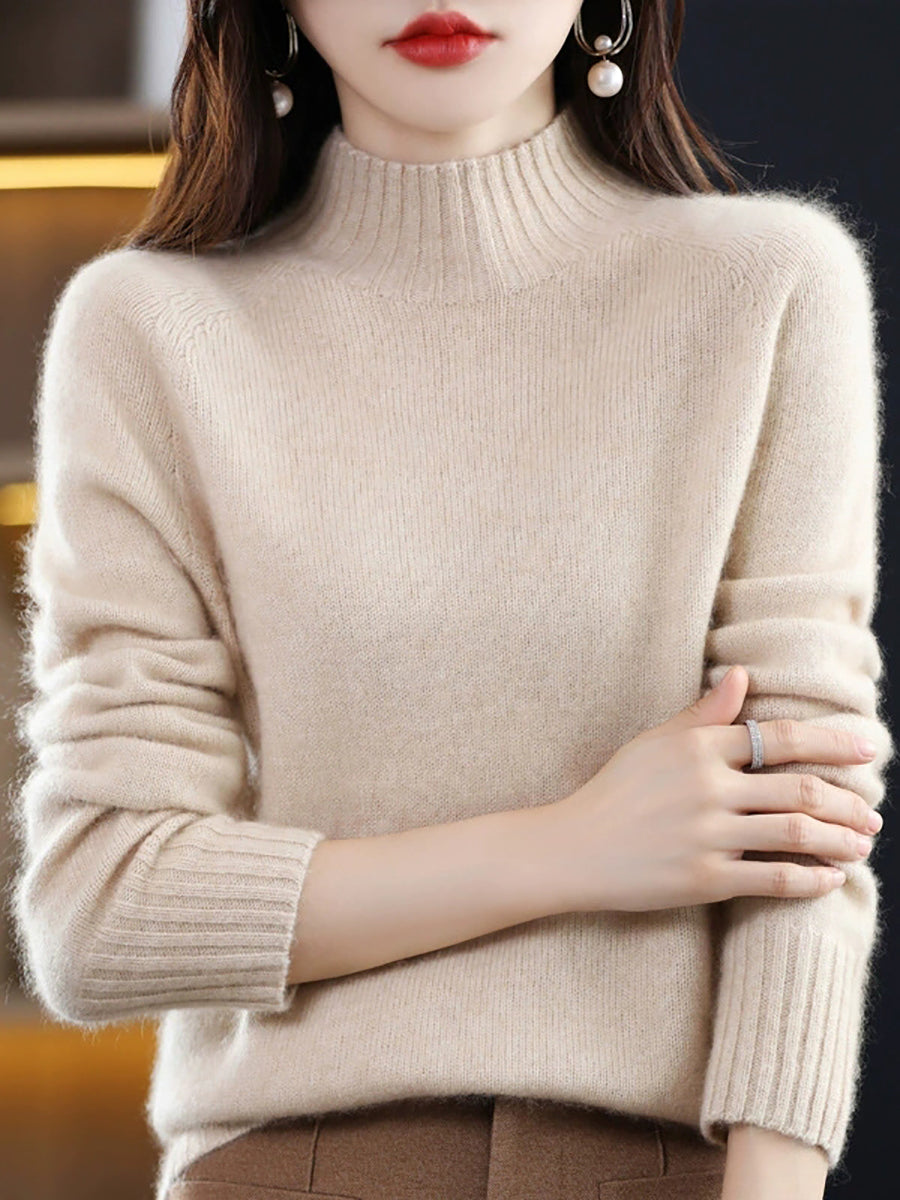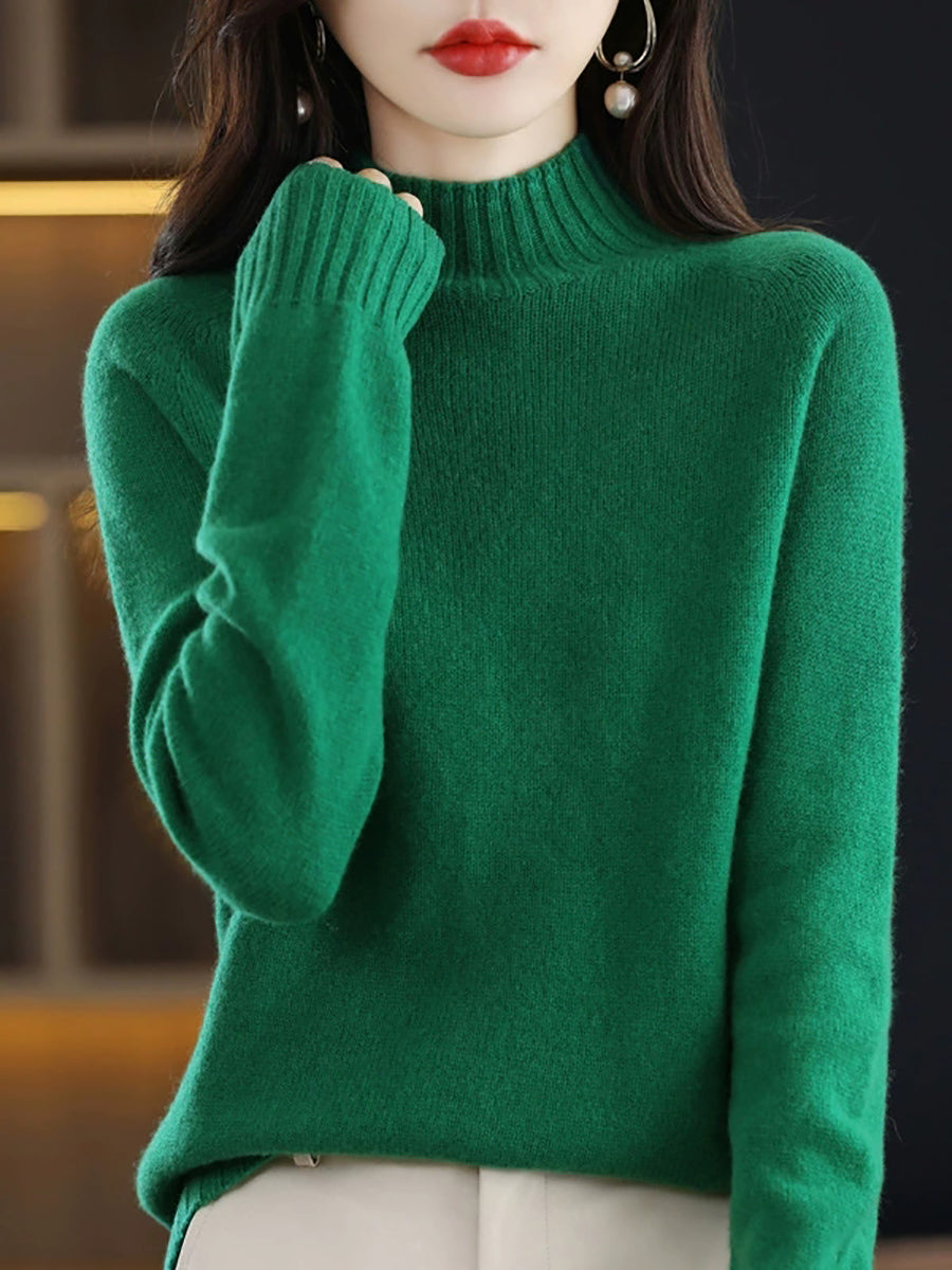 Damen Herbst Artsy Einfarbiger Strickpullover mit halbem Rollkragen