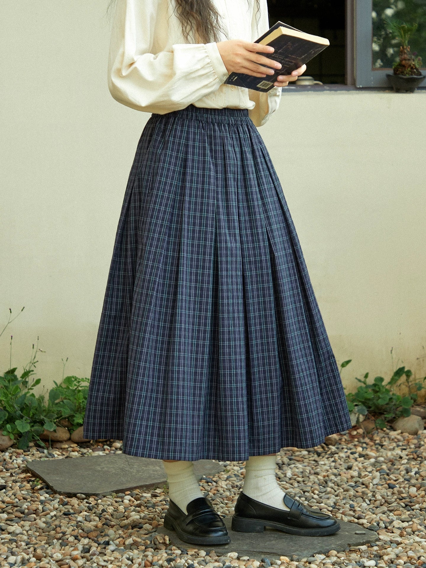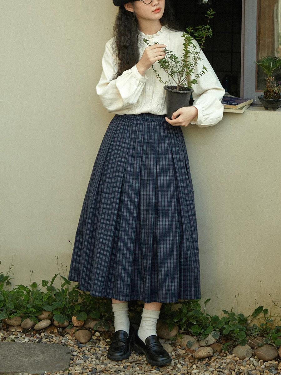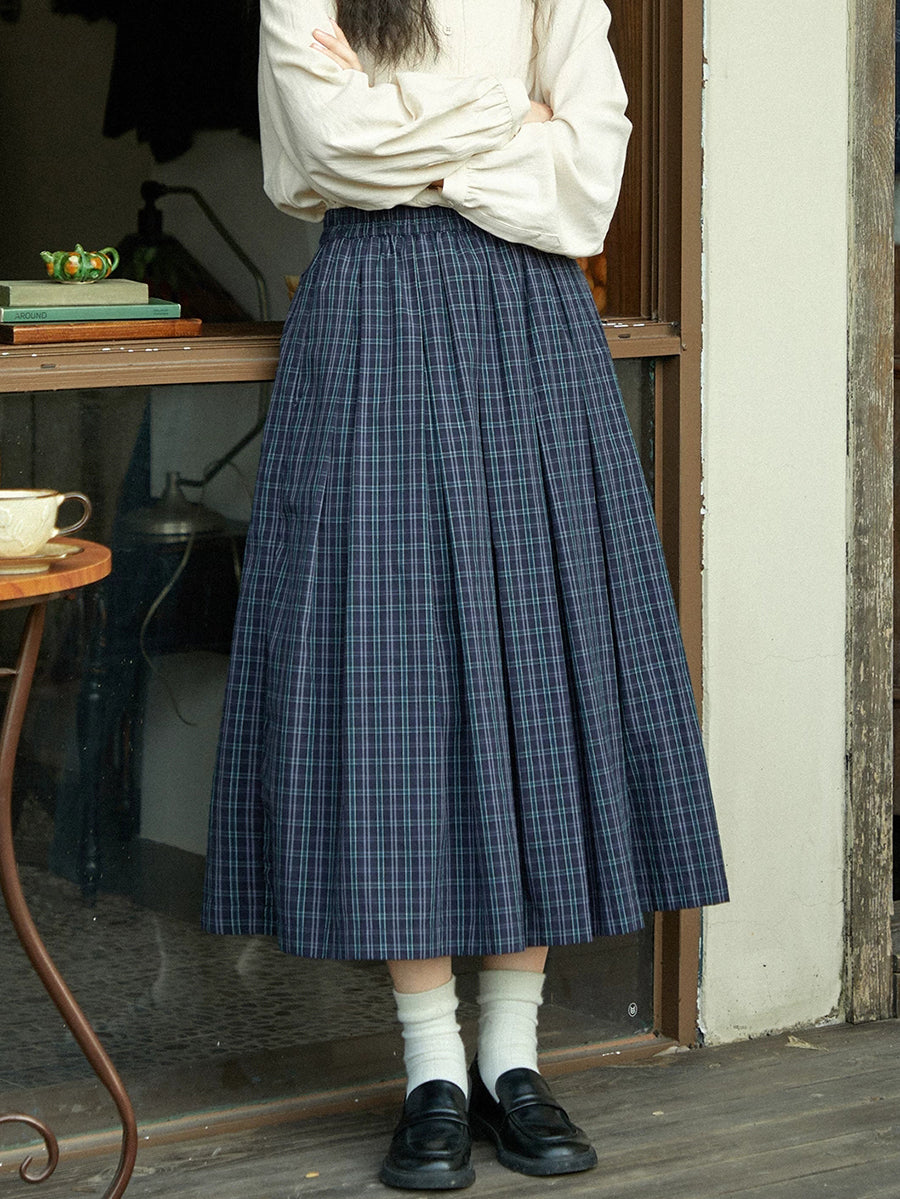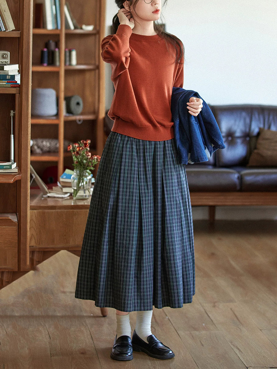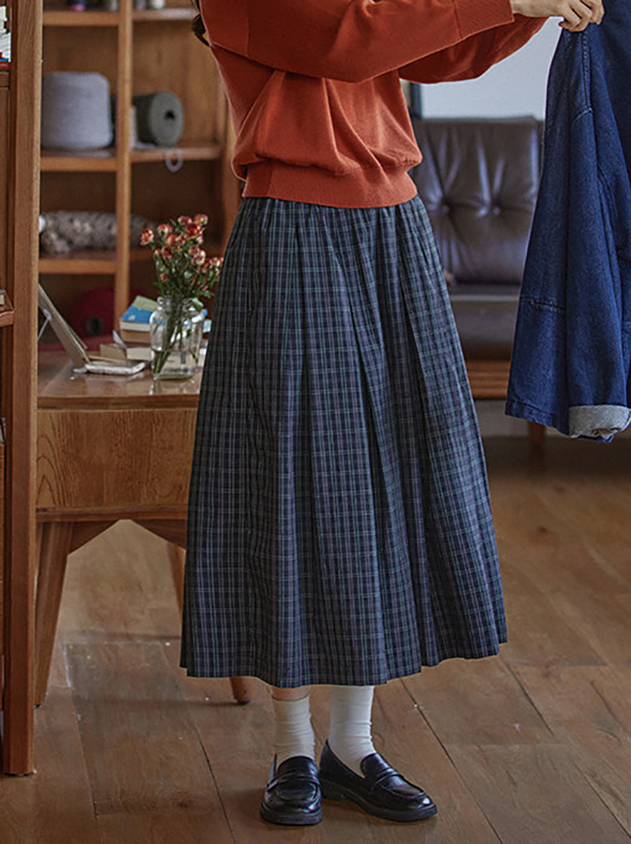 Damen Winter Vintage Karo-Faltenrock in A-Form