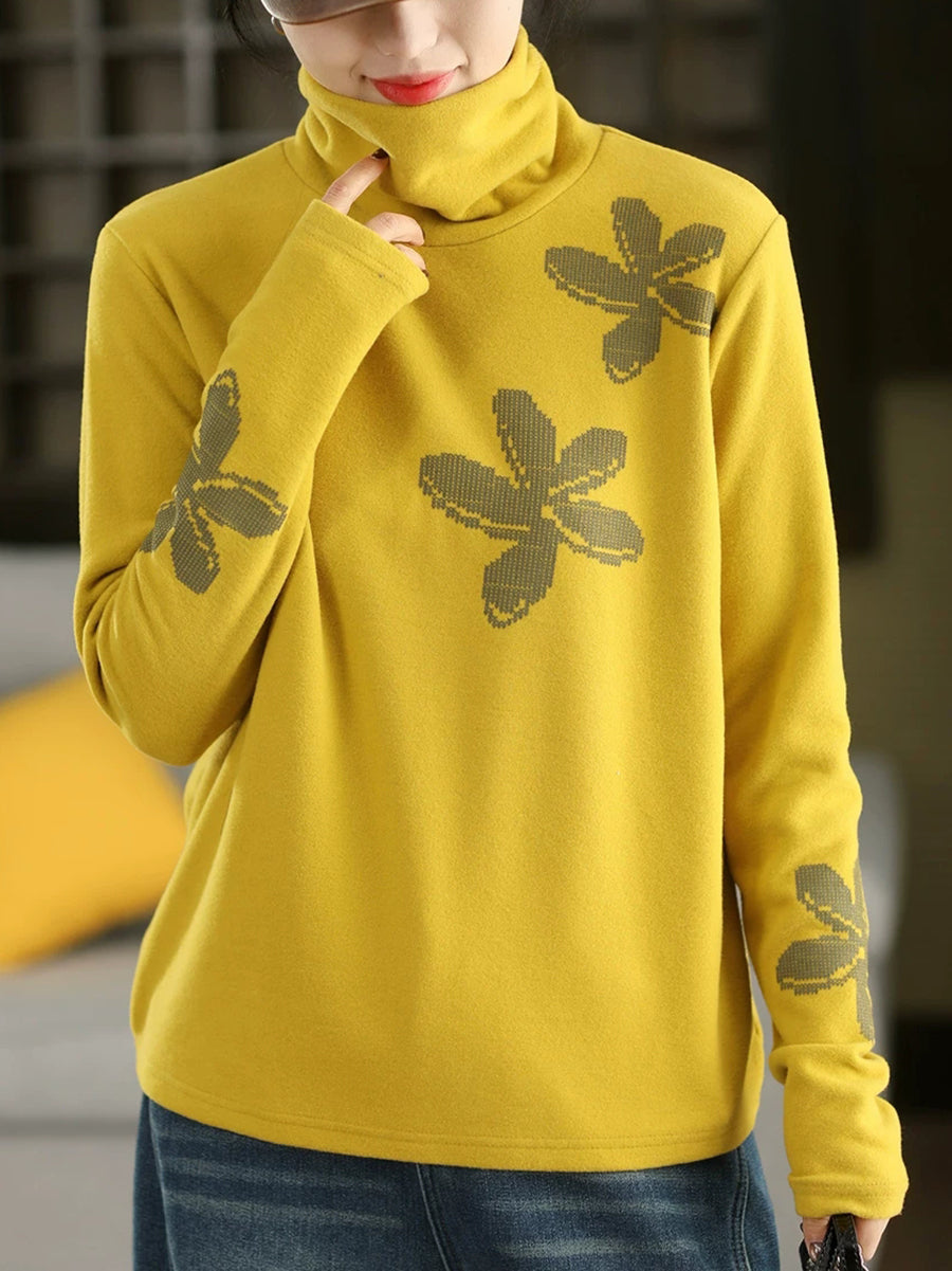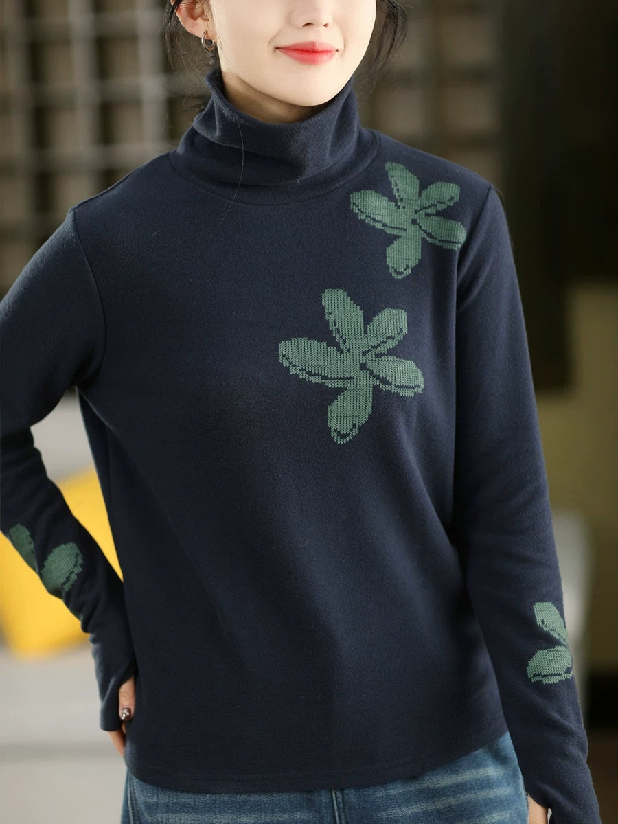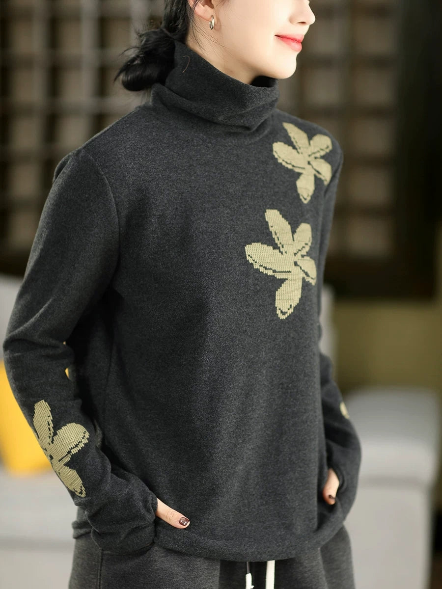 Damen Herbstlicher Rollkragenpullover mit kunstvollem Blumenmuster