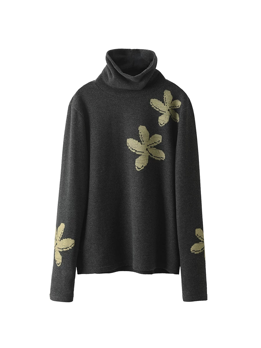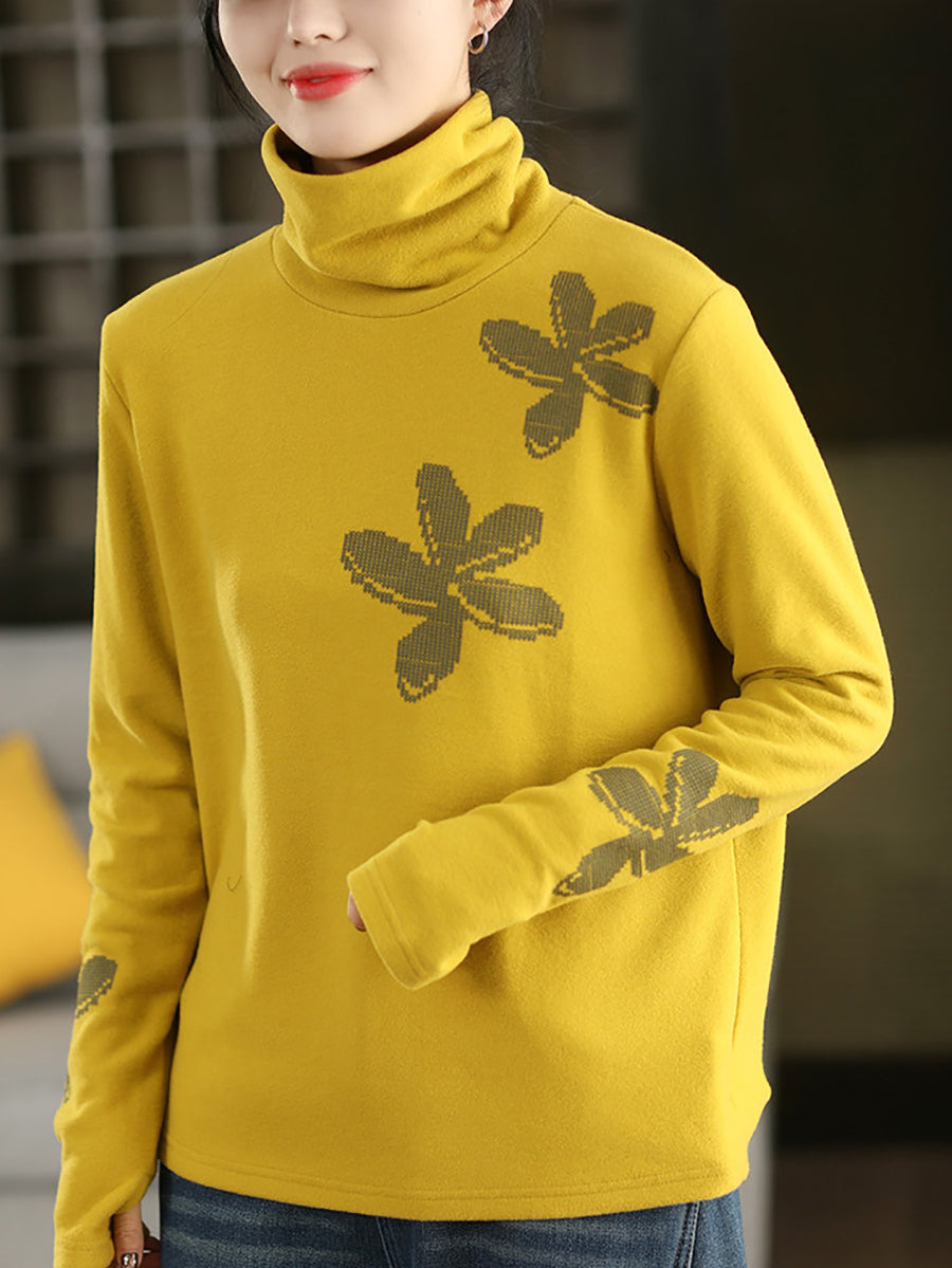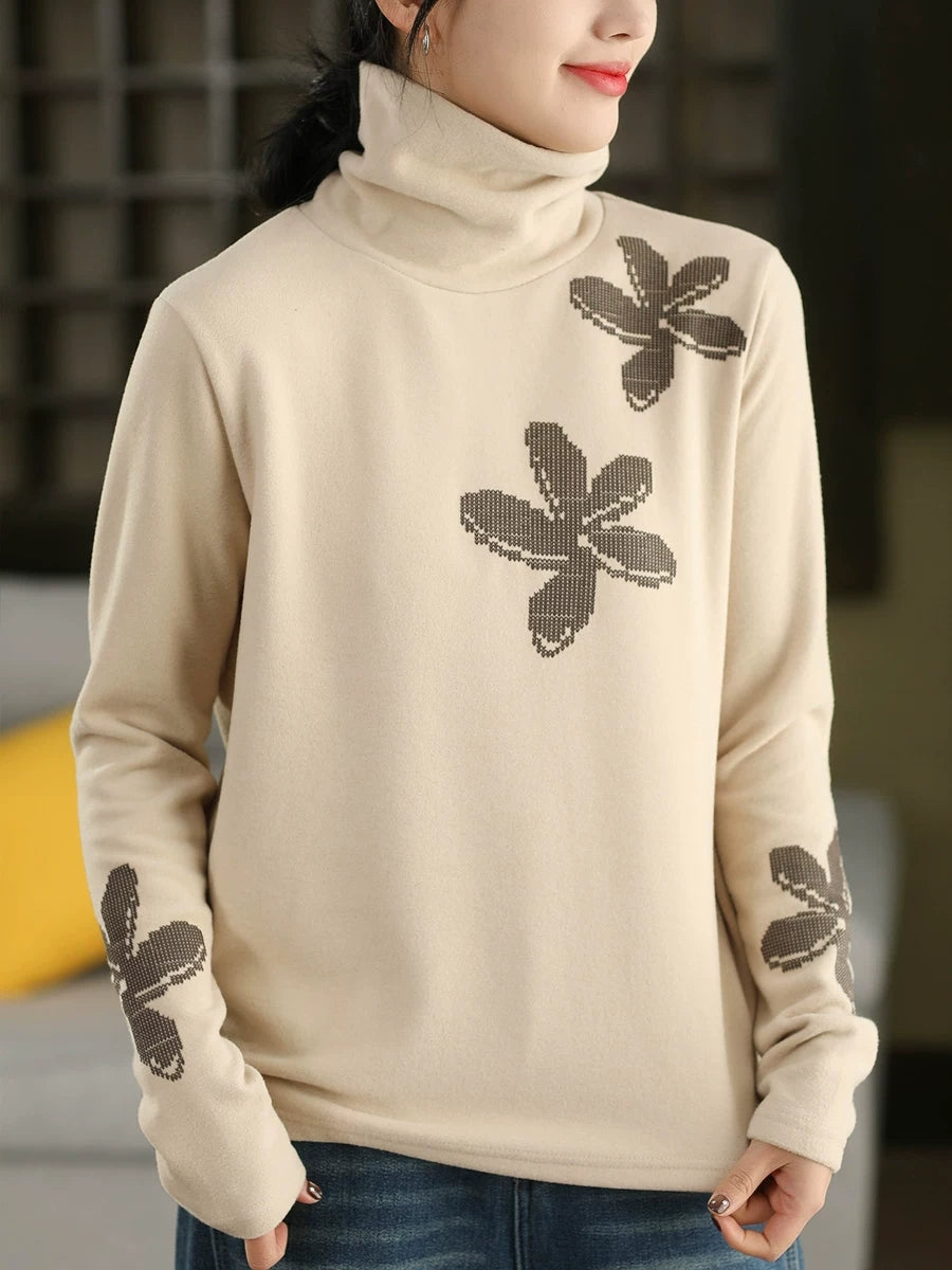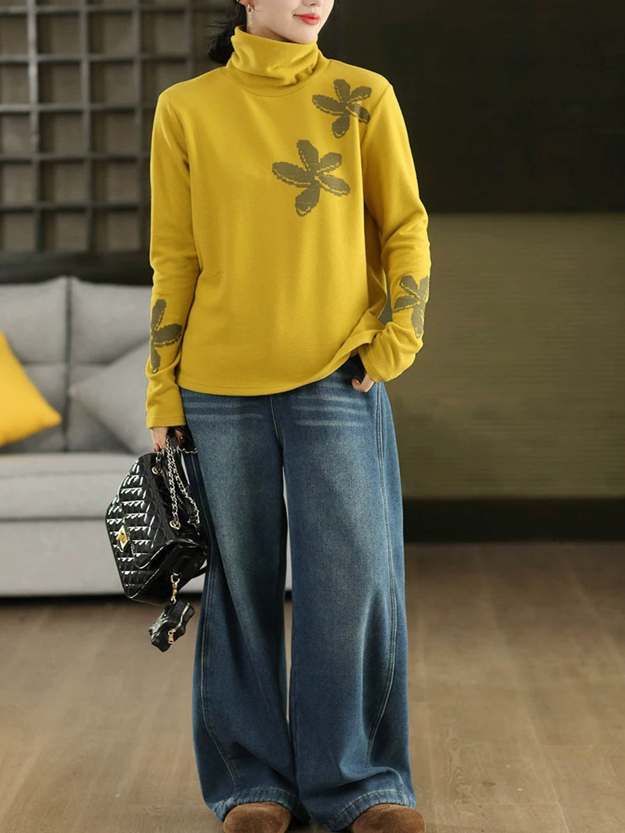 Damen Herbstlicher Rollkragenpullover mit kunstvollem Blumenmuster