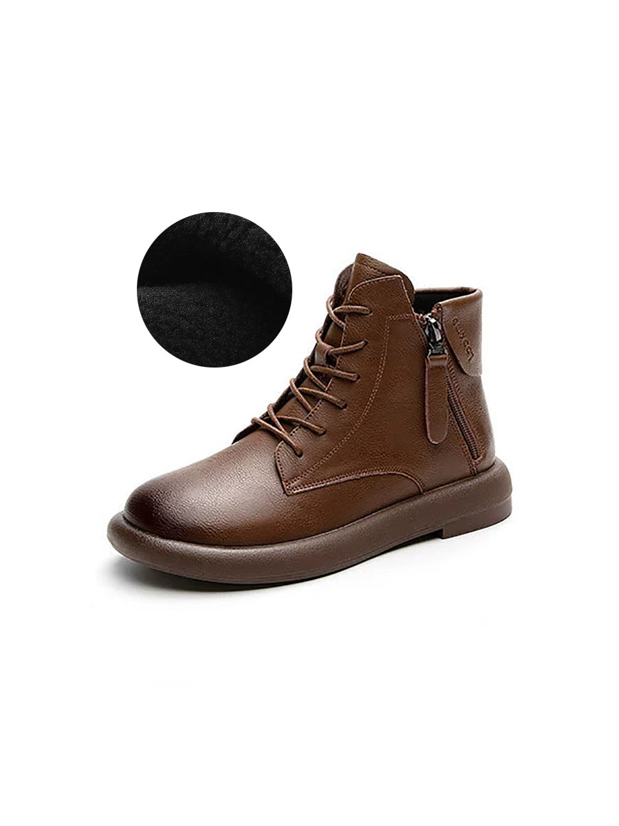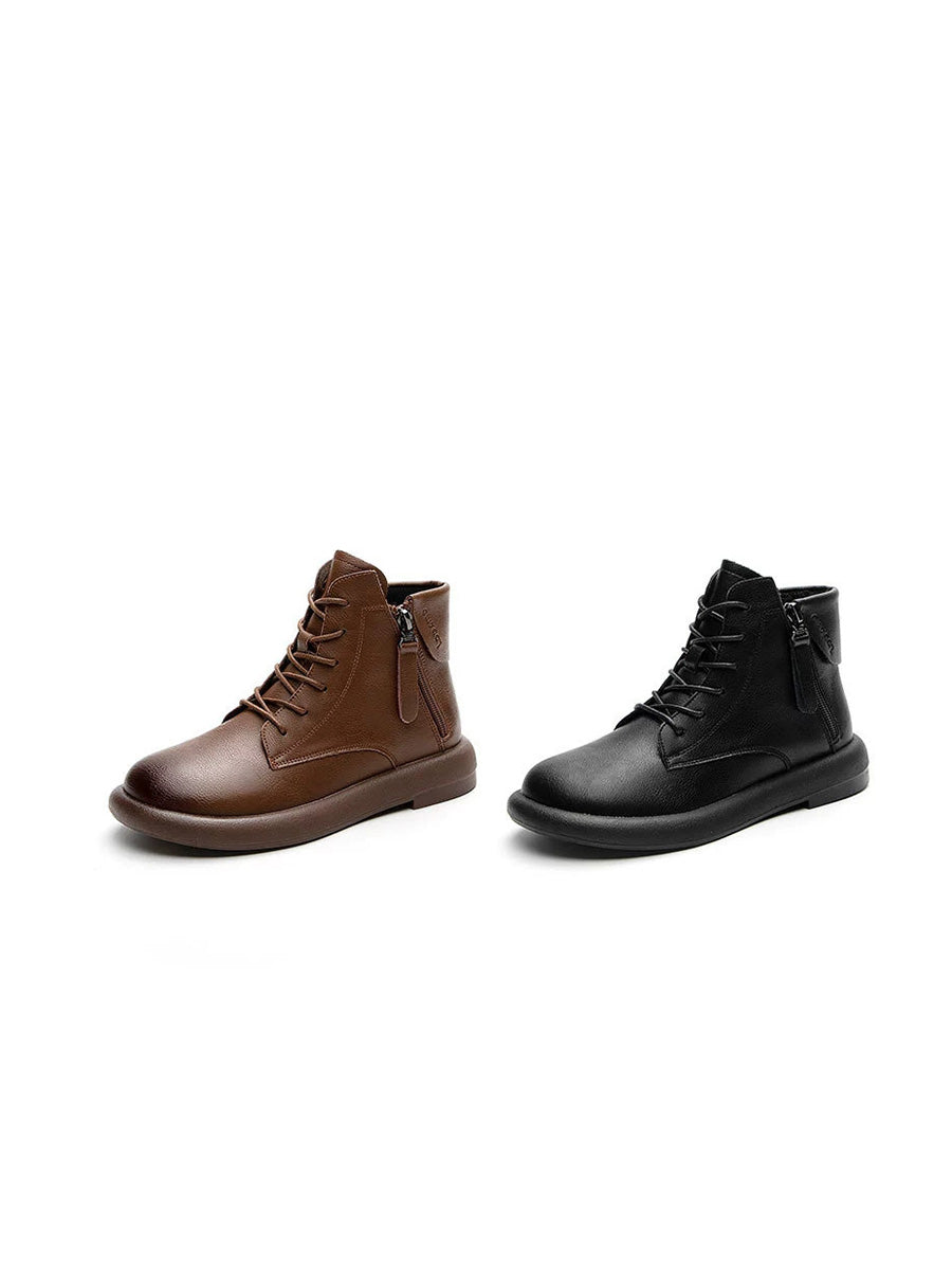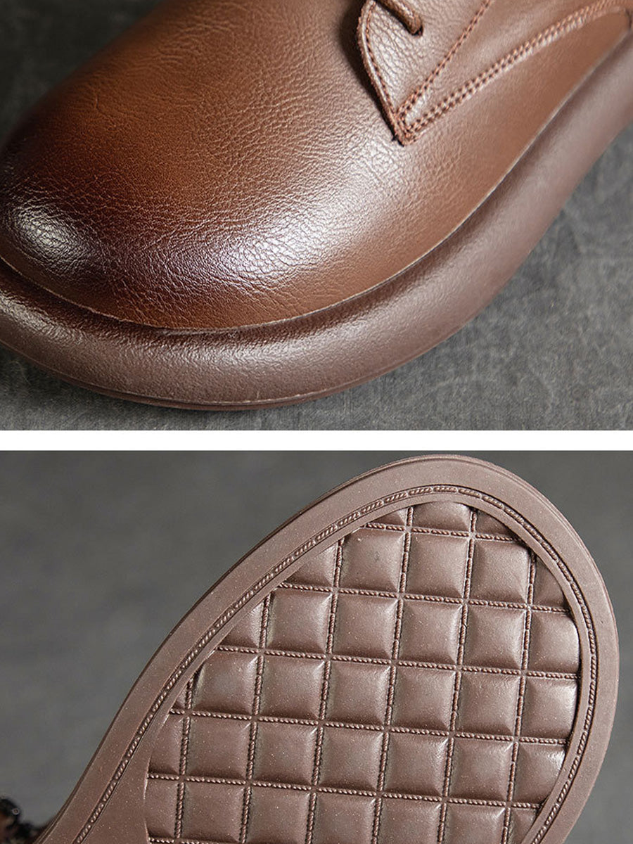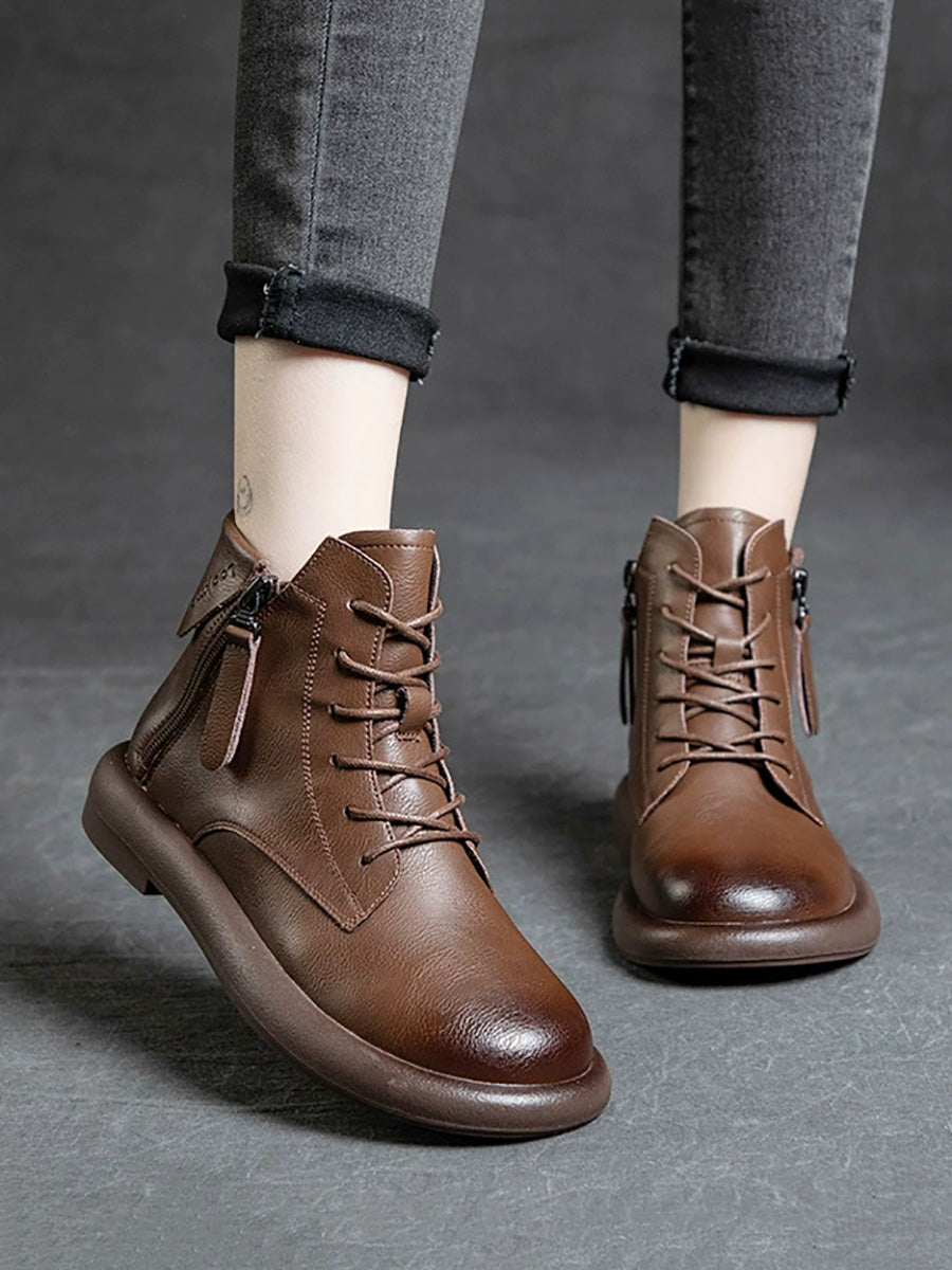 Vintage-Stiefeletten aus echtem Leder für Damen mit niedrigem Absatz