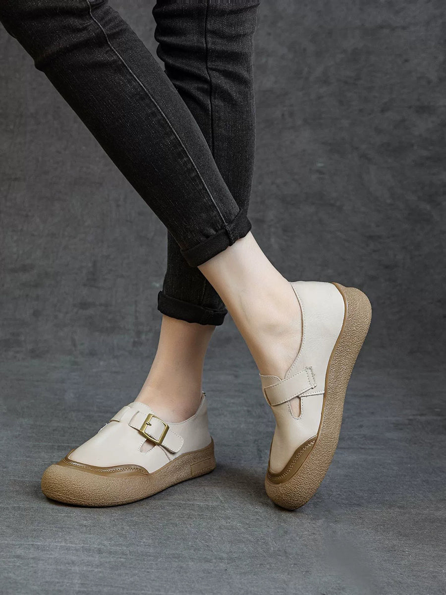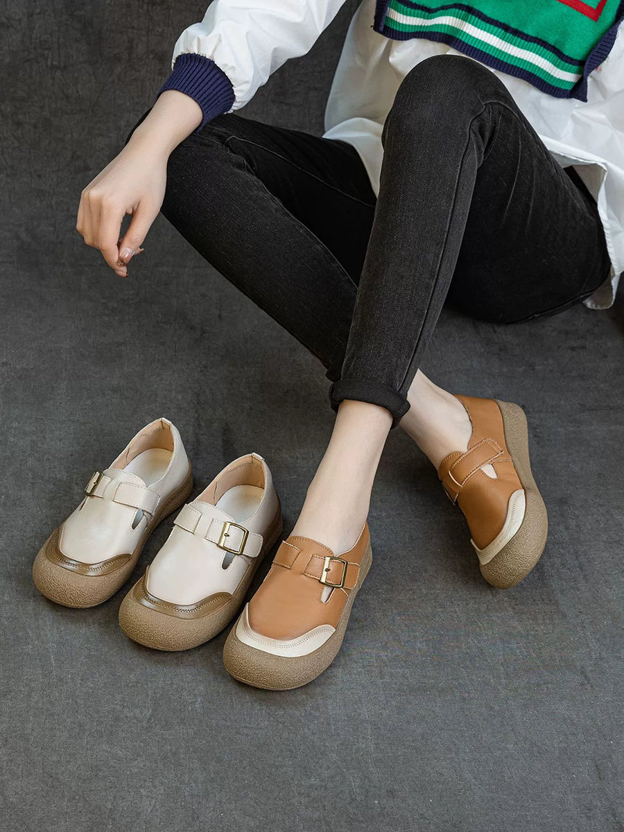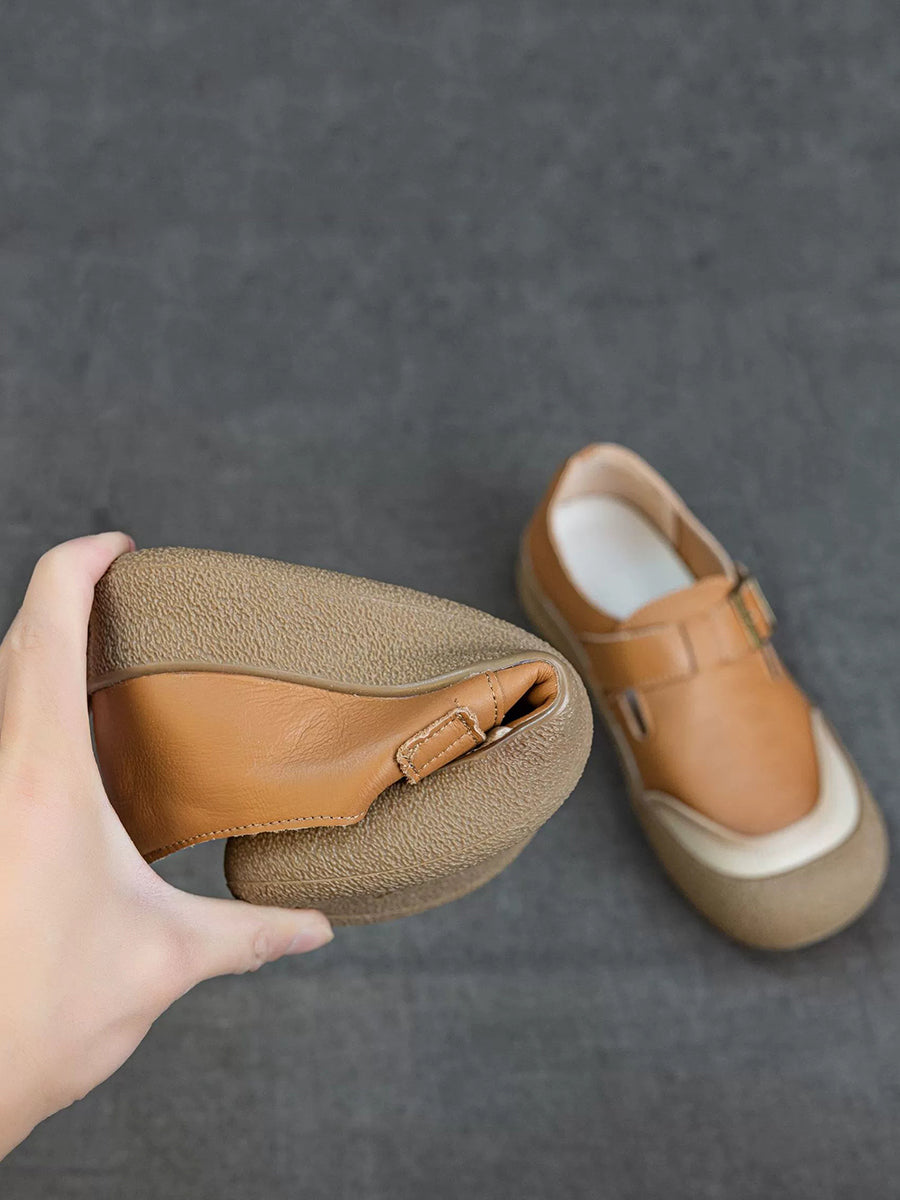 Damen-Flache Schuhe aus echtem Leder mit Farbblock-Design für den Frühling