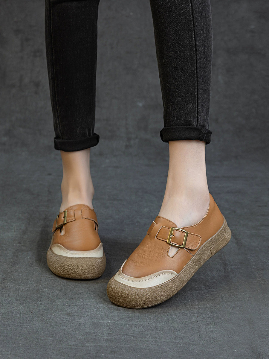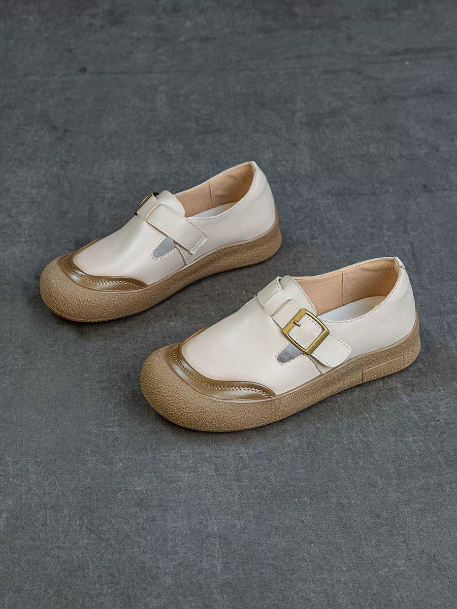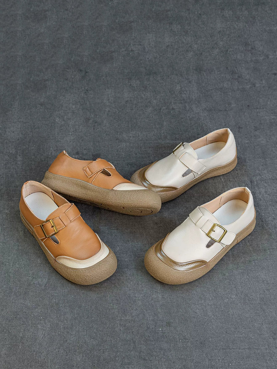 Damen-Flache Schuhe aus echtem Leder mit Farbblock-Design für den Frühling