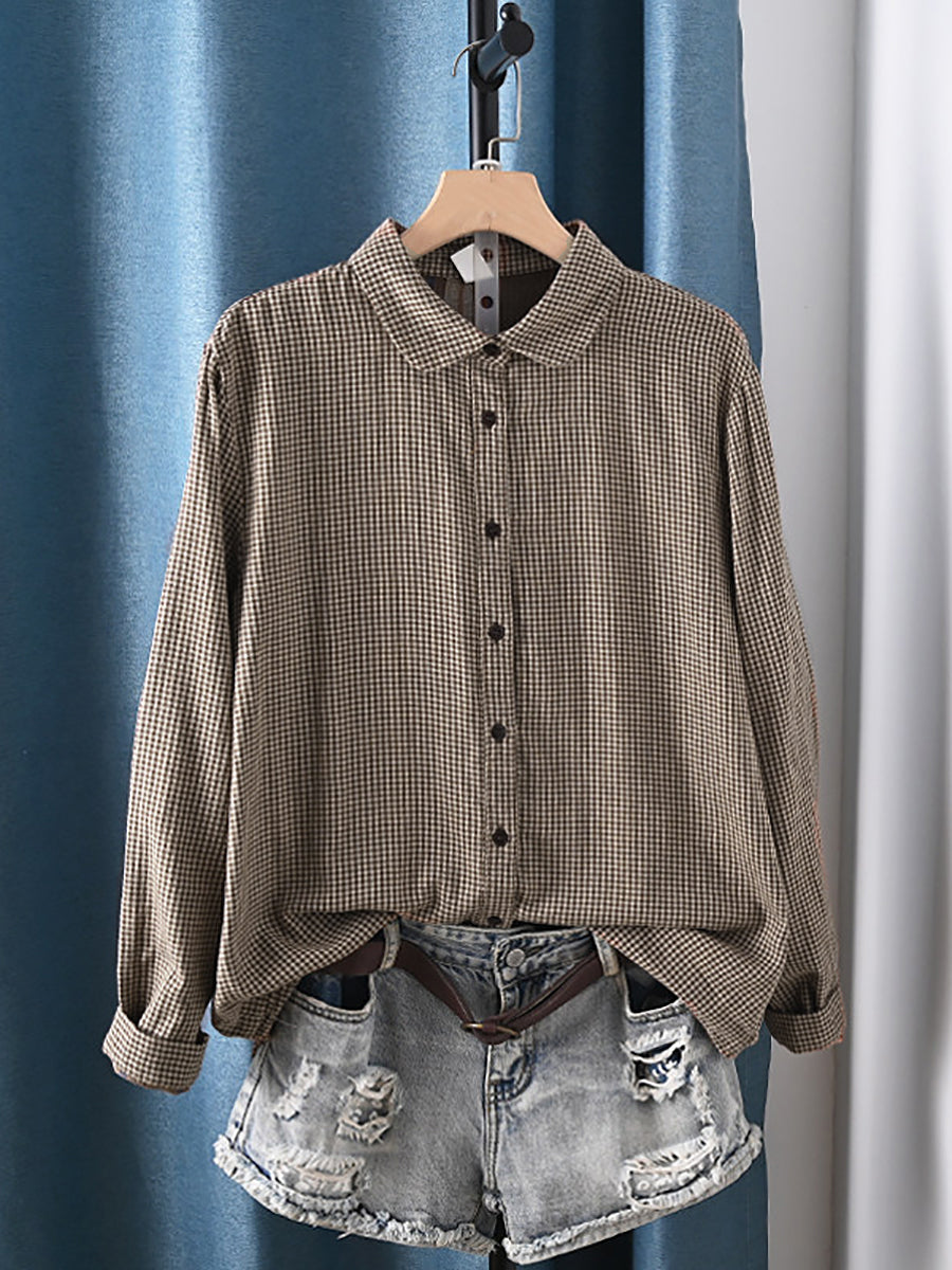 Damen-Frühlingsbluse mit Gittermuster aus 100 % Baumwolle