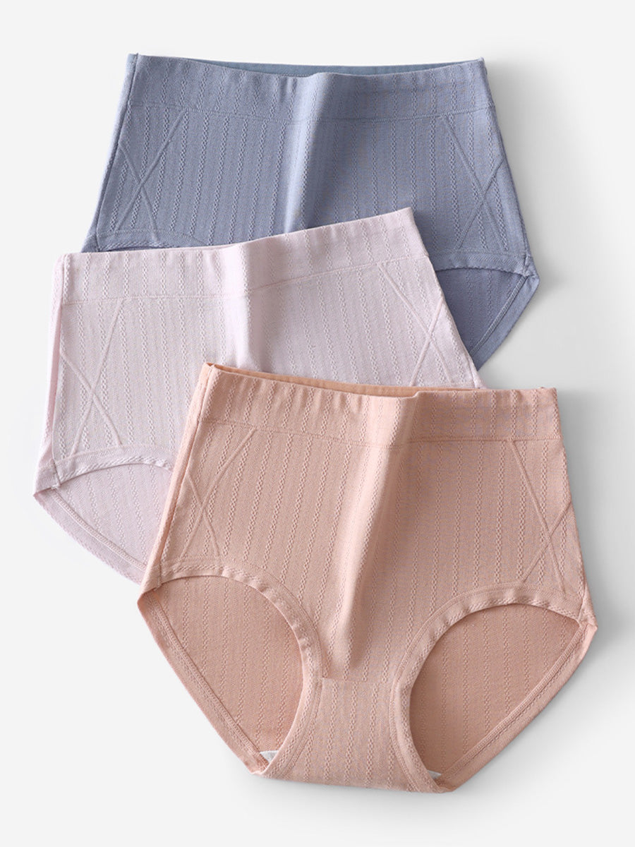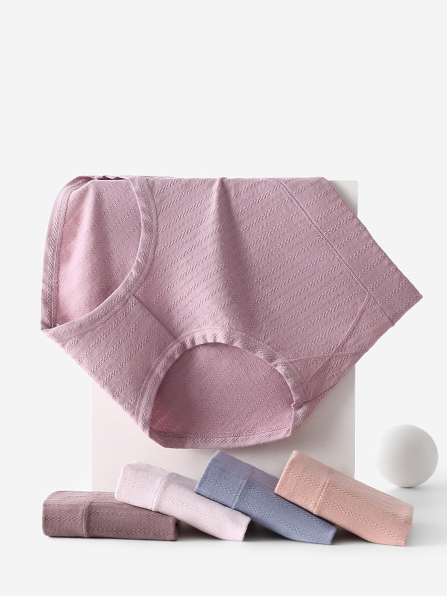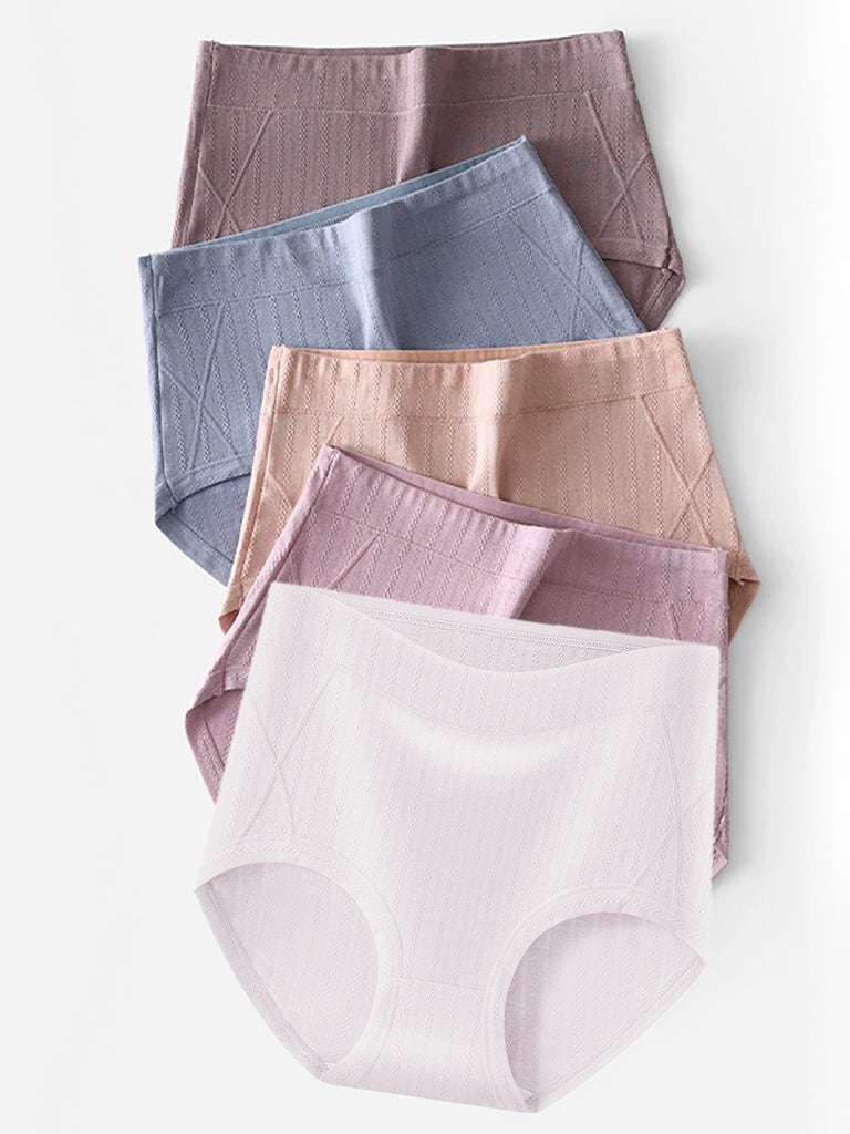 5-teiliges Set Damen-Freizeitunterwäsche in Unifarben mit hohem Bund
