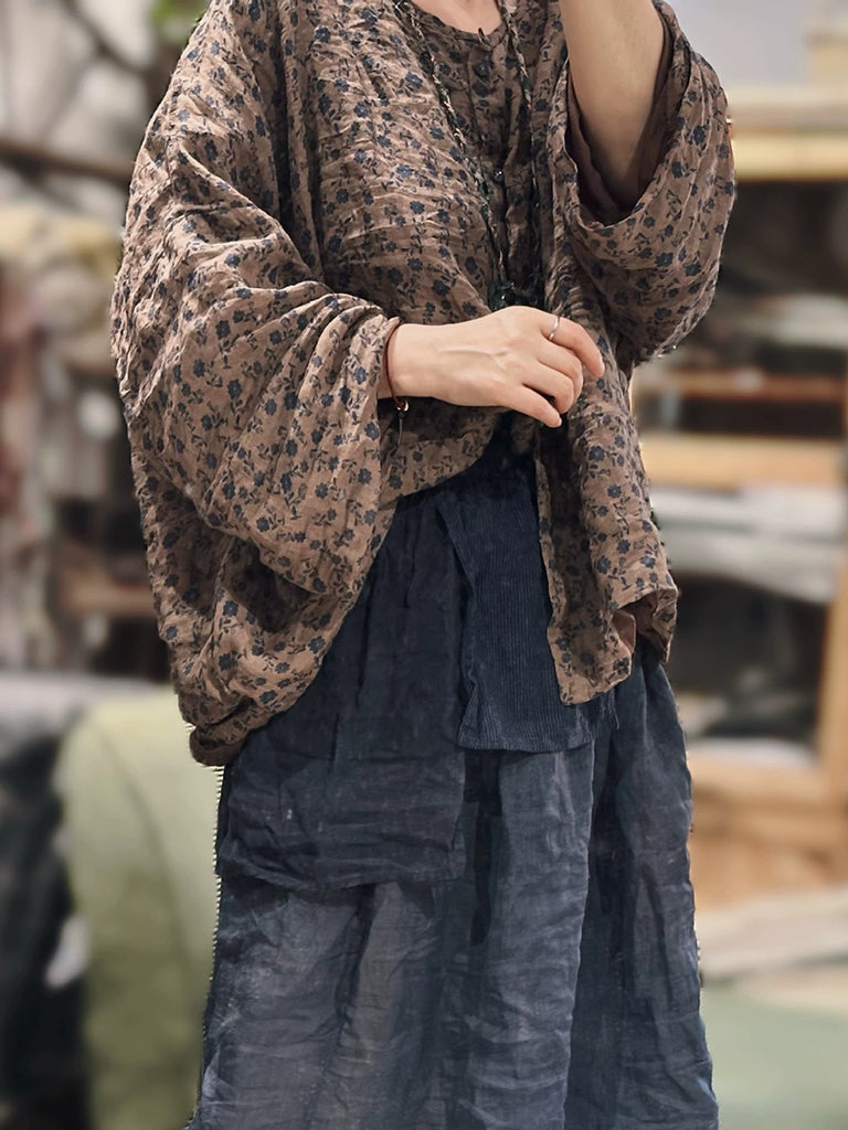 Damen Artsy Floral Ramie O-Neck Shirt