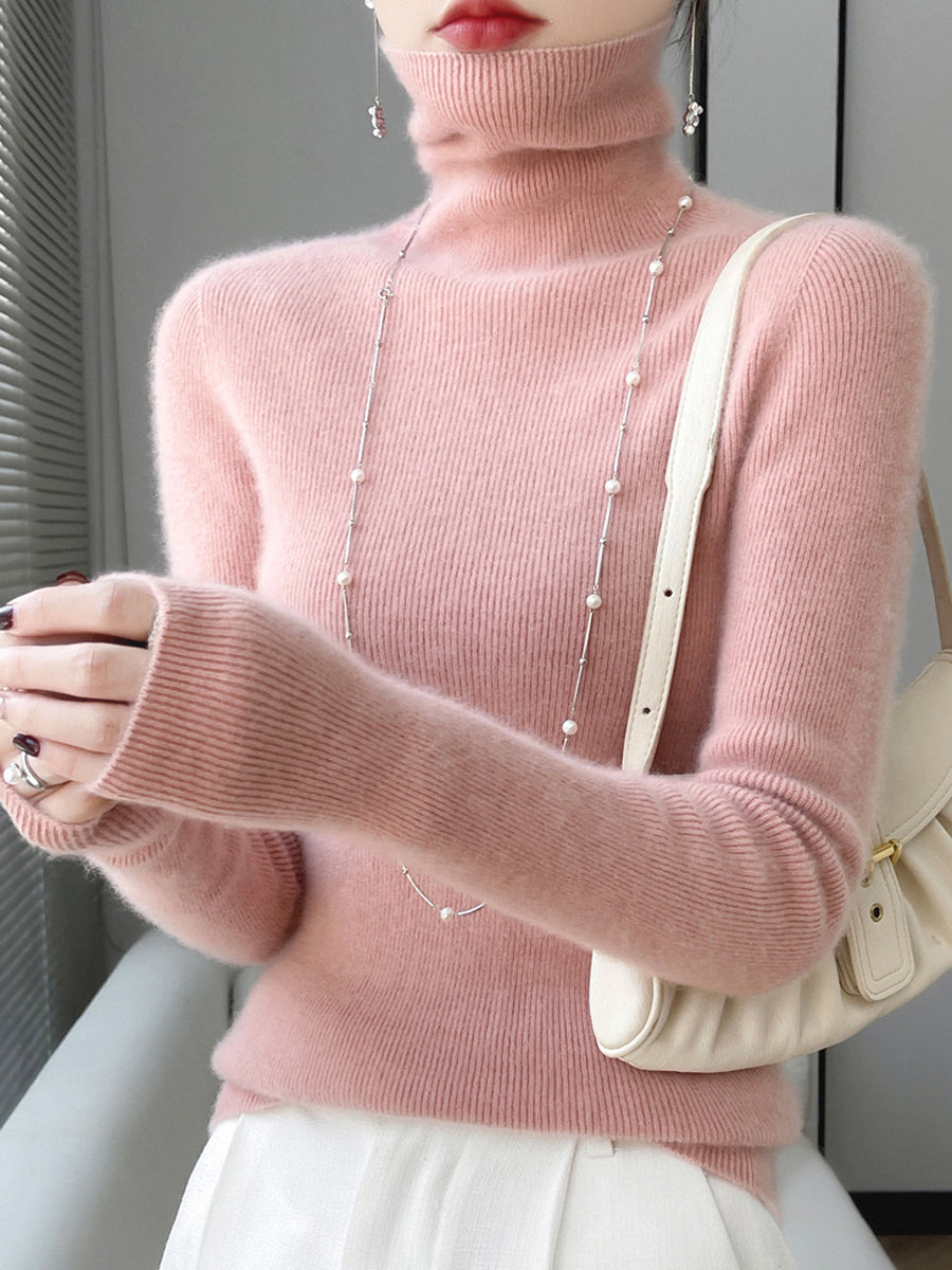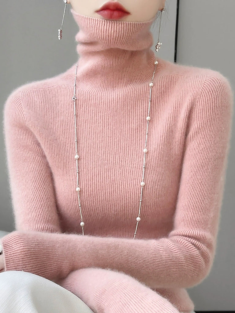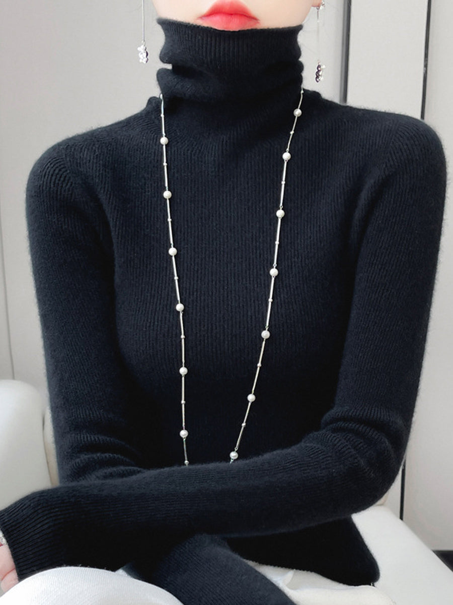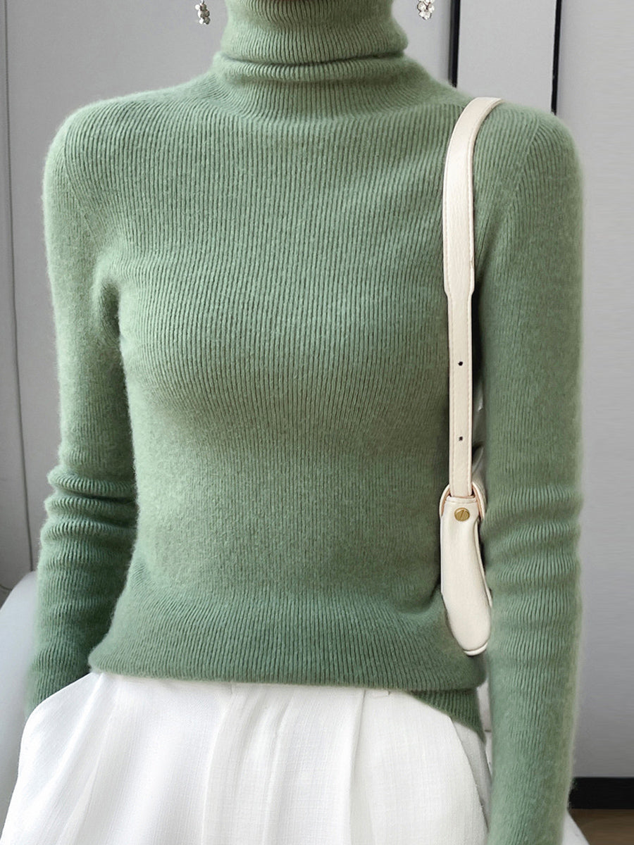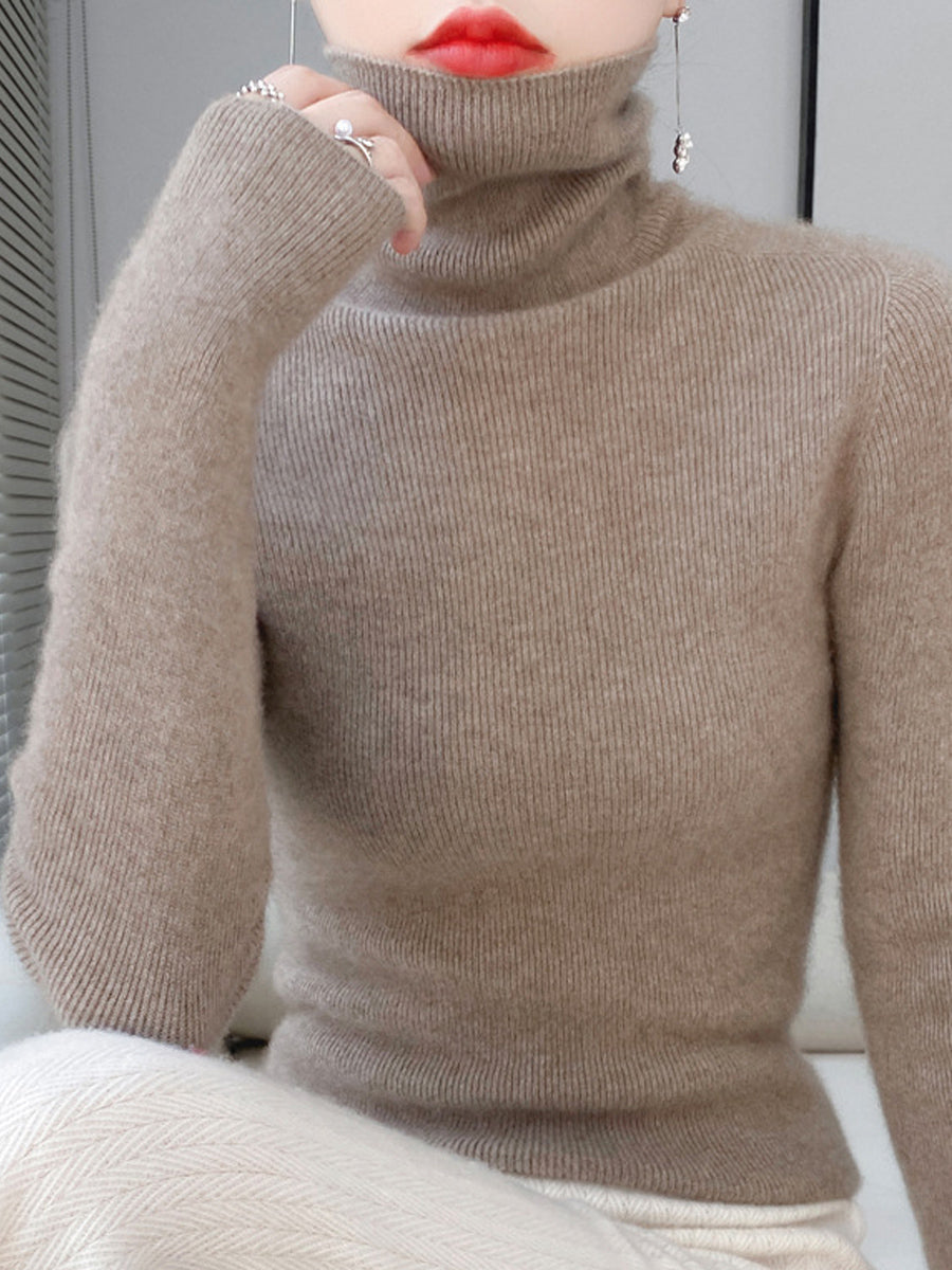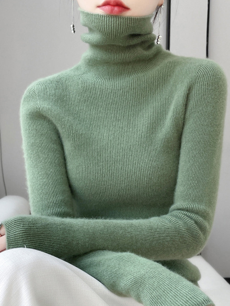 Damen Herbst Casual Einfarbiger Rollkragenpullover