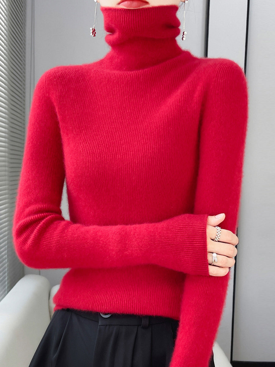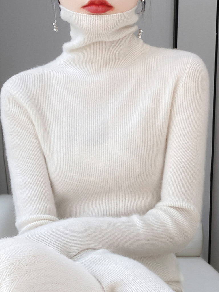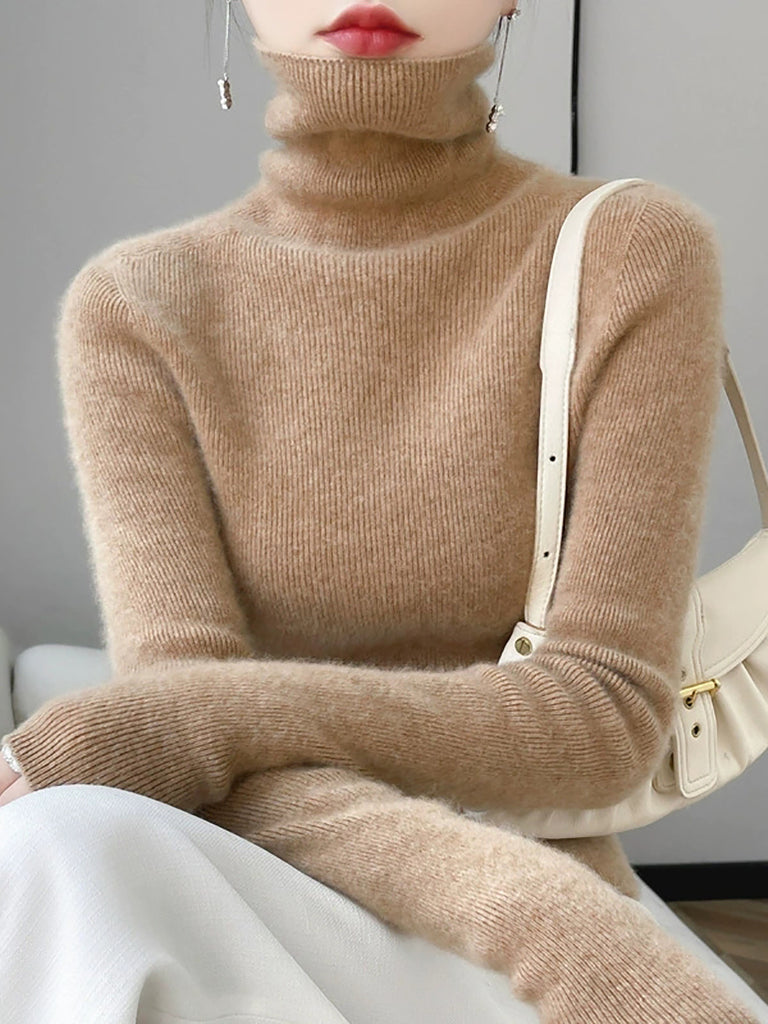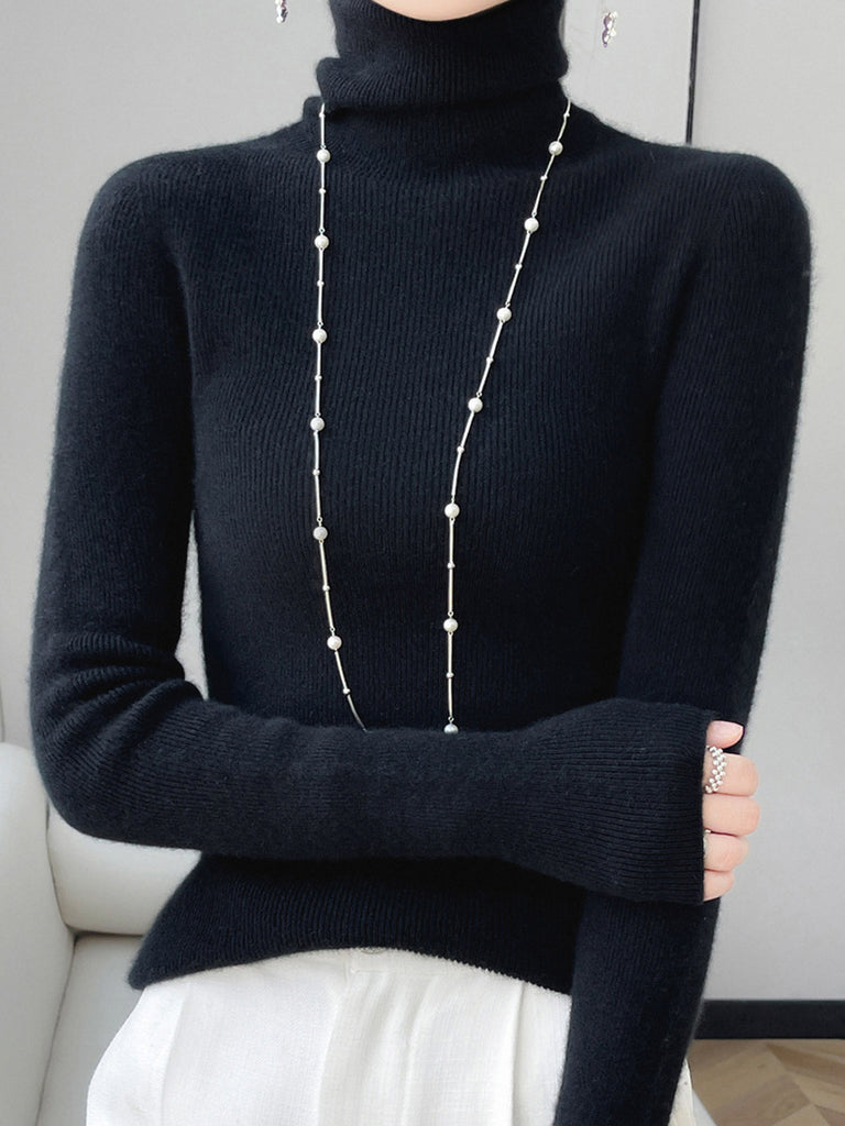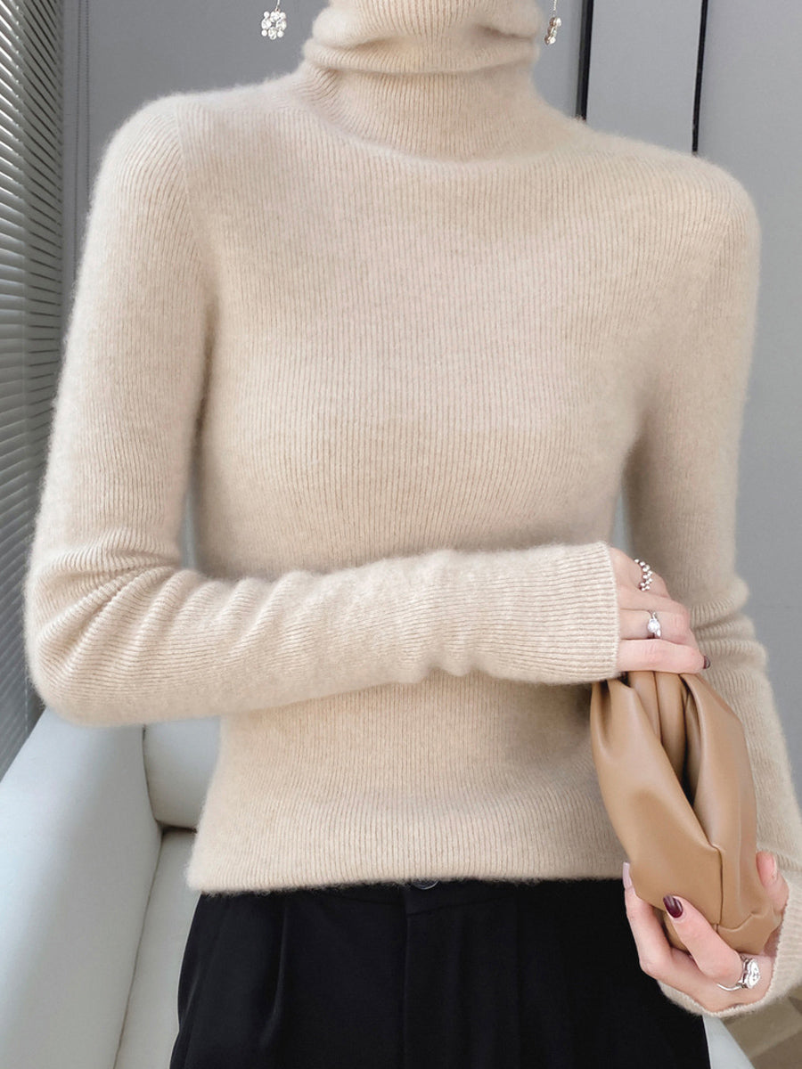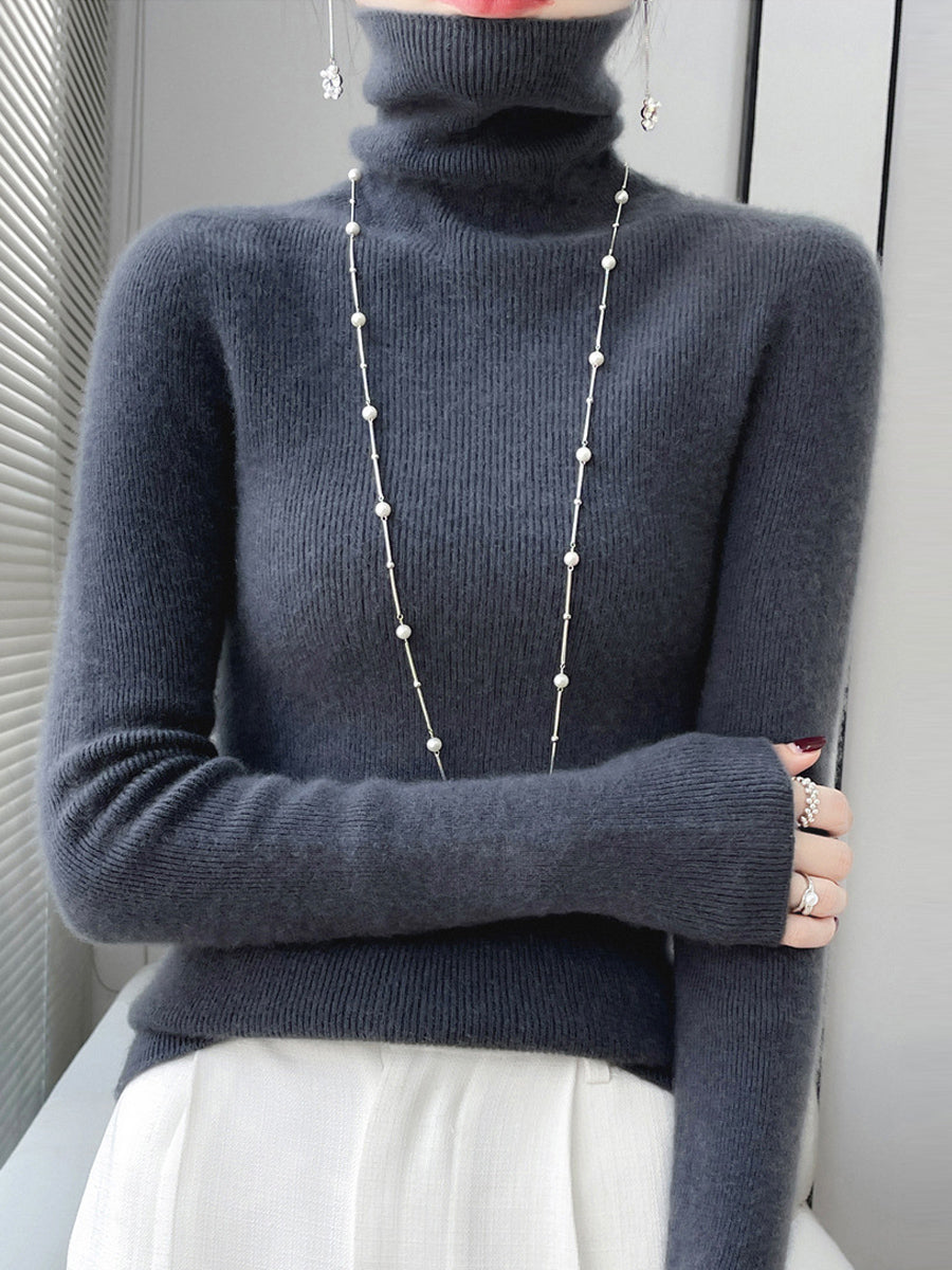 Damen Herbst Casual Einfarbiger Rollkragenpullover