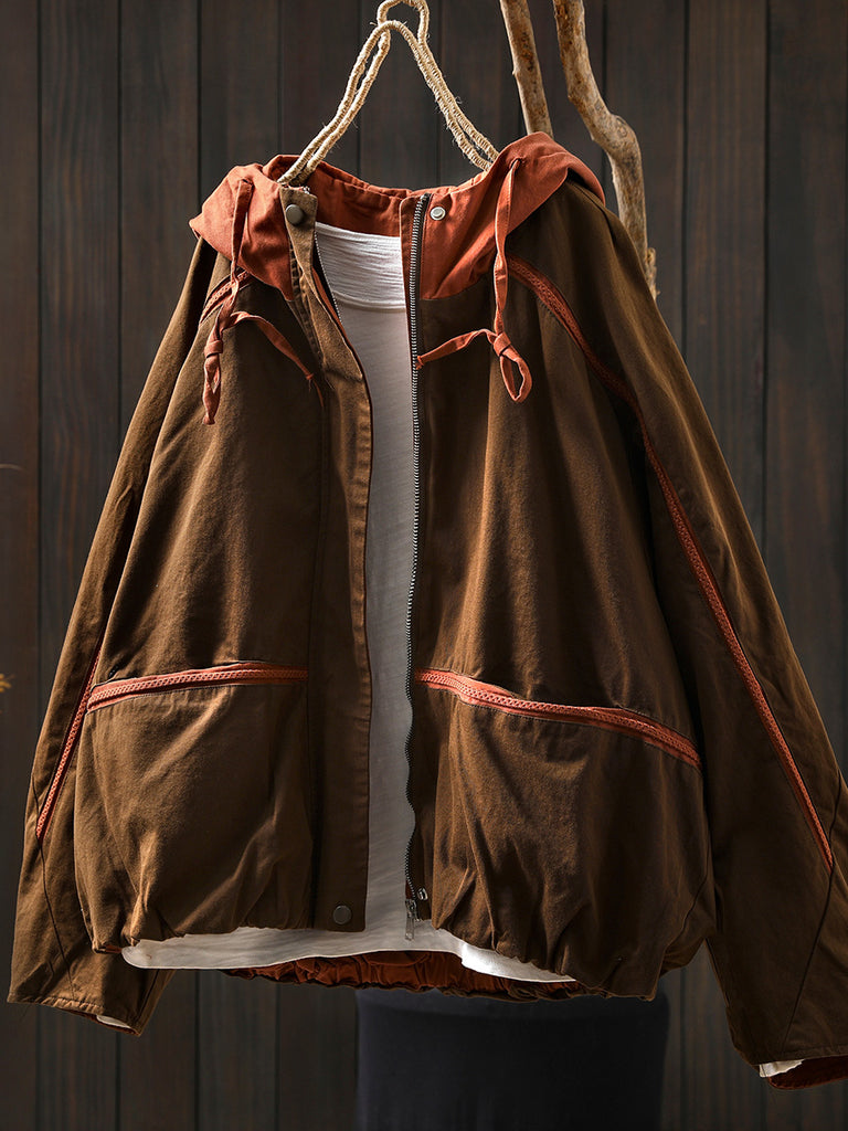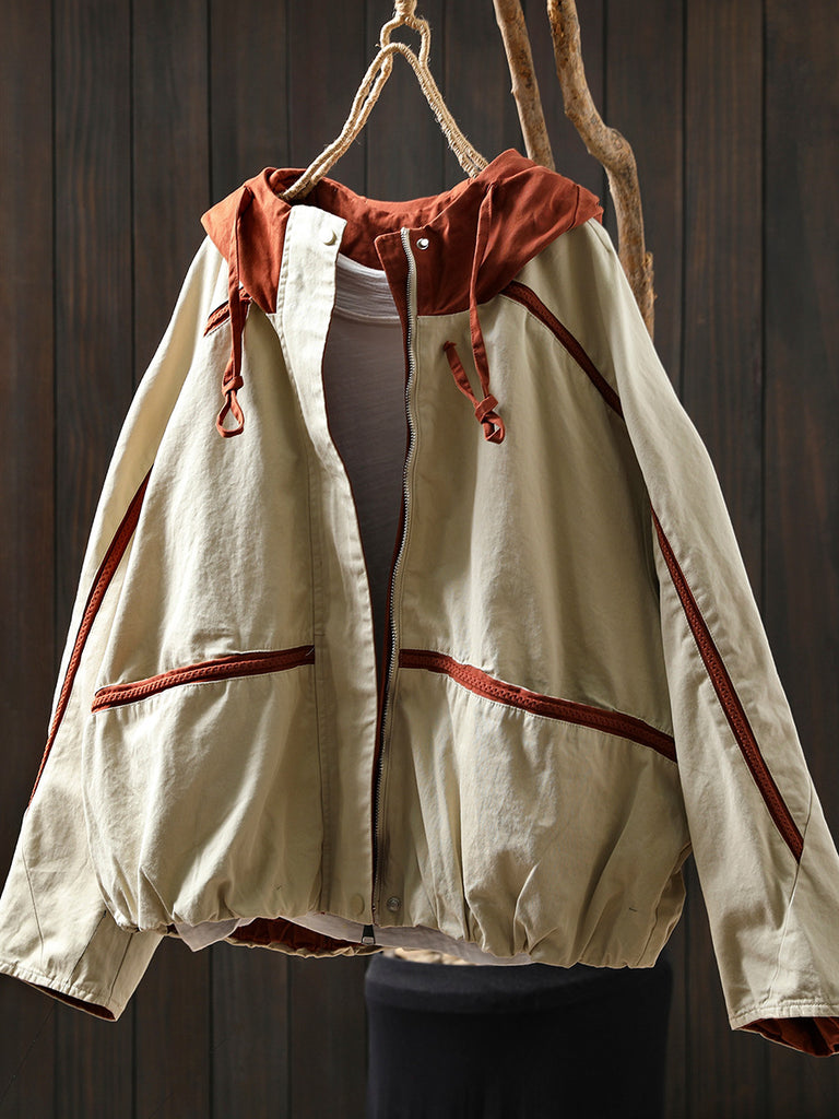 Damen Herbst Colorblock Kapuzen-Strickjacke aus Baumwolle