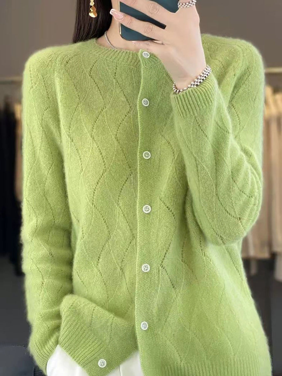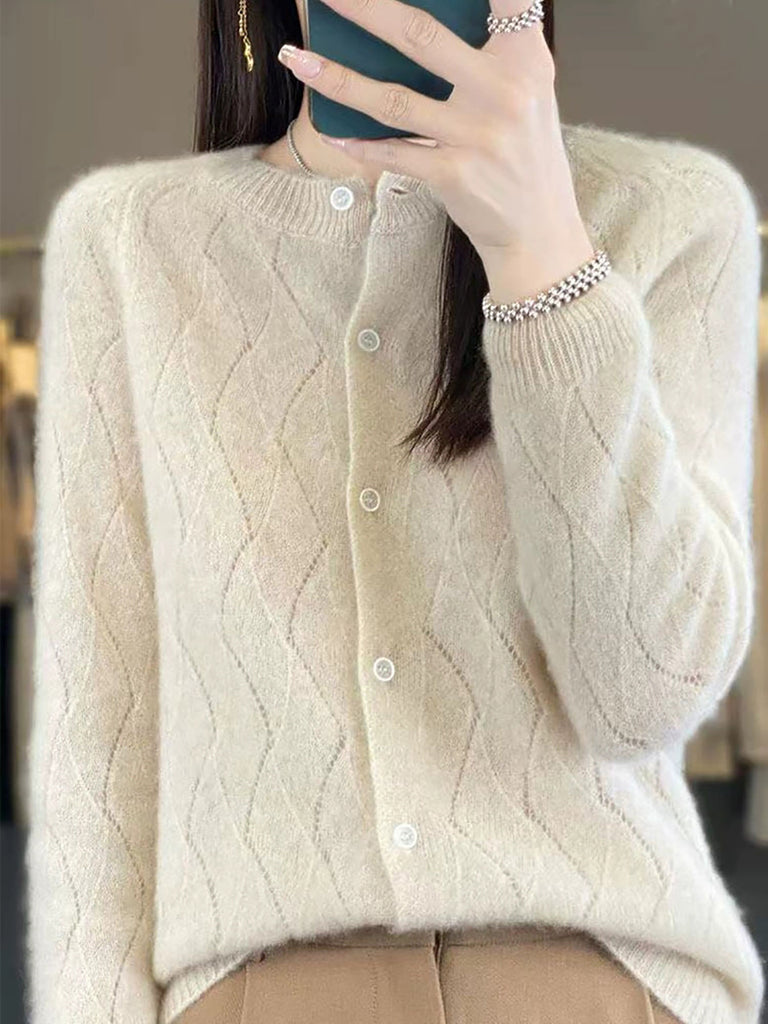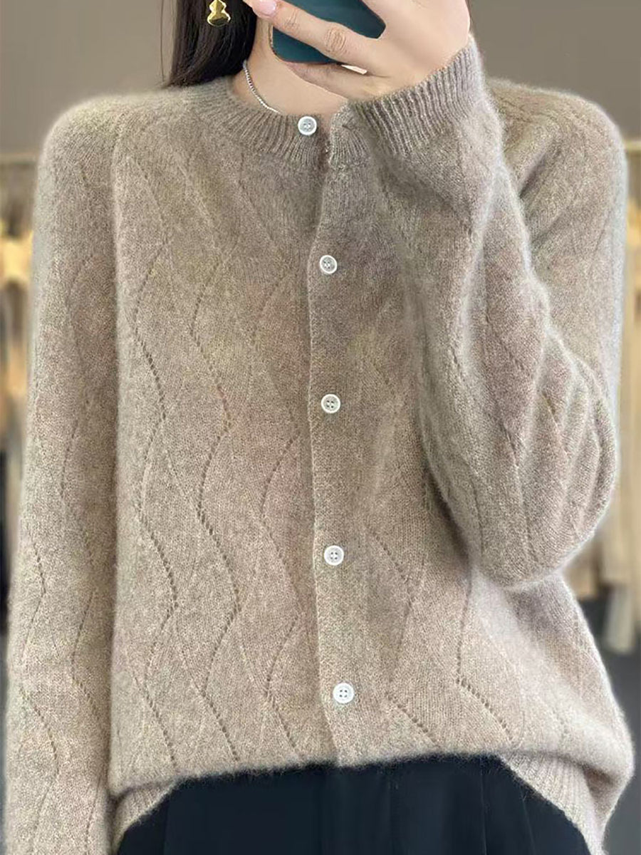 Damen Winter Strickjacke mit Rundhalsausschnitt, einfarbig