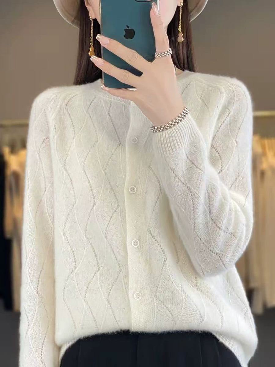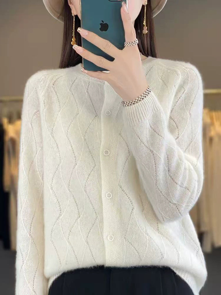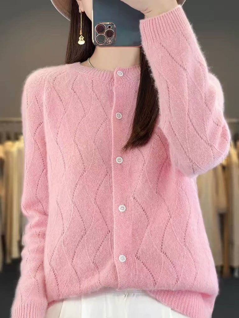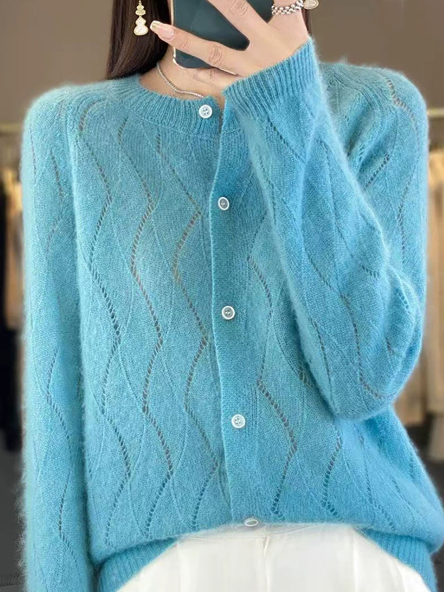 Damen Winter Strickjacke mit Rundhalsausschnitt, einfarbig