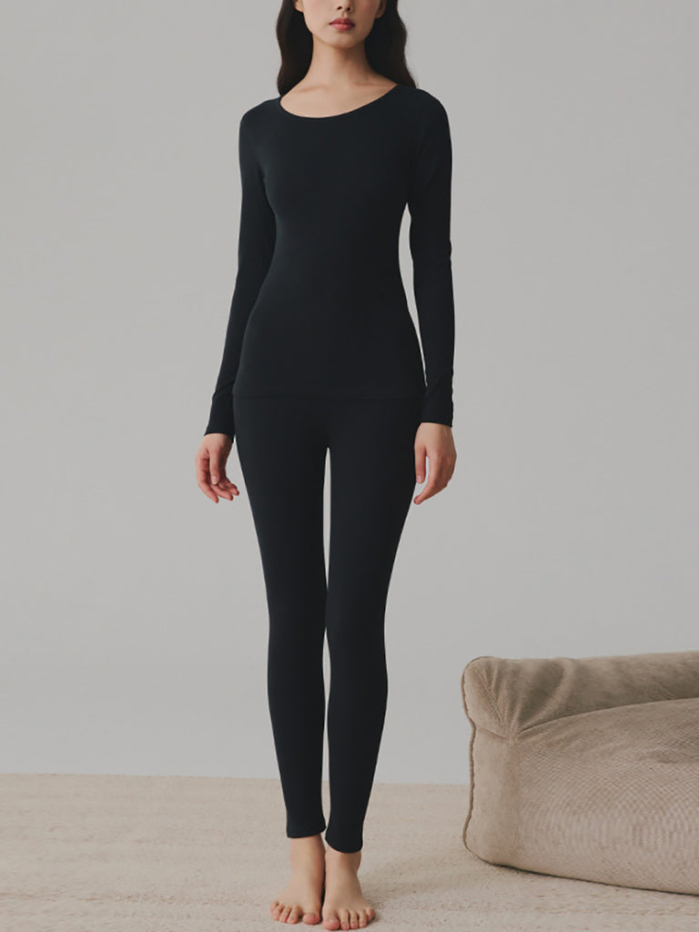 Winterwarme, einfarbige, fleecegefütterte Wollleggings mit Fleece-Futter