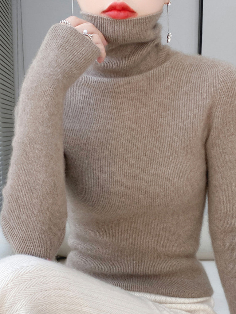 Damen Winter Casual Einfarbiger Rollkragenpullover