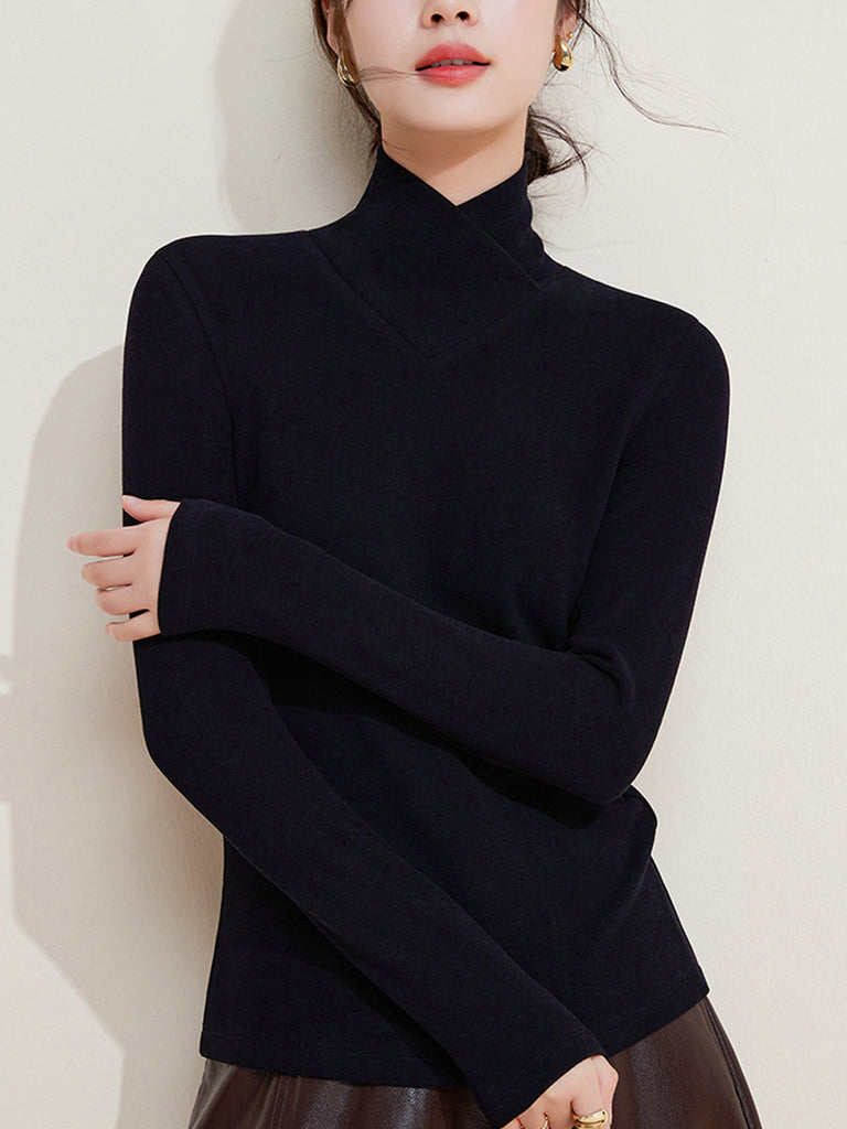 Damen Vintage Herbstbluse in Unifarben mit V-Ausschnitt