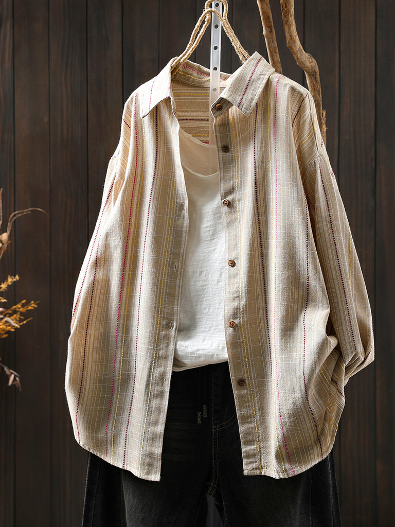 Plus Size - Unregelmäßiges Vintage-Hemd aus Baumwollleinen mit Blumenmuster