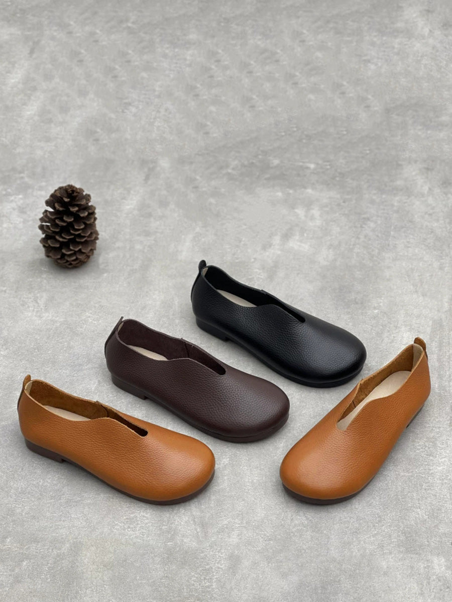 Lässige Damenschuhe aus weichem Leder mit niedrigem Absatz