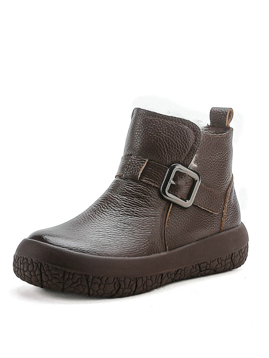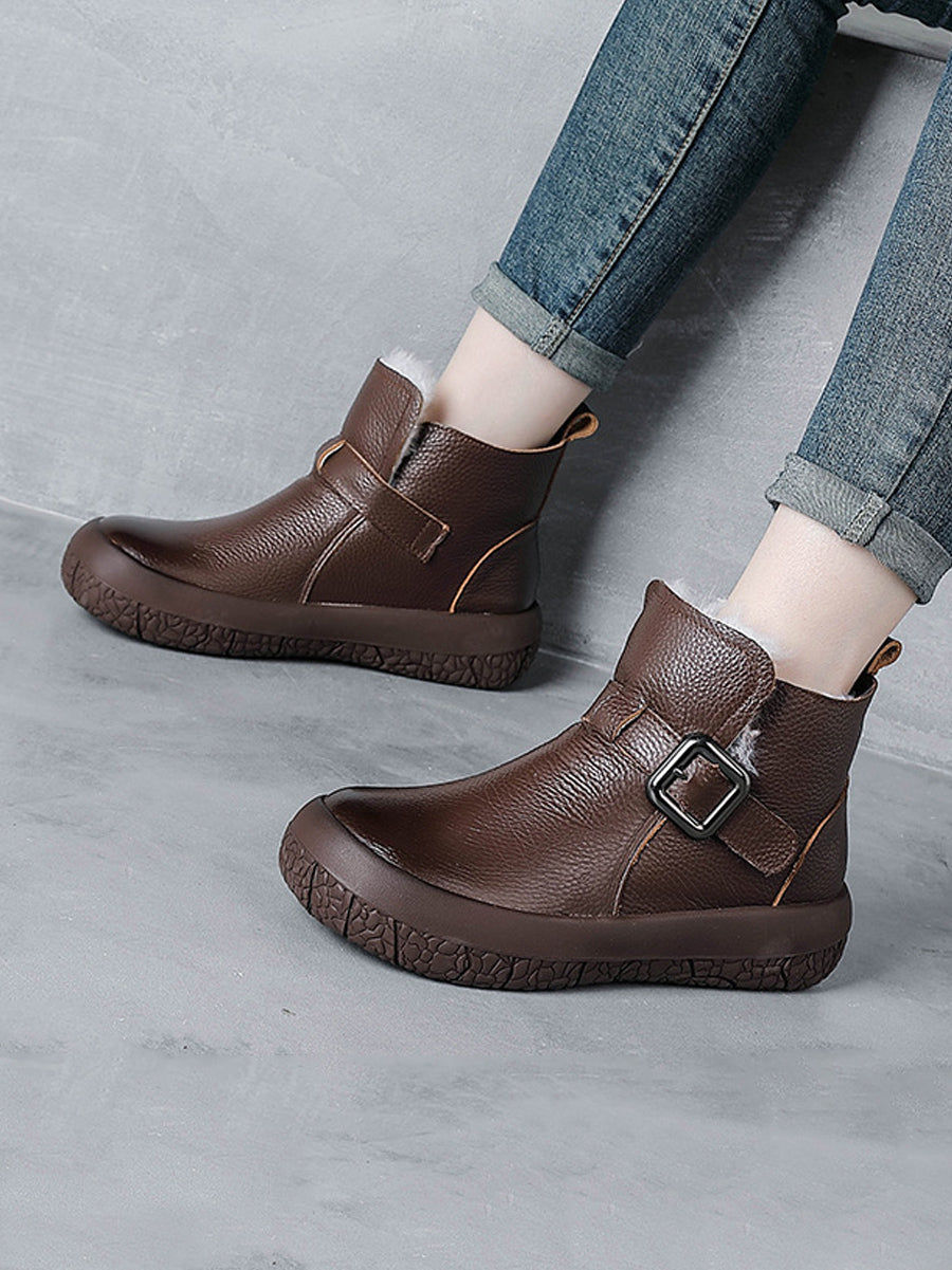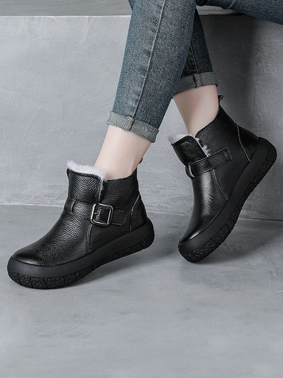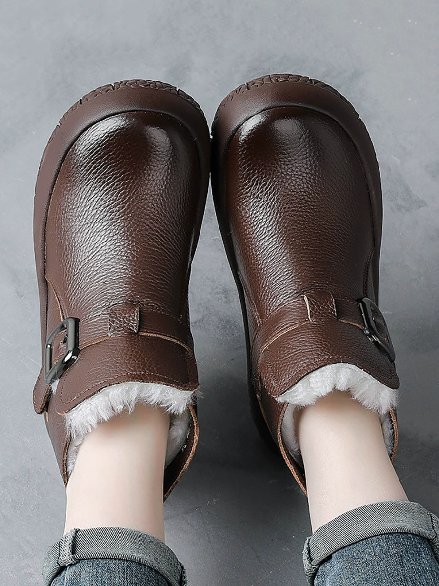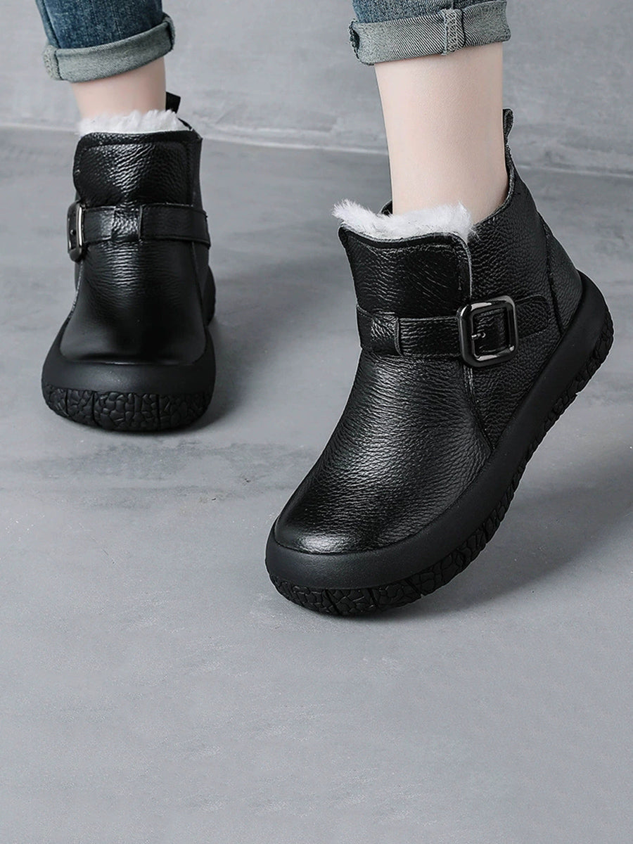 Damen Winter Stiefel aus echtem Leder mit Fleecefutter und Plateau