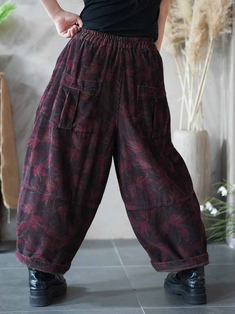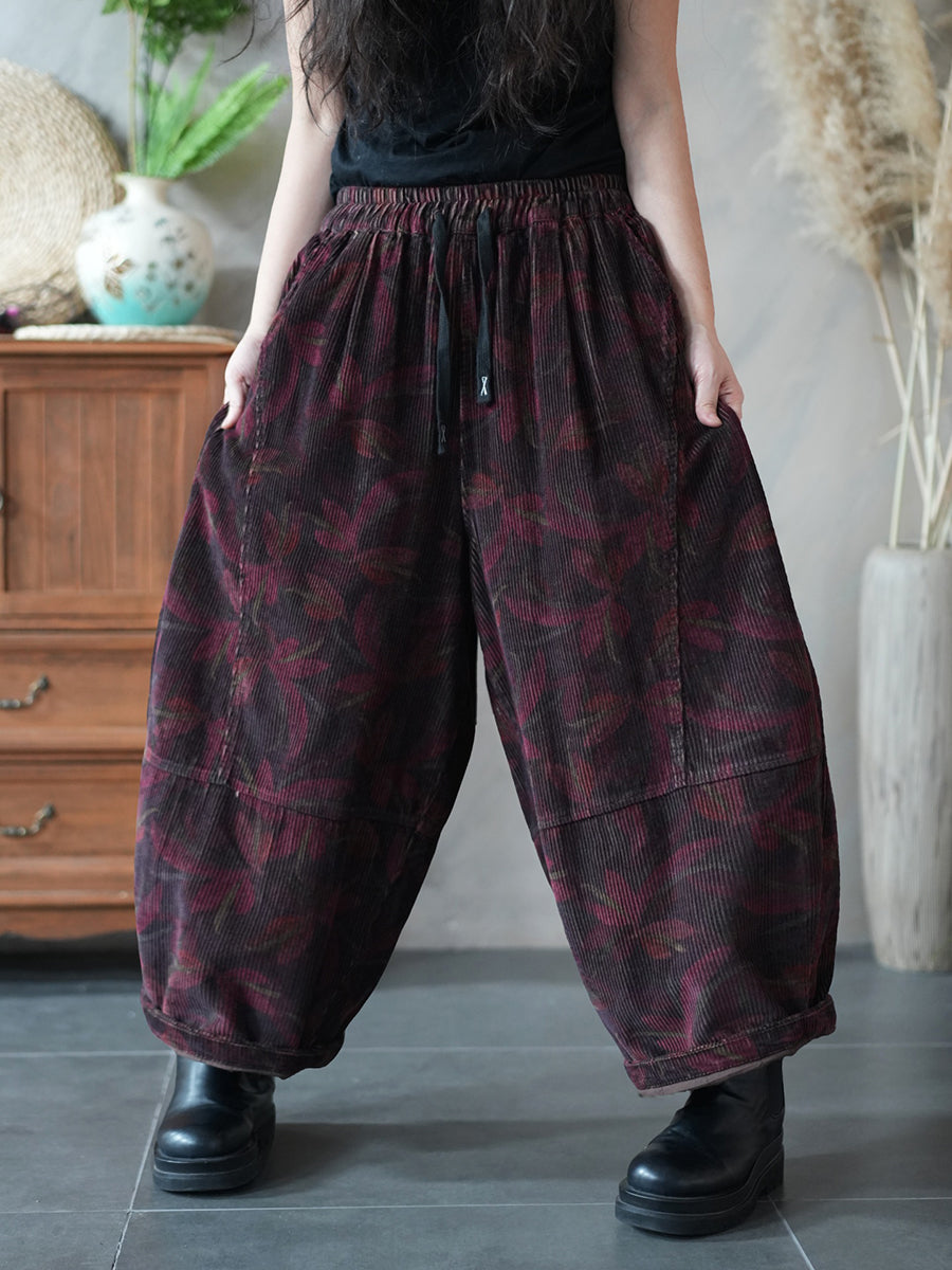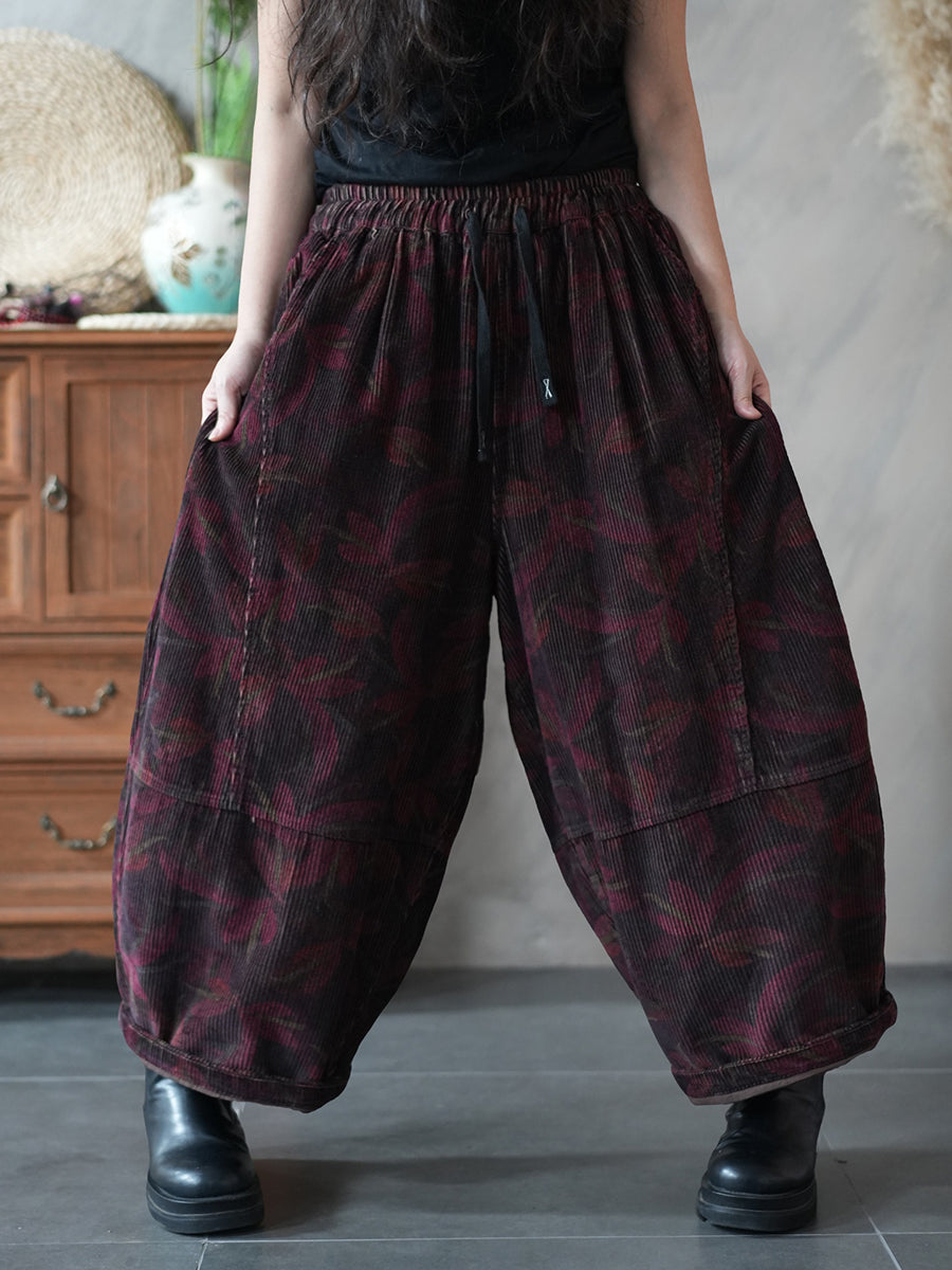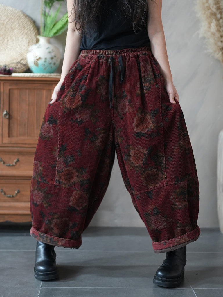 Damen Winter Retro Blumen Gepolsterte Haremshose