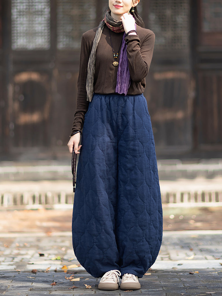 Damen Winter Retro Reine Farbe Gepolsterte Bloomers