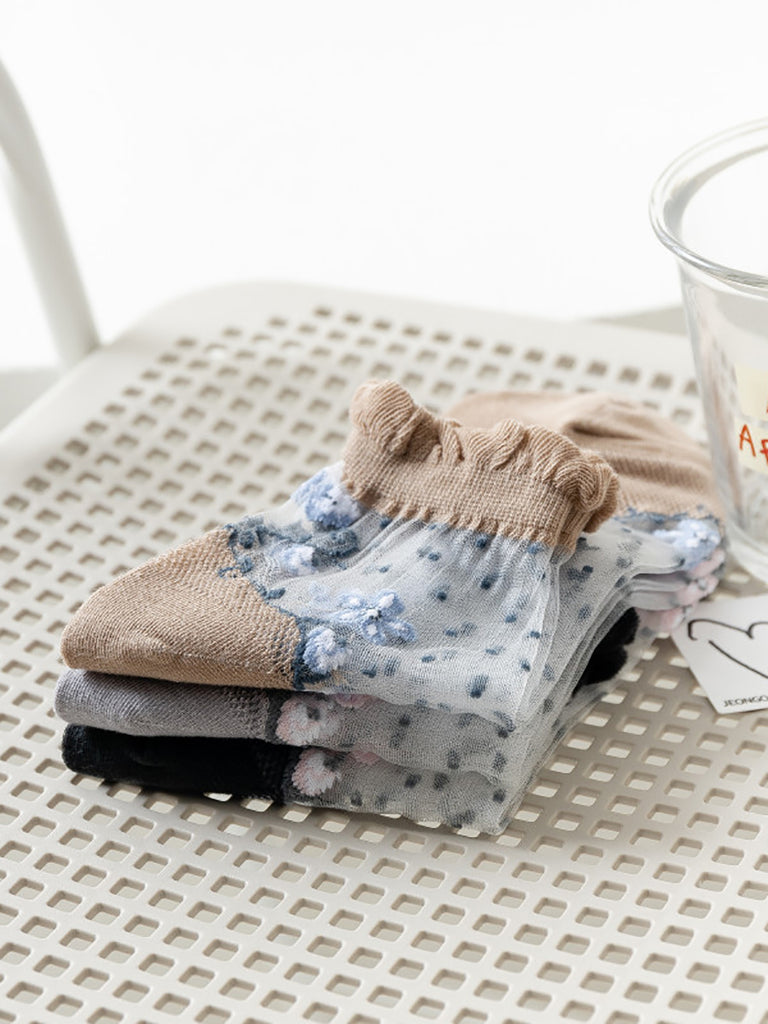 3 Paar Damensocken mit künstlerischer Blumen-Jacquardspitze