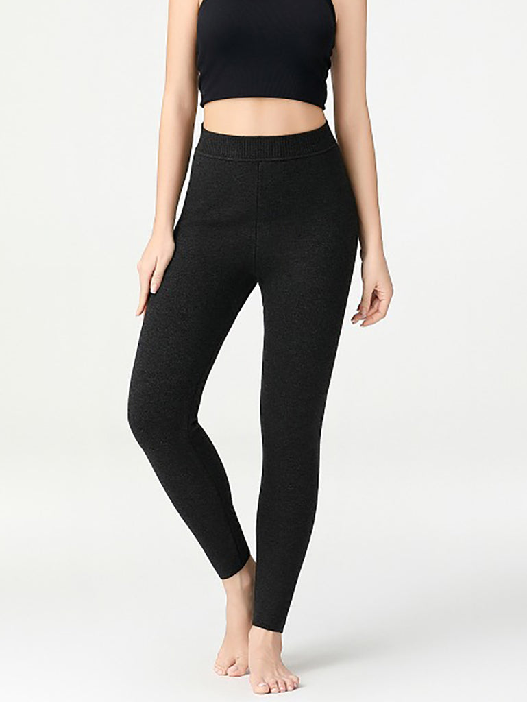 Winterwarme, einfarbige, fleecegefütterte Leggings mit hohem Bund, gefüttert in Fleece-Optik