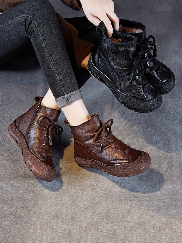 Vintage-Stiefel für Damen aus echtem Leder mit Fleecefutter