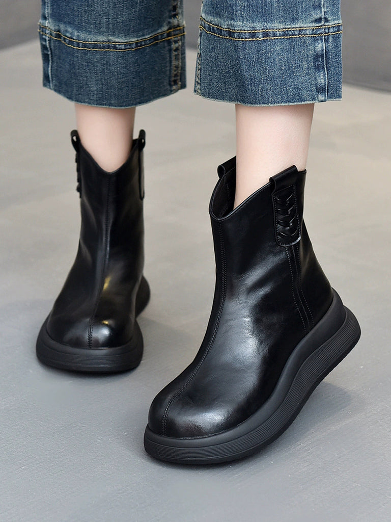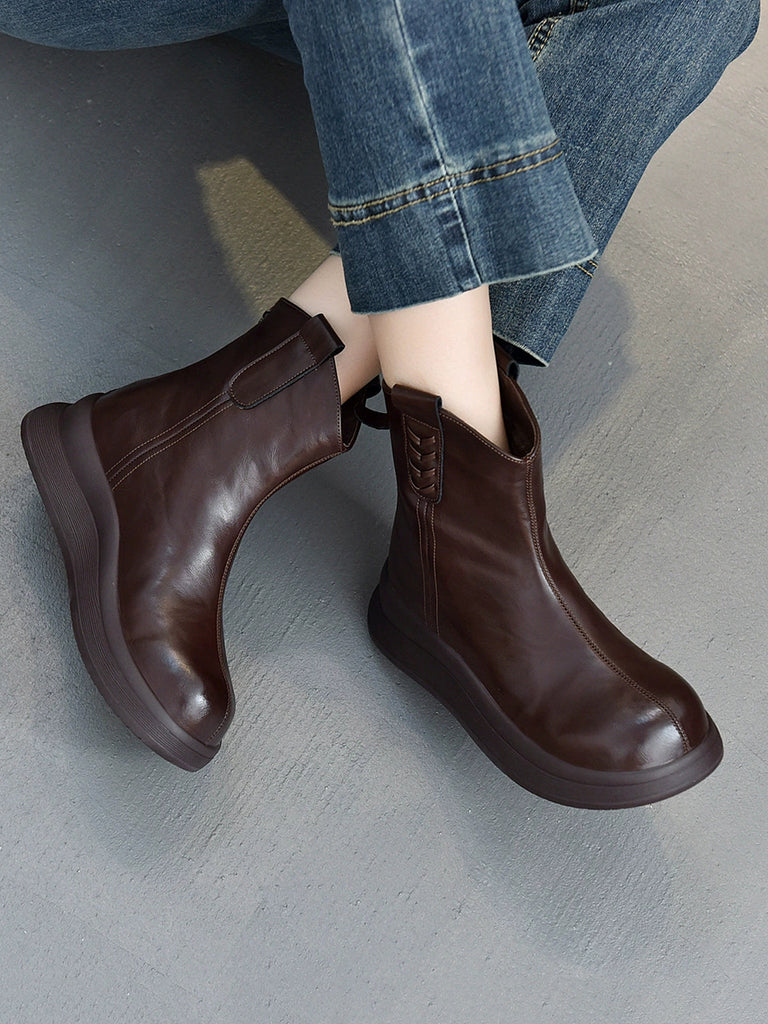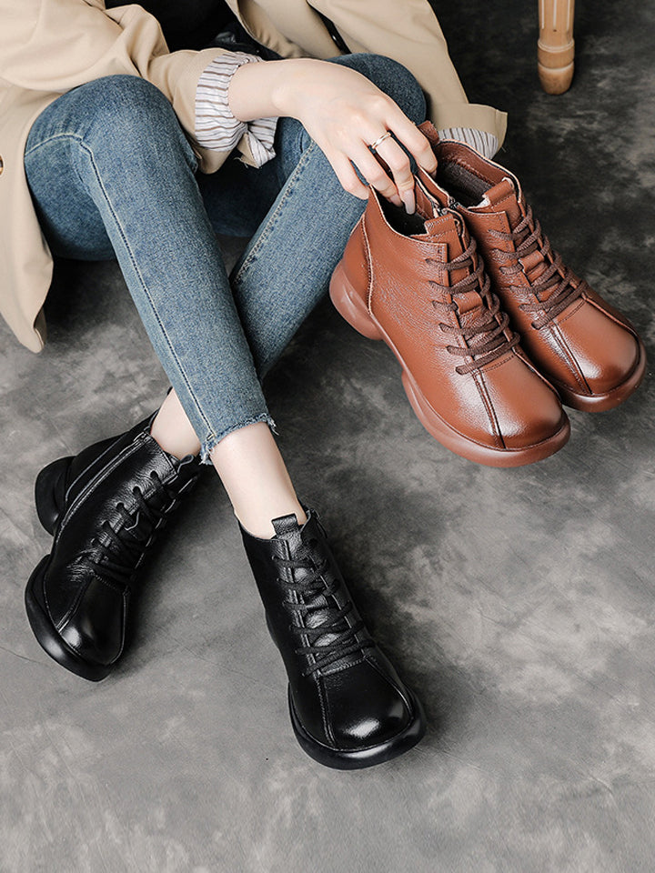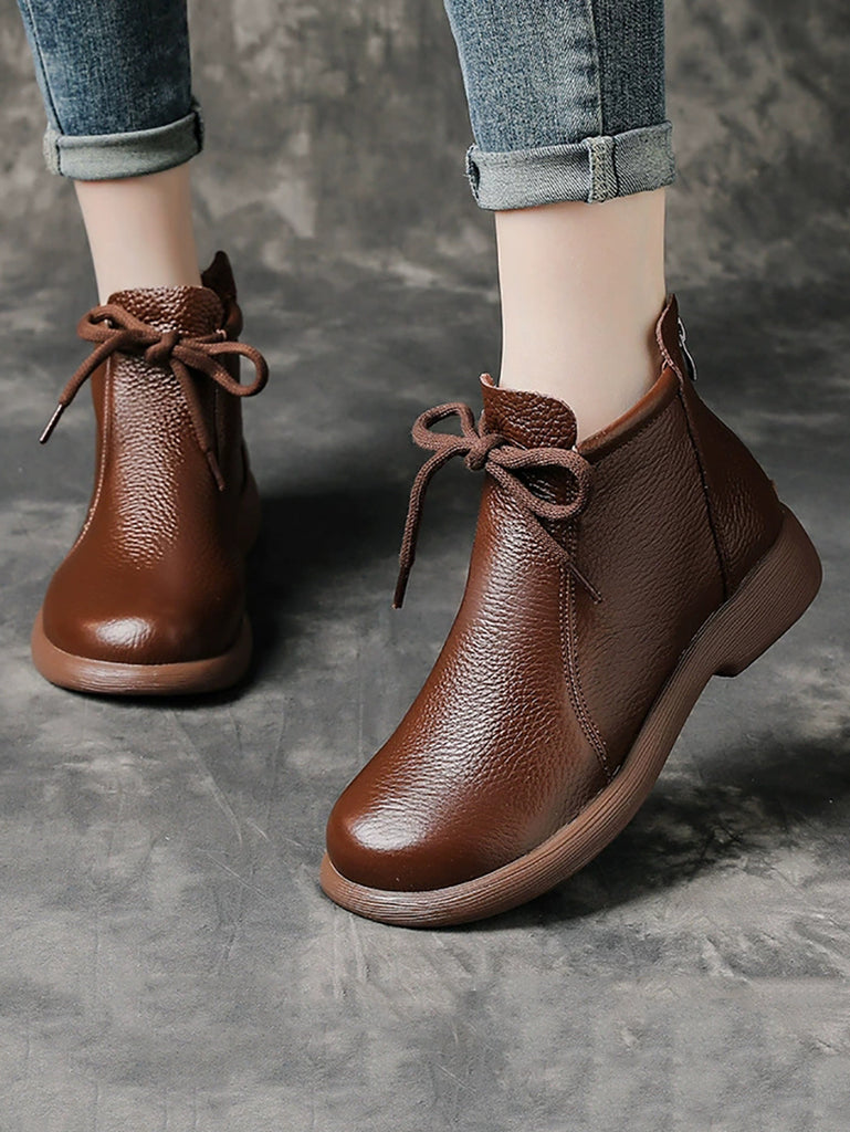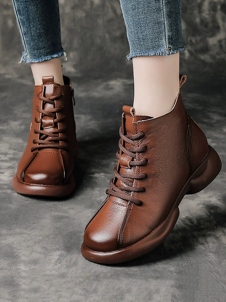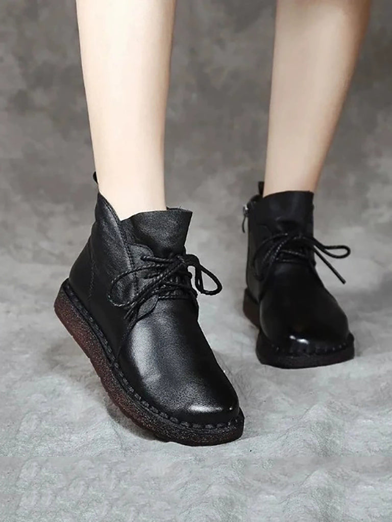 Vintage-Stiefeletten aus echtem Leder für Damen mit niedrigem Absatz