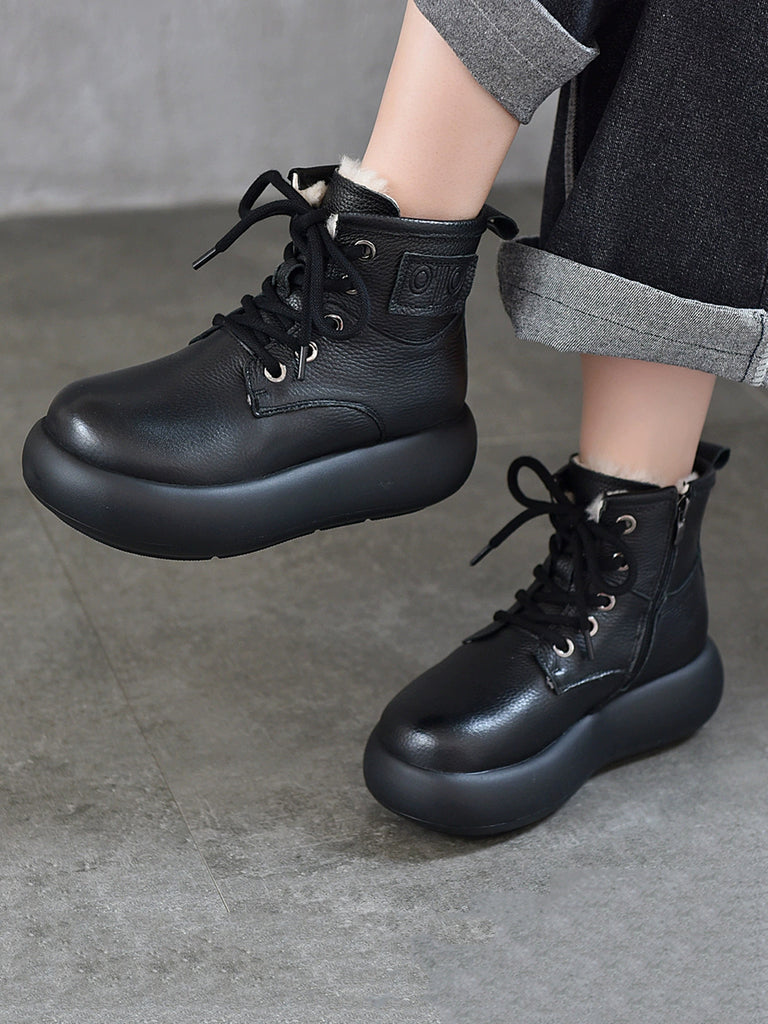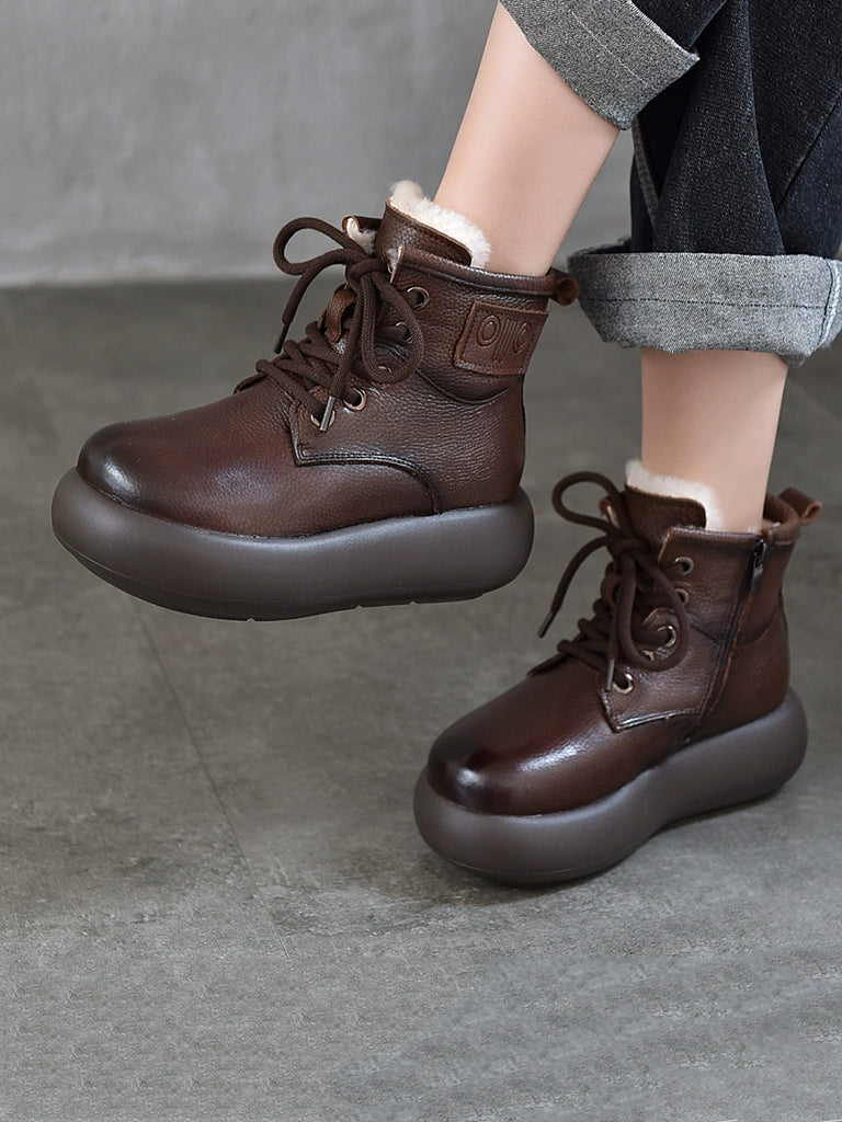 Damen Winter Plateau-Stiefeletten aus echtem Leder