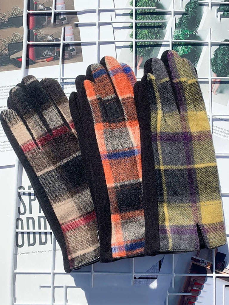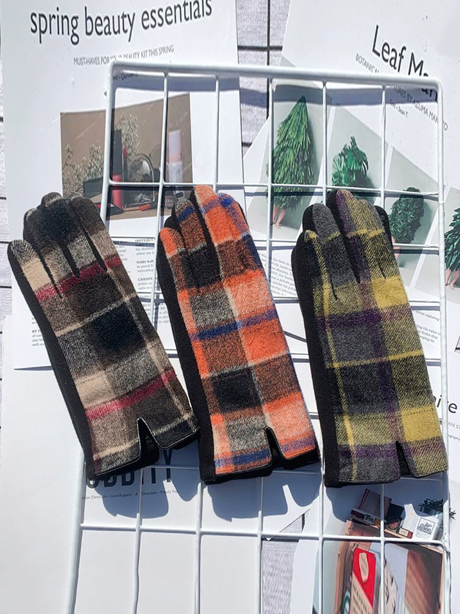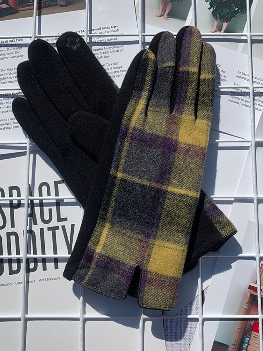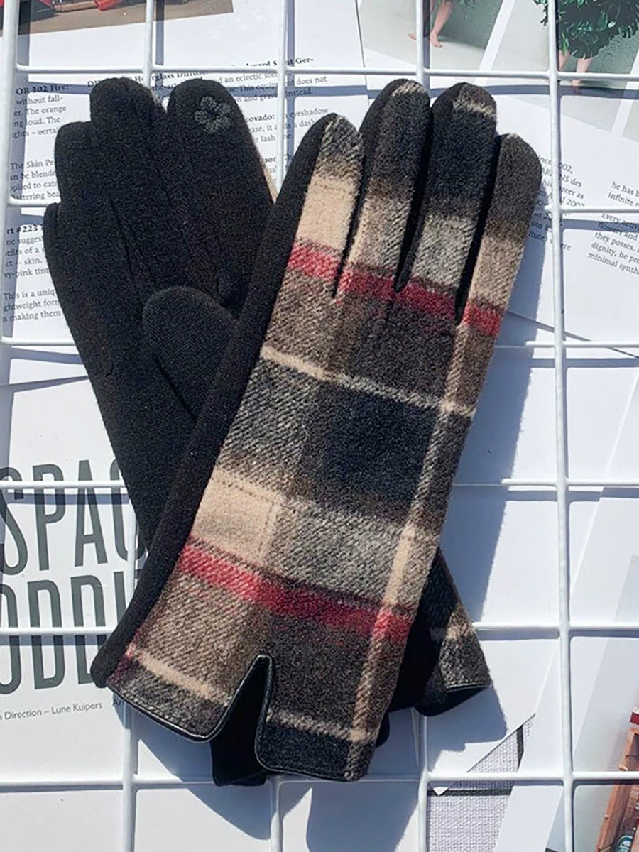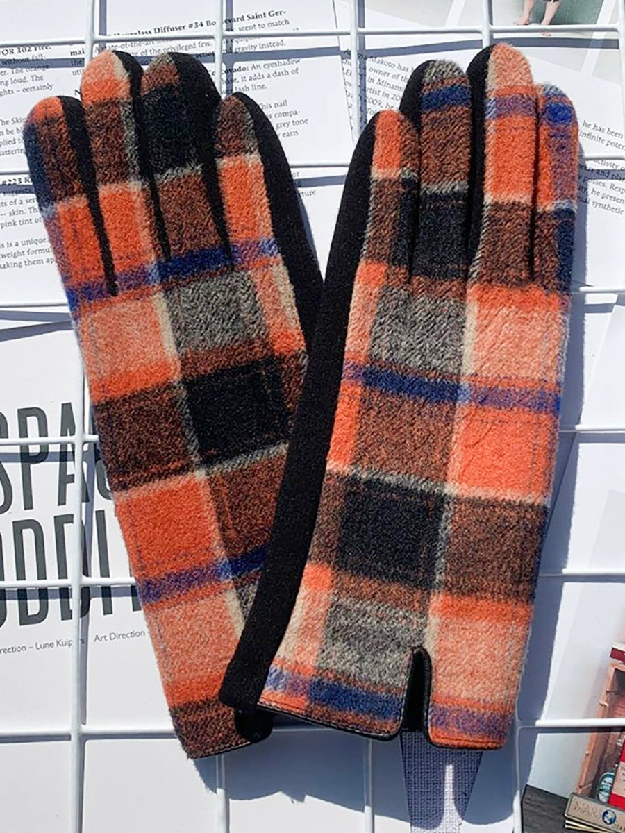 Damen-Fahrradhandschuhe mit ethnischem Karomuster, warm, Touchscreen-kompatibel