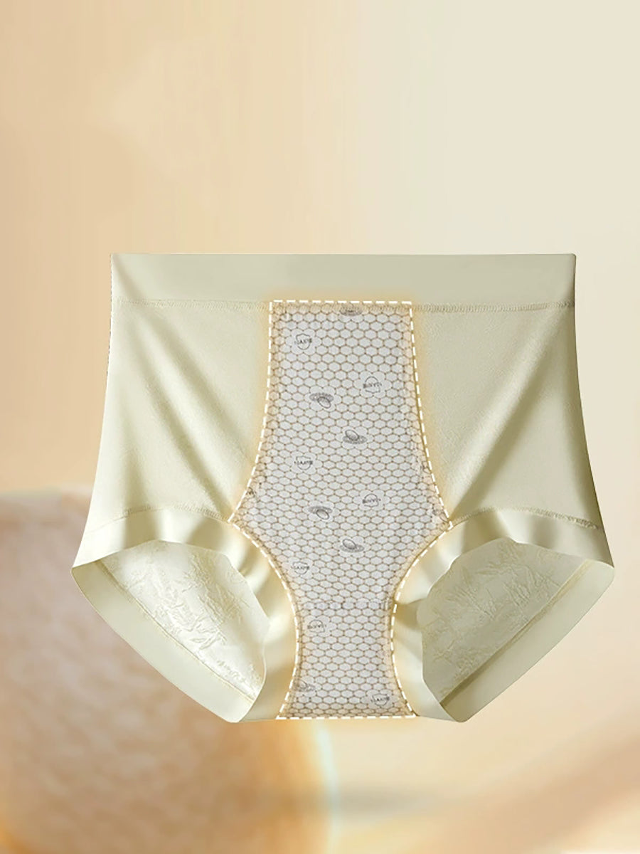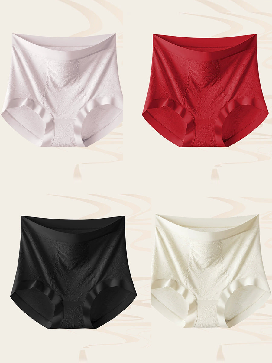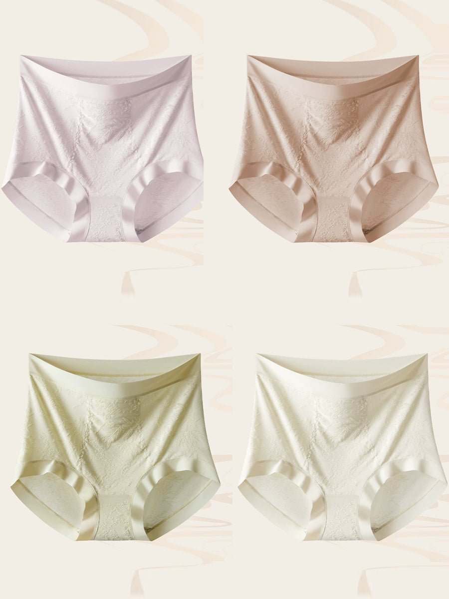 4-teiliges Set Damen-Unterwäsche mit künstlerischem Jacquard-Muster und hohem Bund