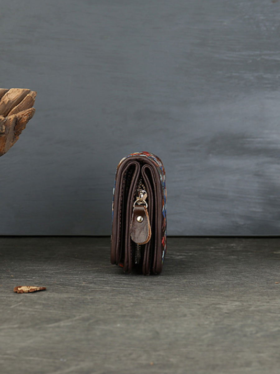 Bunte Multifunktions-Geldbörse aus gewebtem Leder