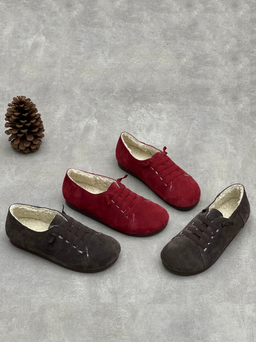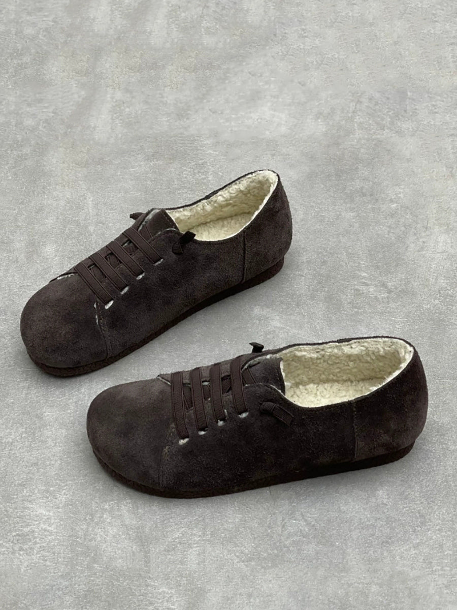 Vintage-Schuhe aus echtem Leder mit Fleecefutter für Damen