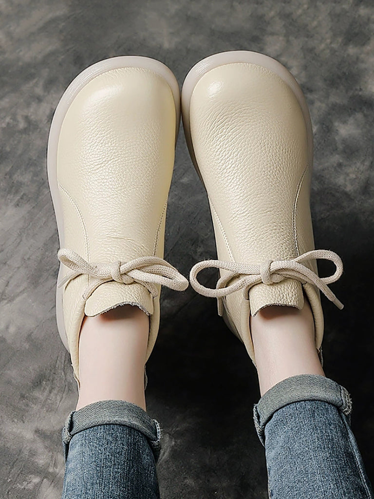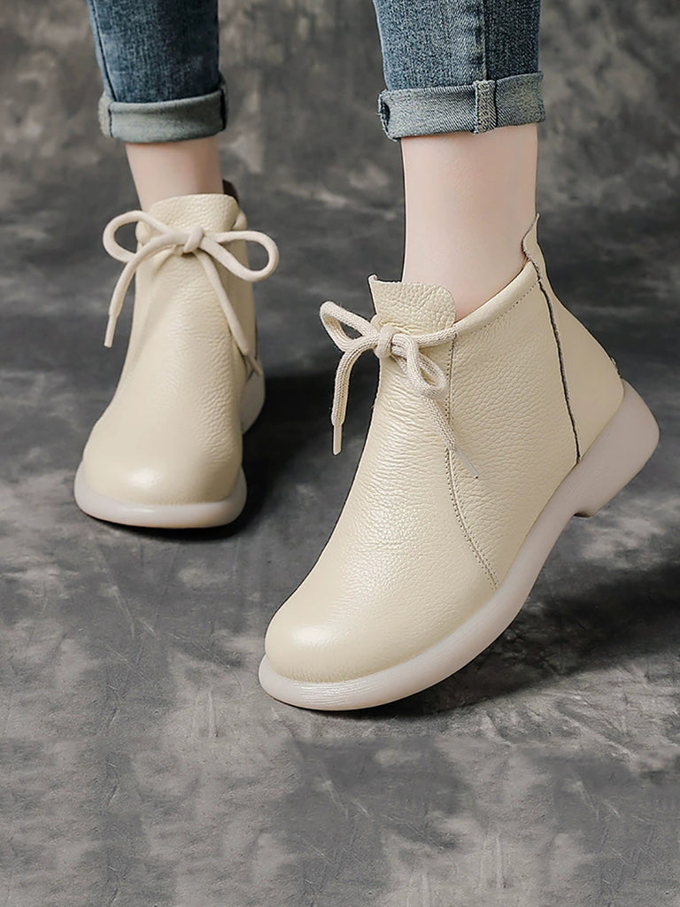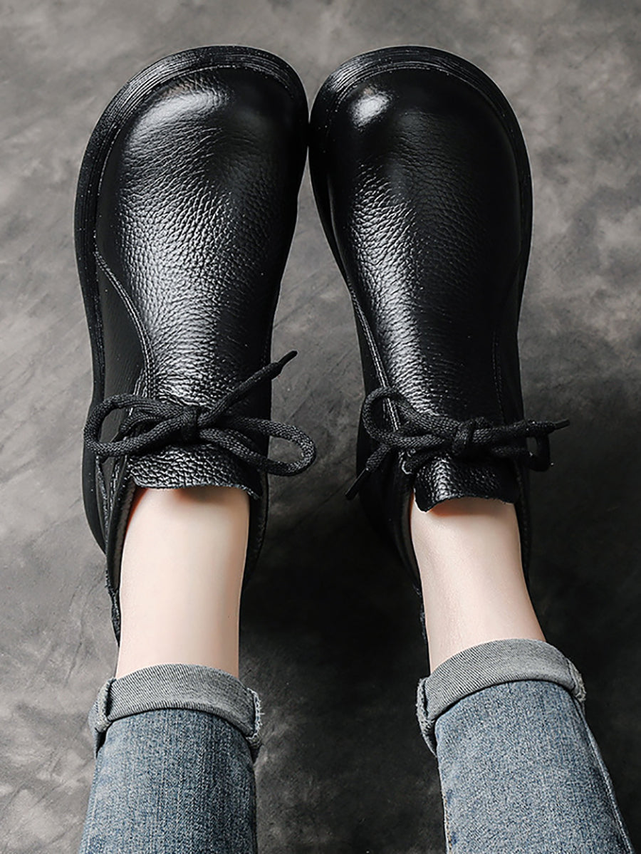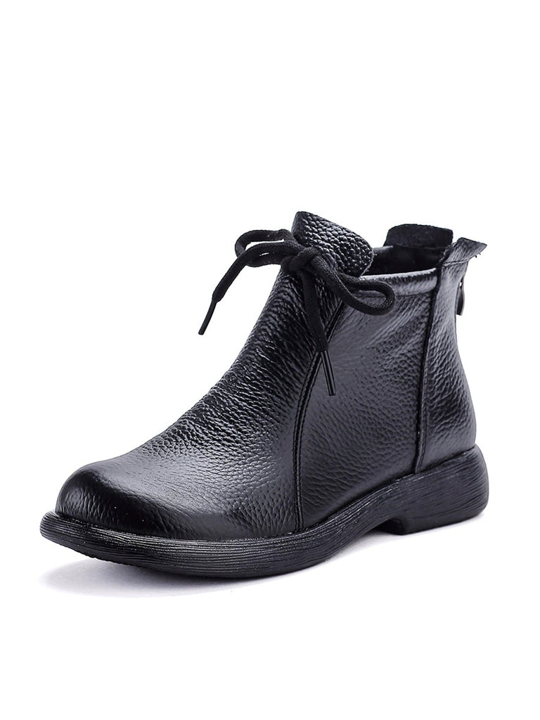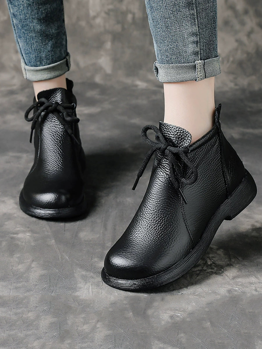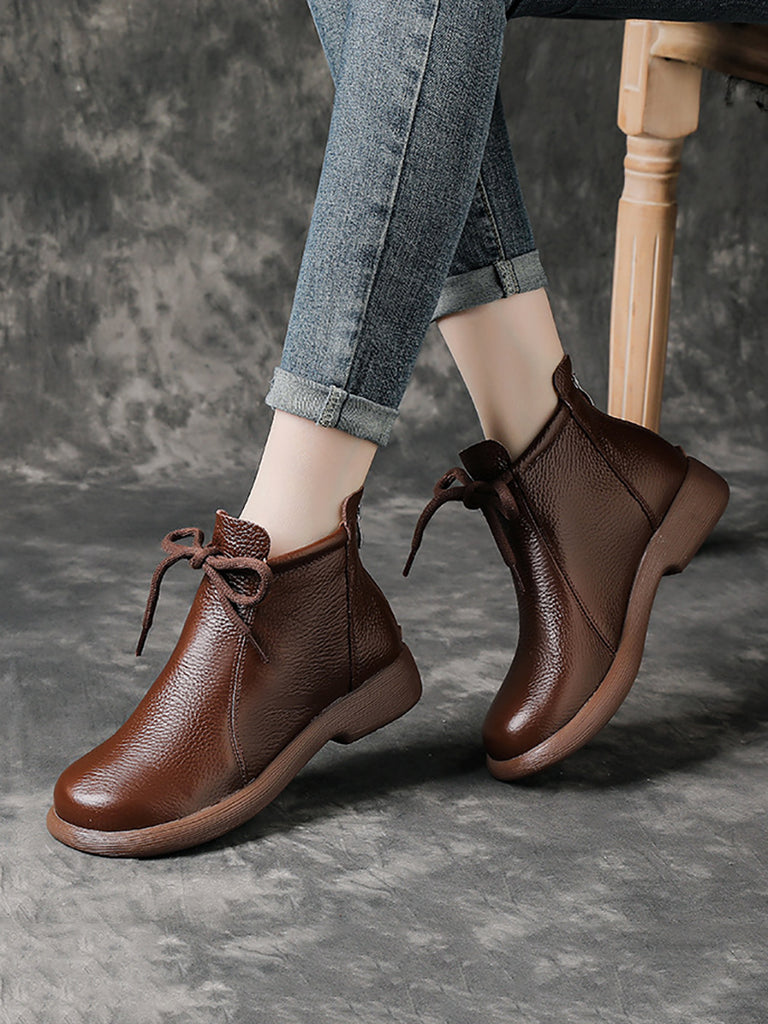 Vintage-Stiefeletten aus echtem Leder für Damen mit niedrigem Absatz