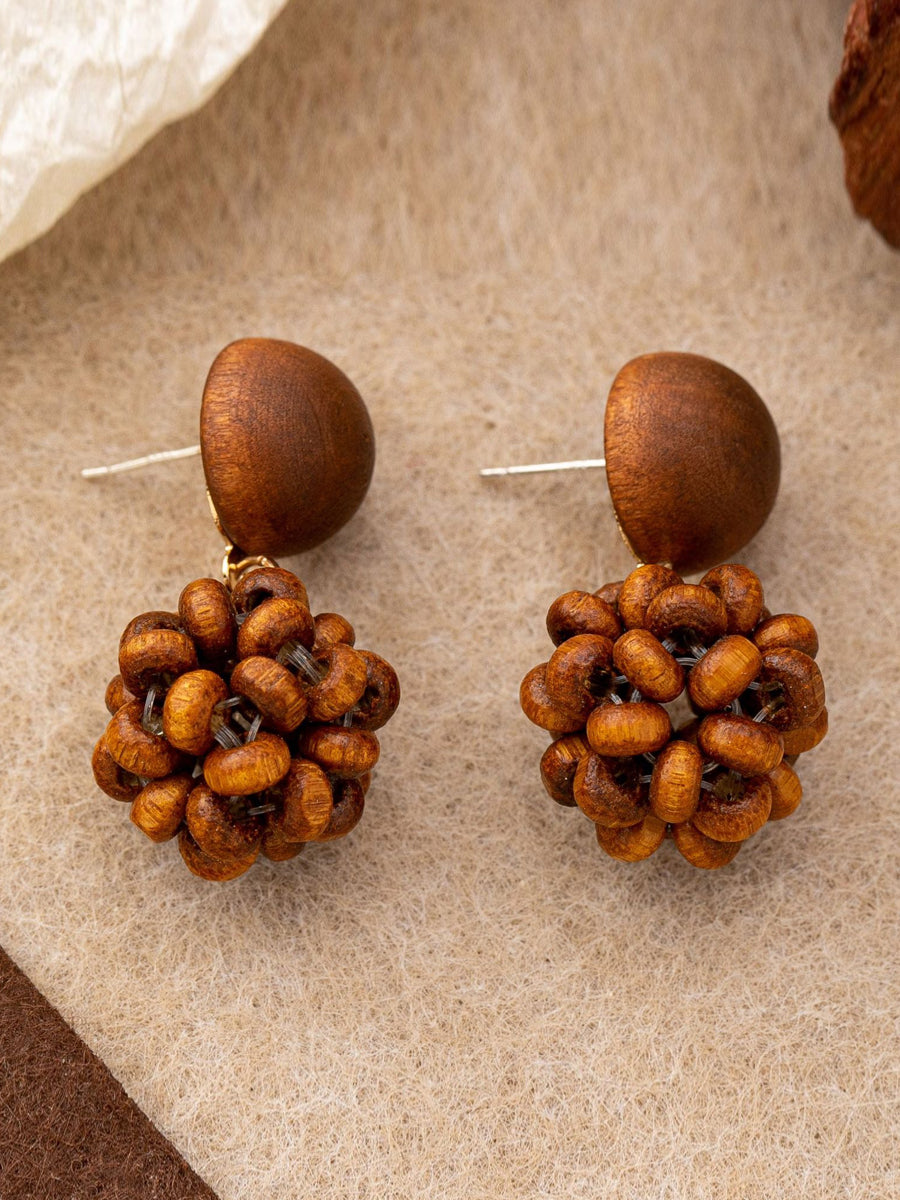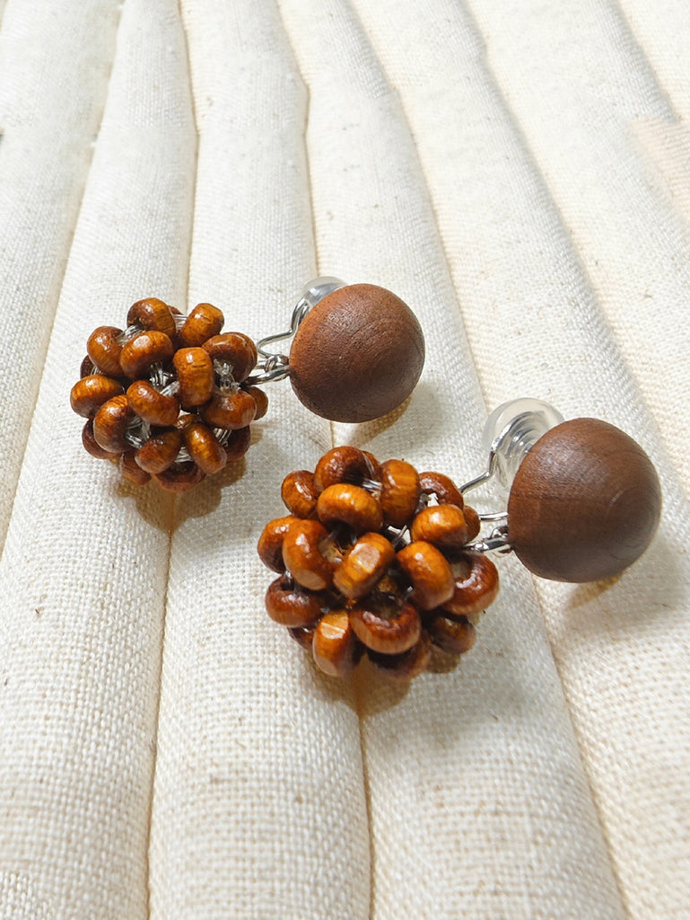 Frauen Vintage Holz Tannenzapfen S925Sliver Ohrringe