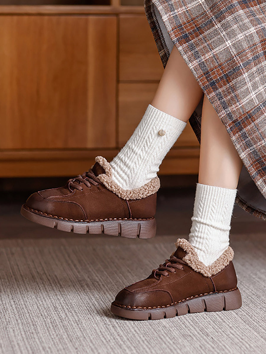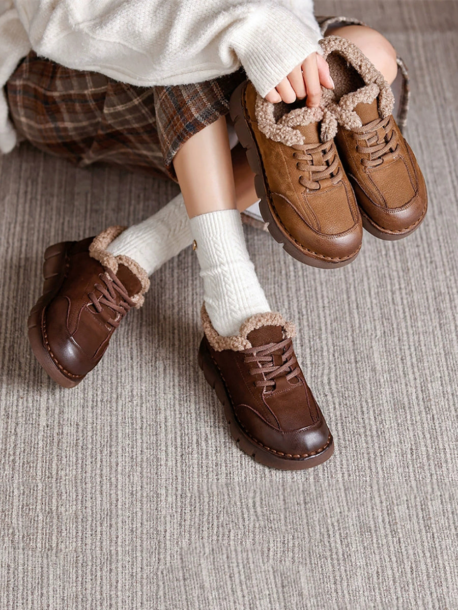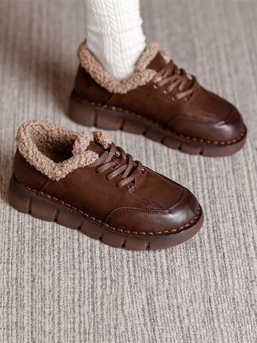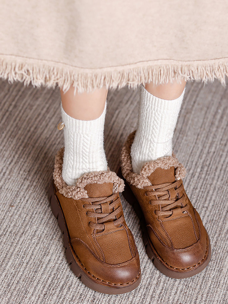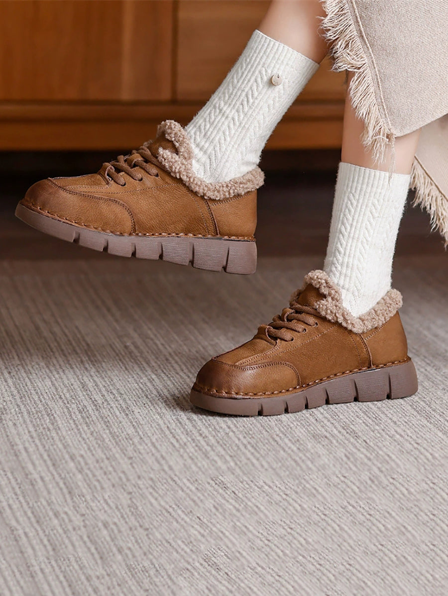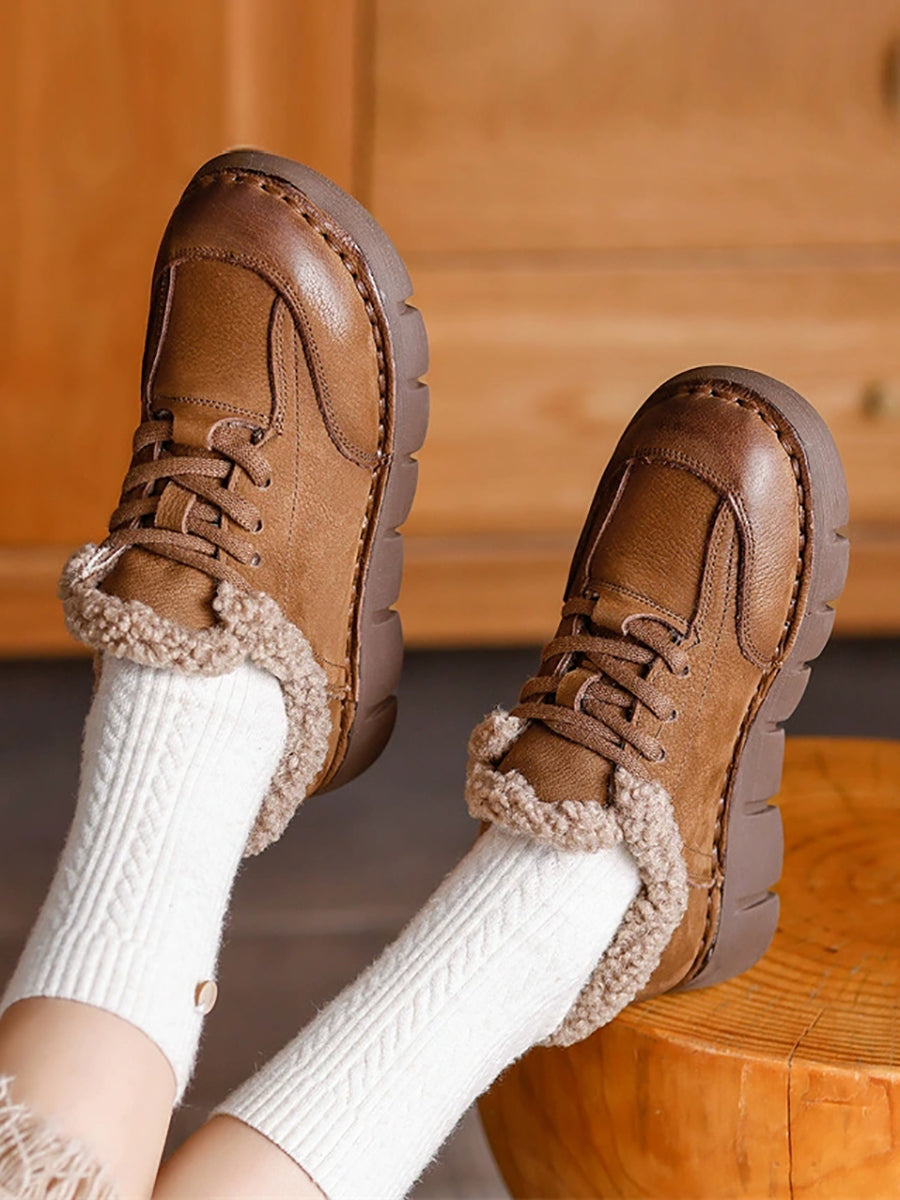 Damen Winter Echtleder Fleecegefütterte Plateauschuhe