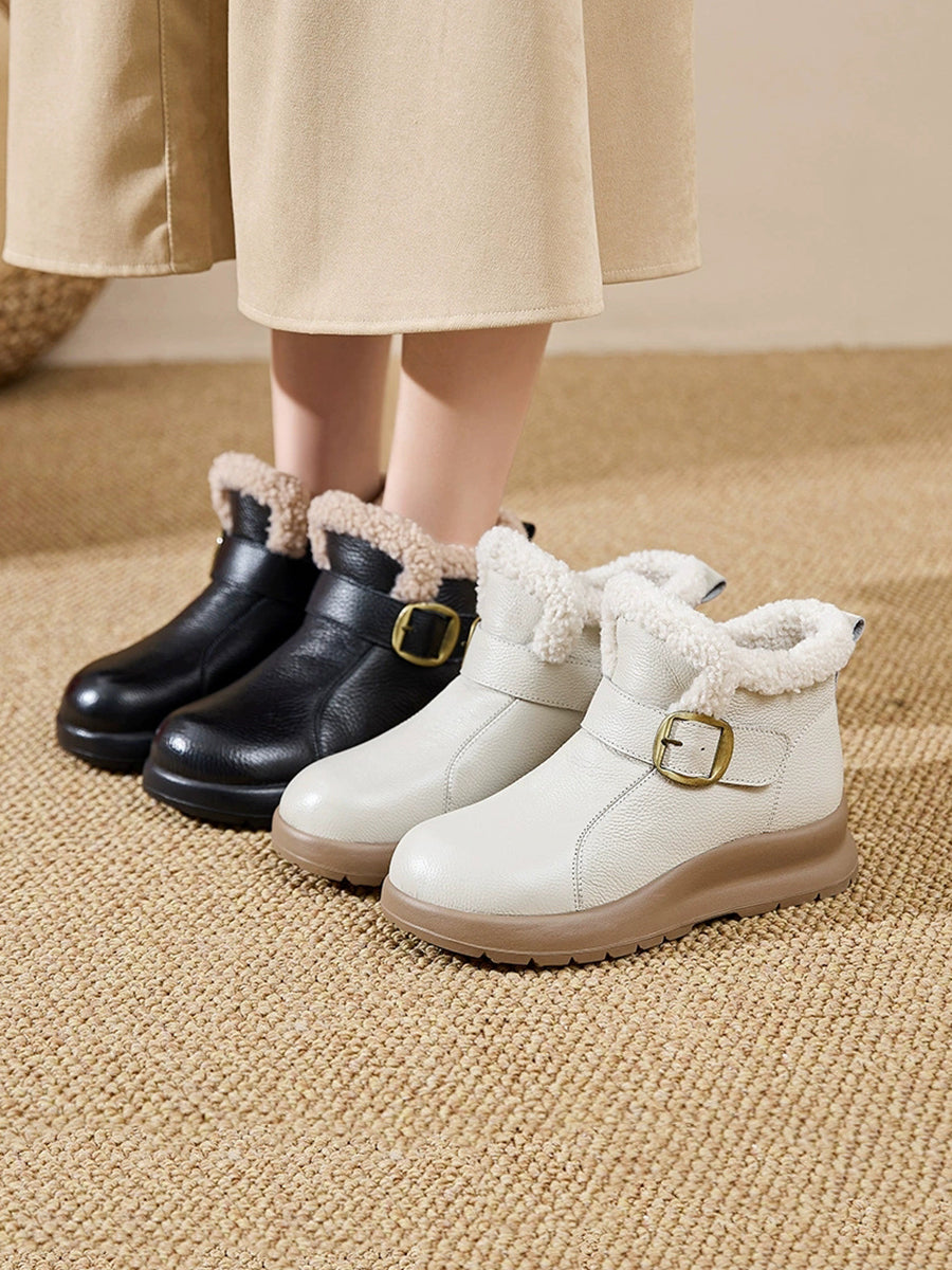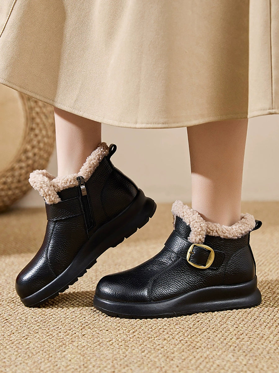 Damen Winter Stiefeletten aus echtem Leder, gefüttert mit Fleece