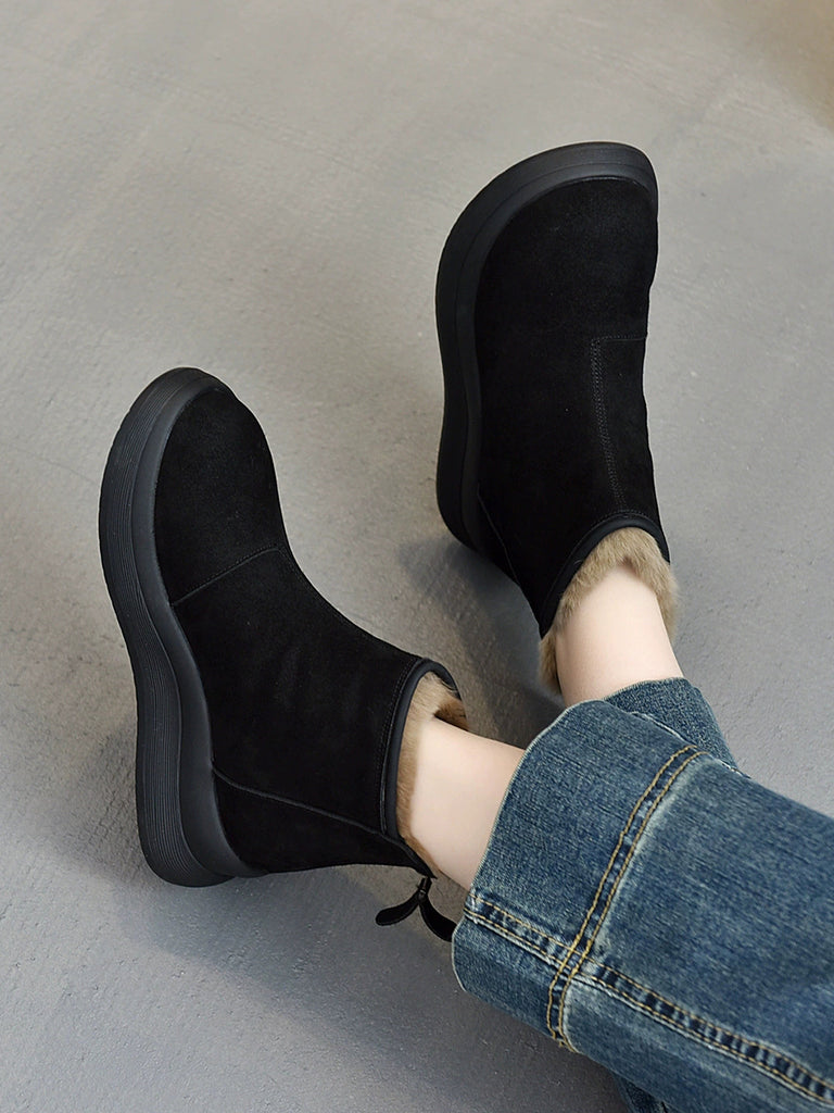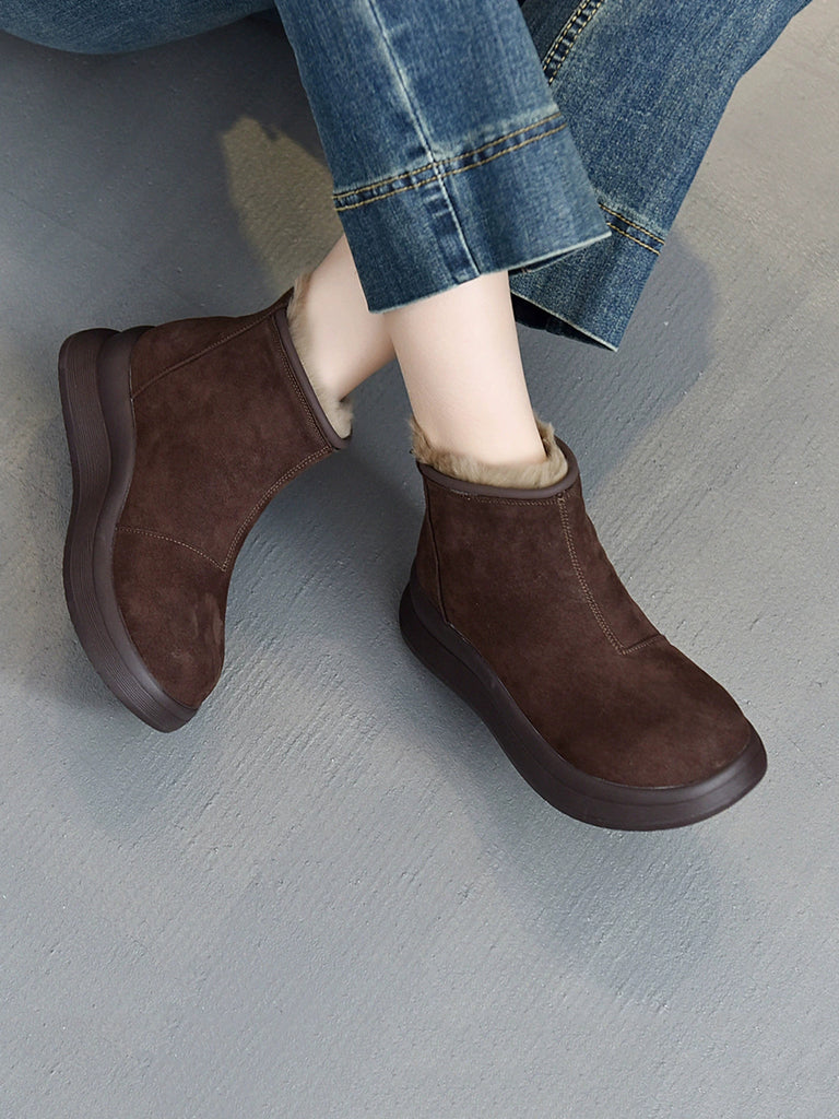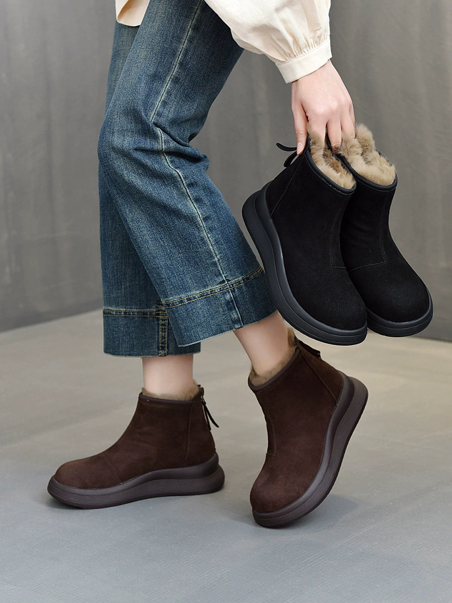 Damen-Winter-Chelsea-Boots aus echtem Leder mit Fleecefutter