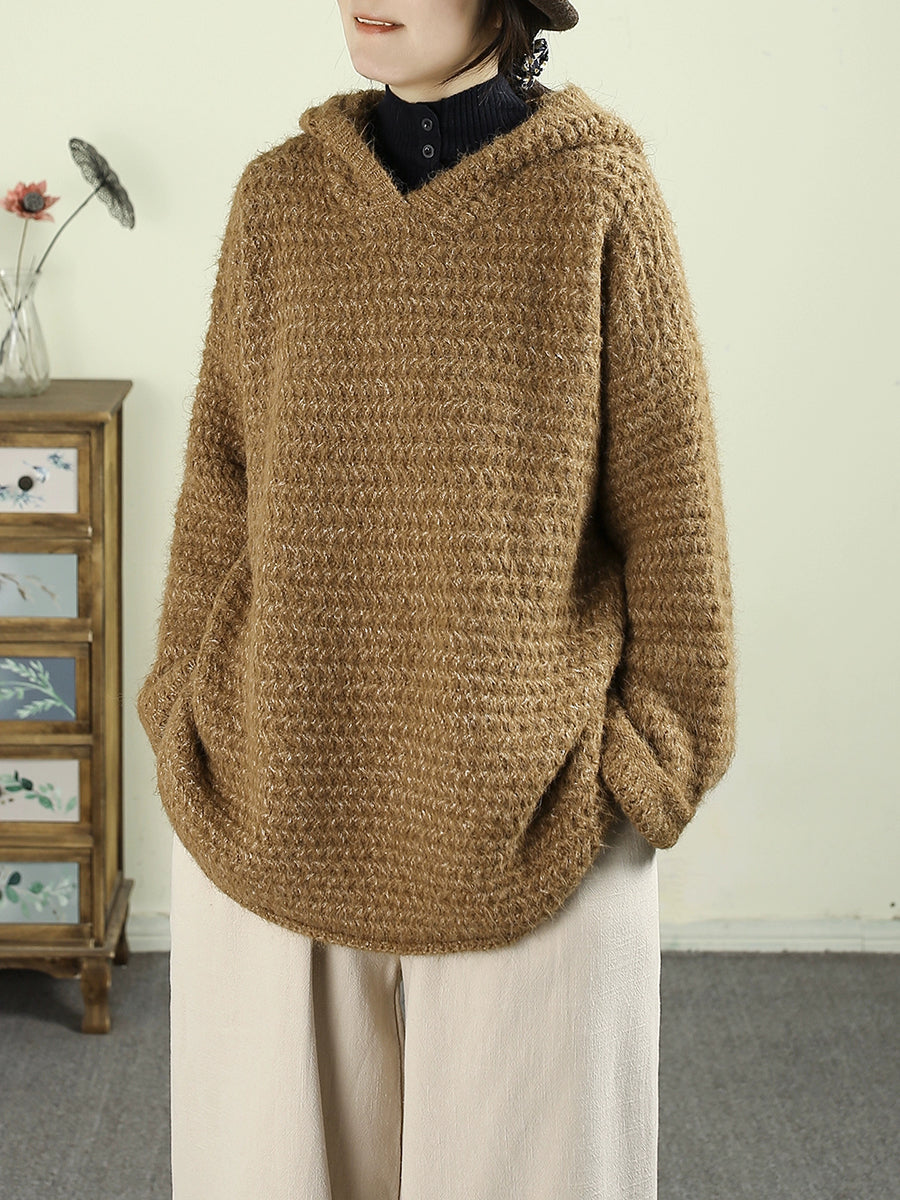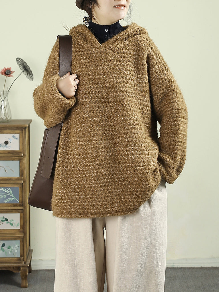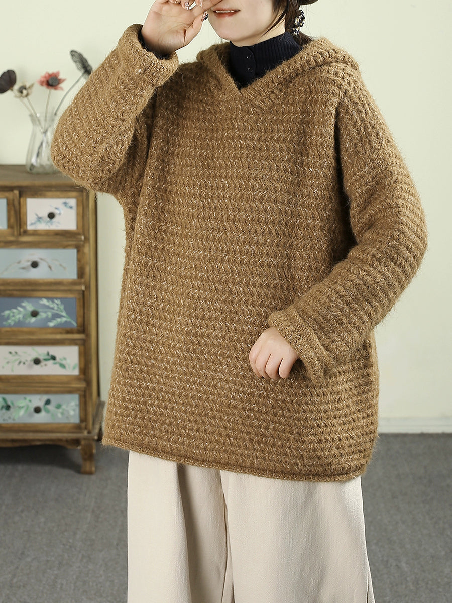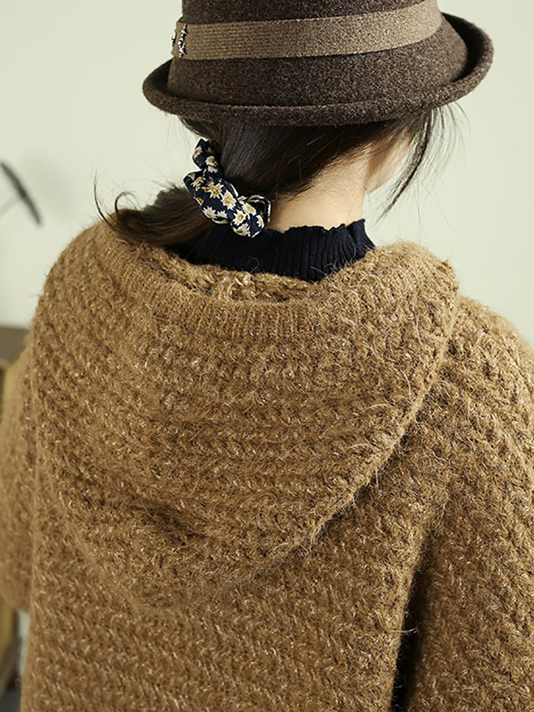 Damen Winter Retro Strickmantel mit Kapuze in Unifarben