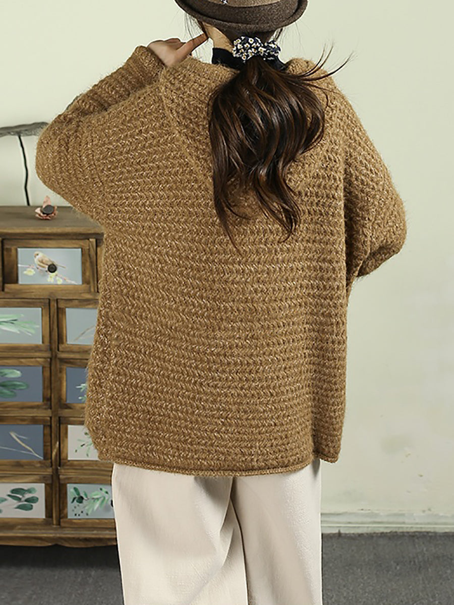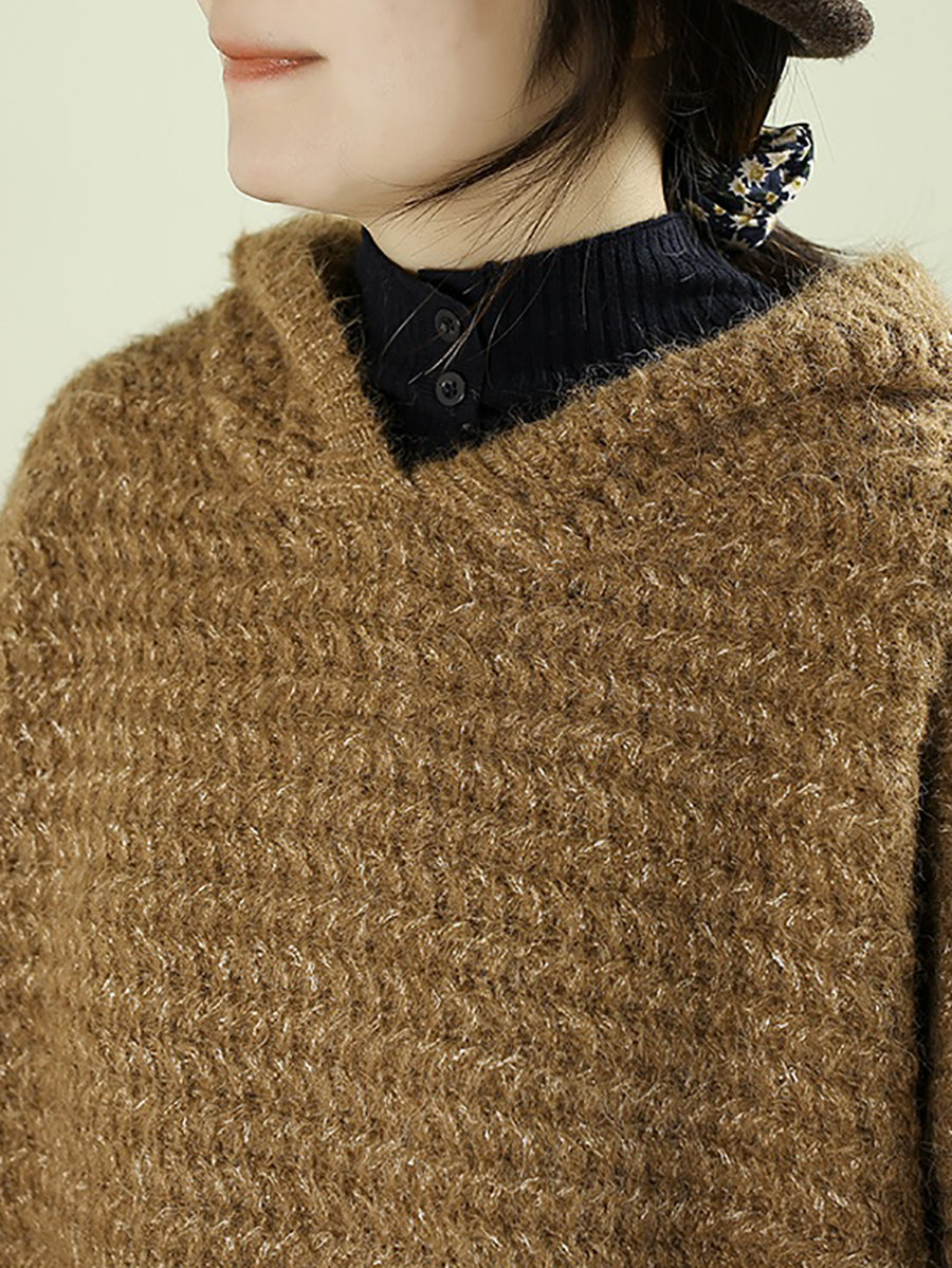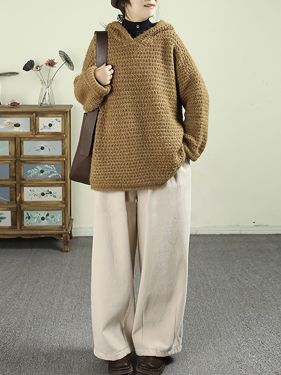 Damen Winter Retro Strickmantel mit Kapuze in Unifarben
