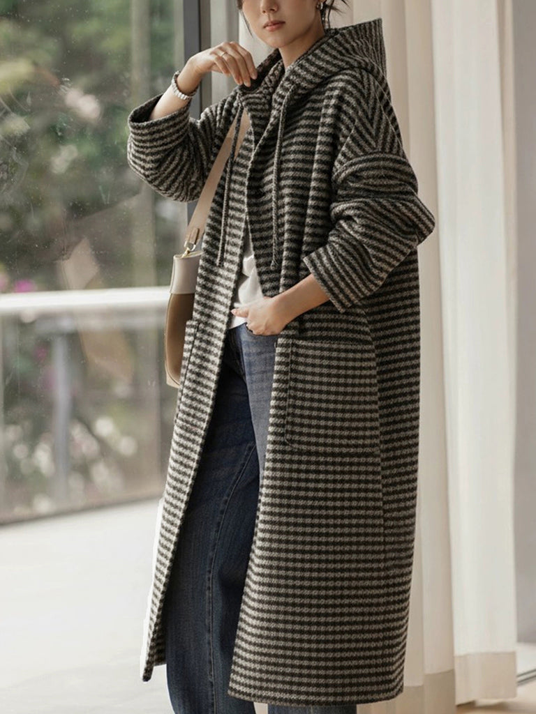 Damen-Wintermantel mit Kapuze und Vintage-Streifen