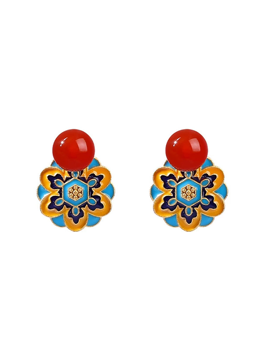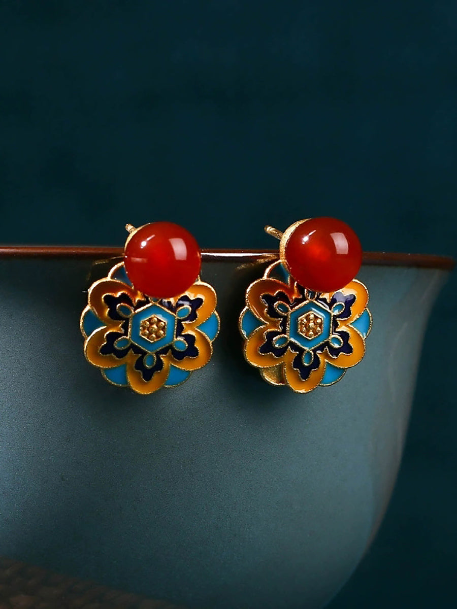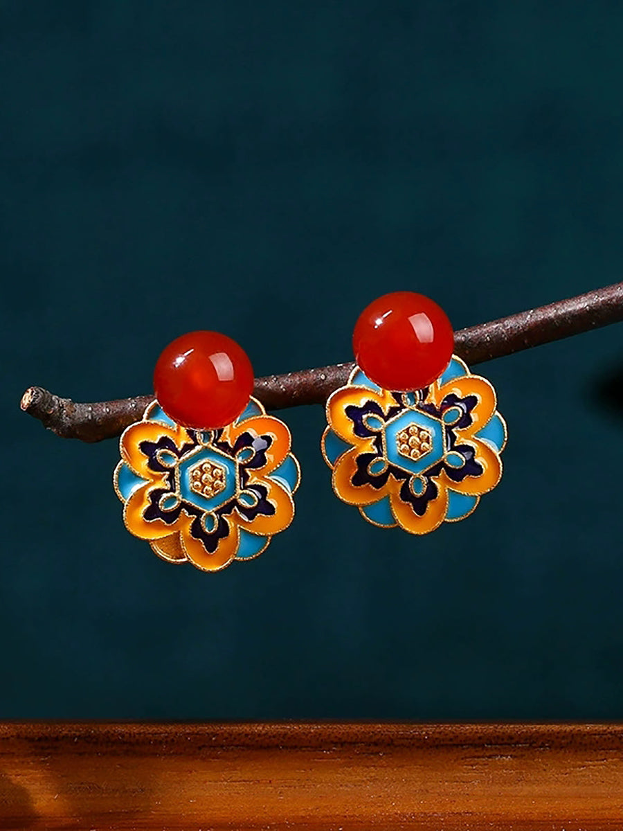 Vintage Jade Emaille Lotus Totem Legierung Ohrringe