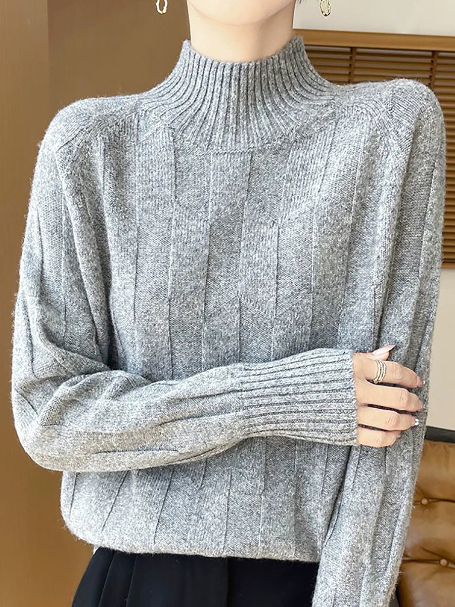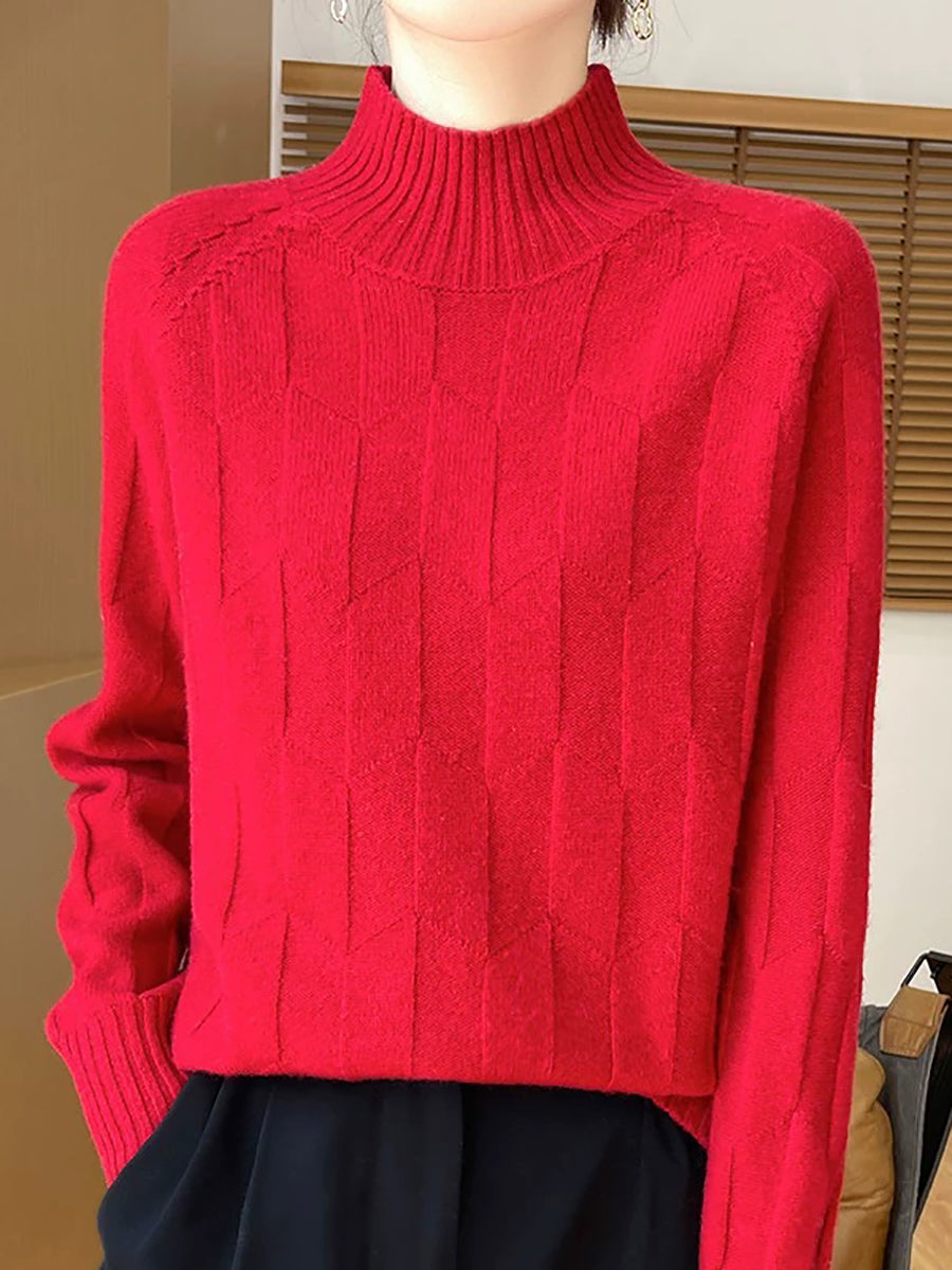 Artsy Winterpullover für Damen in Unifarben mit halben Rollkragen