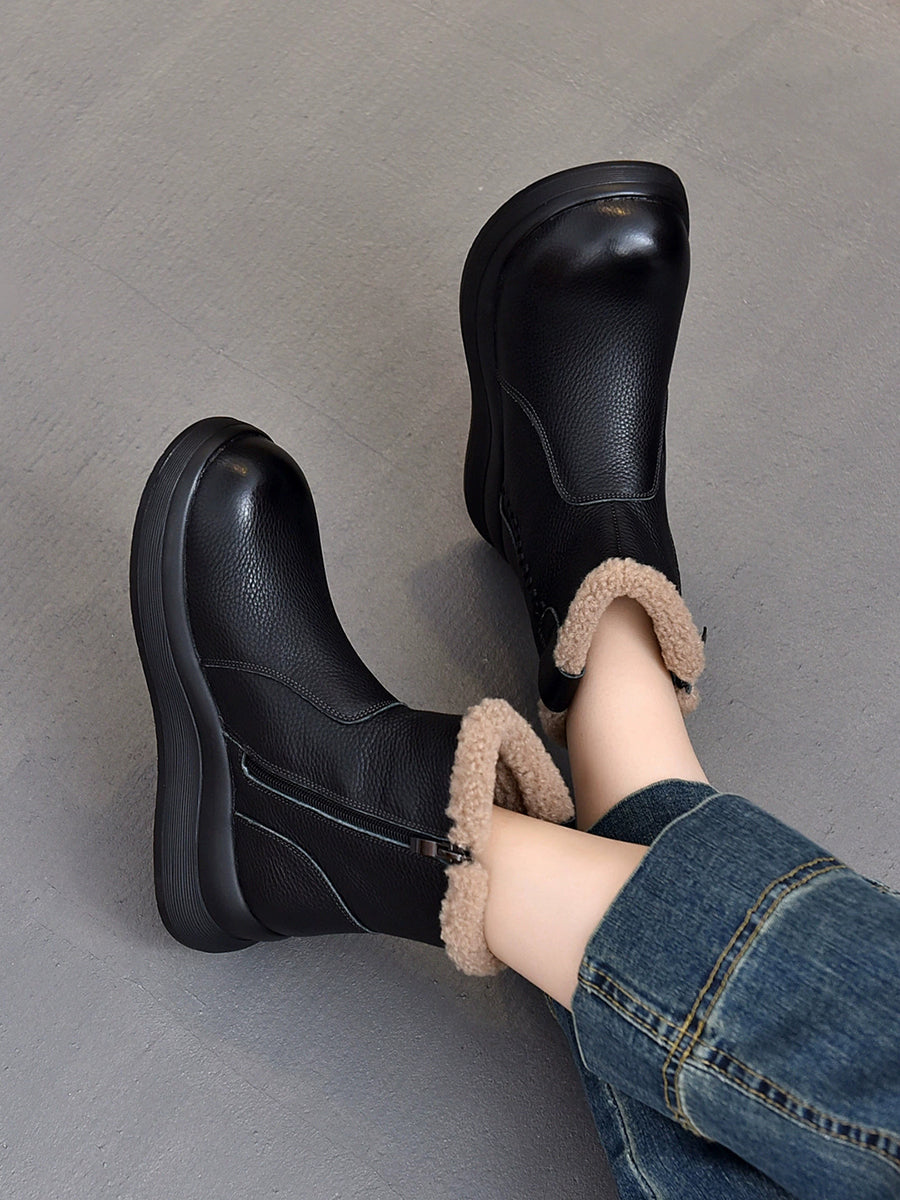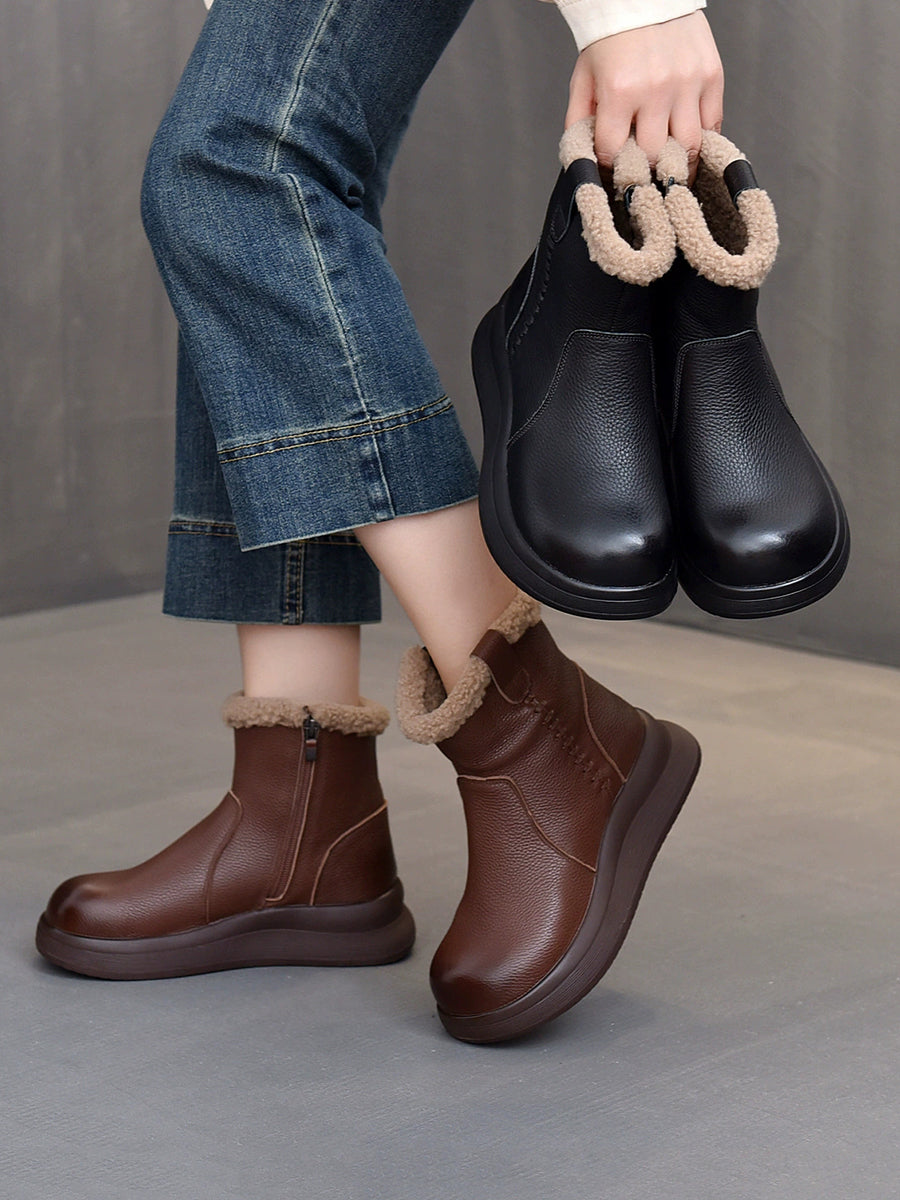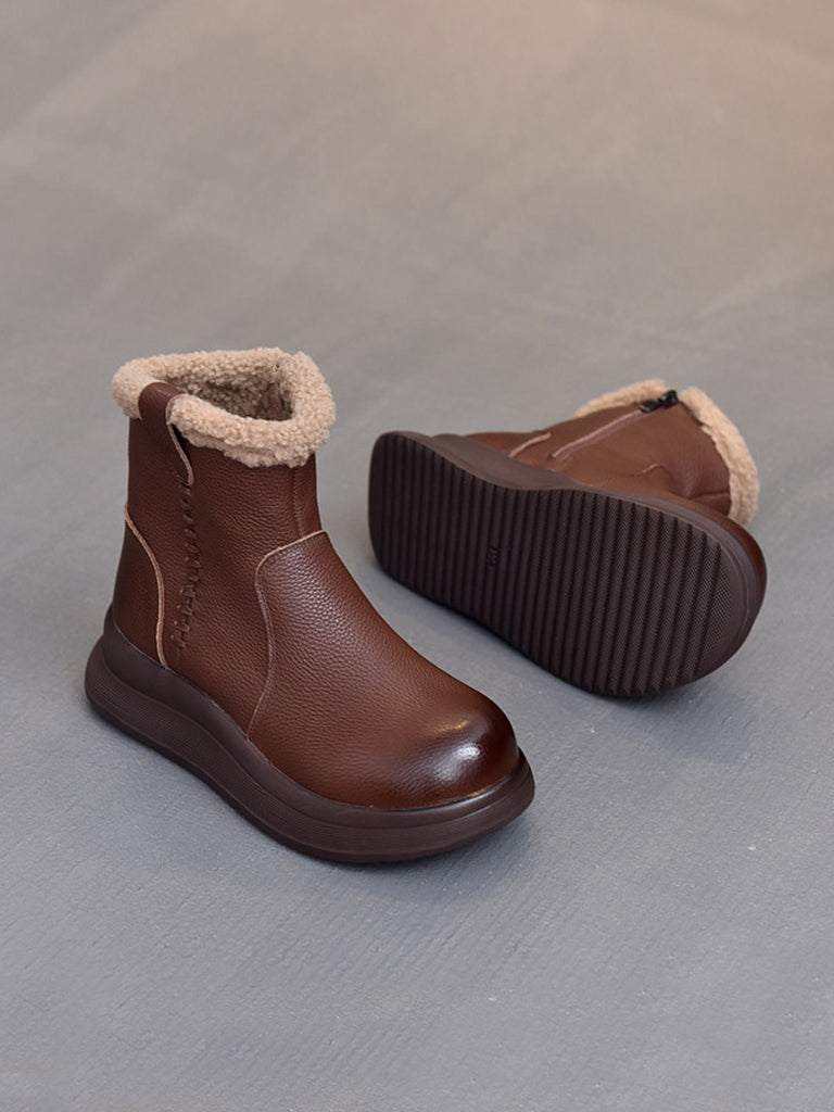 Vintage-Stiefel für Damen aus echtem Leder mit Fleecefutter