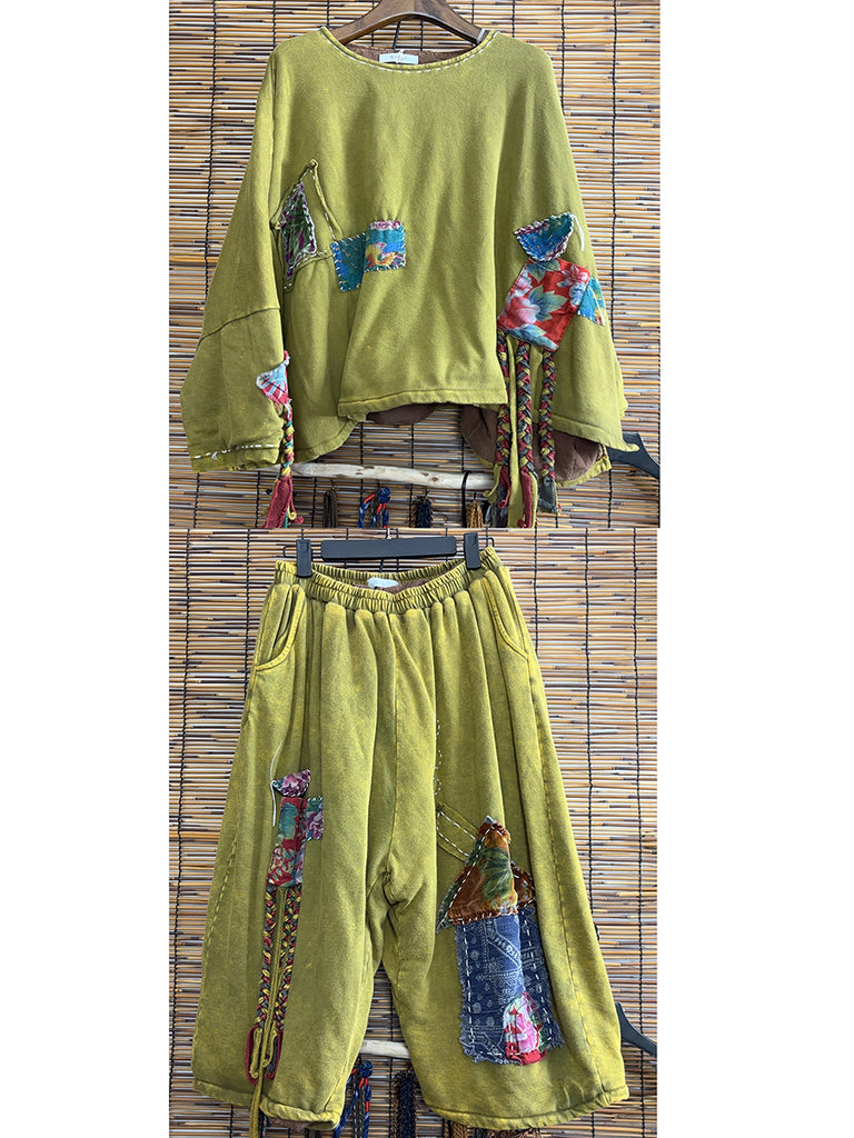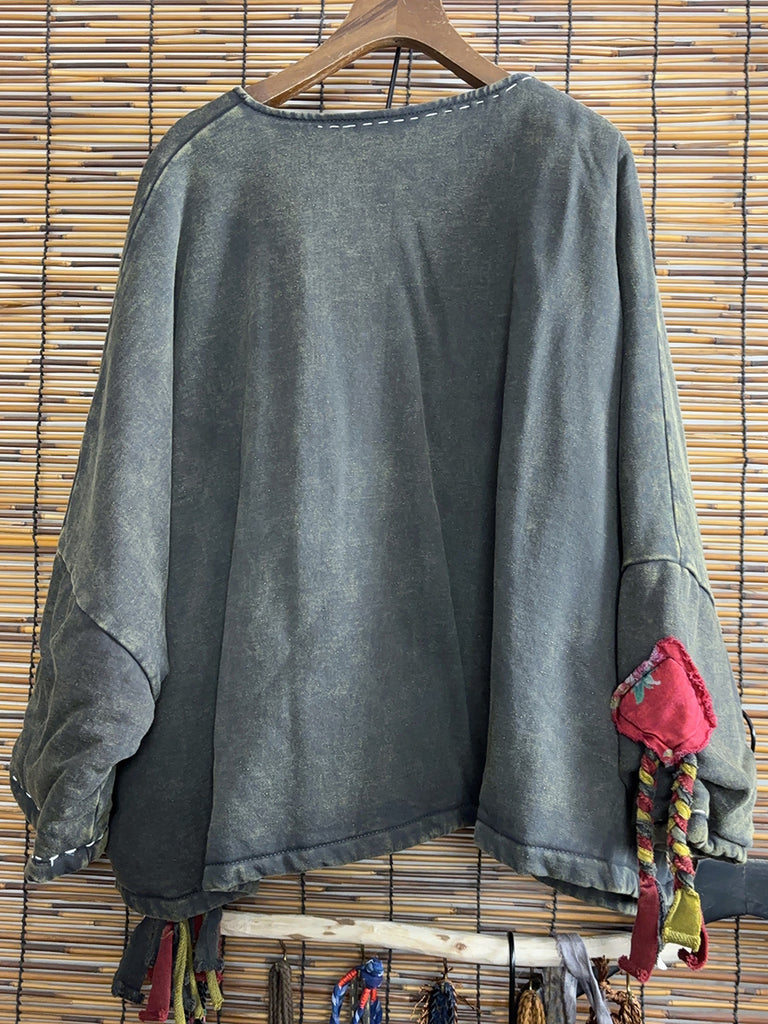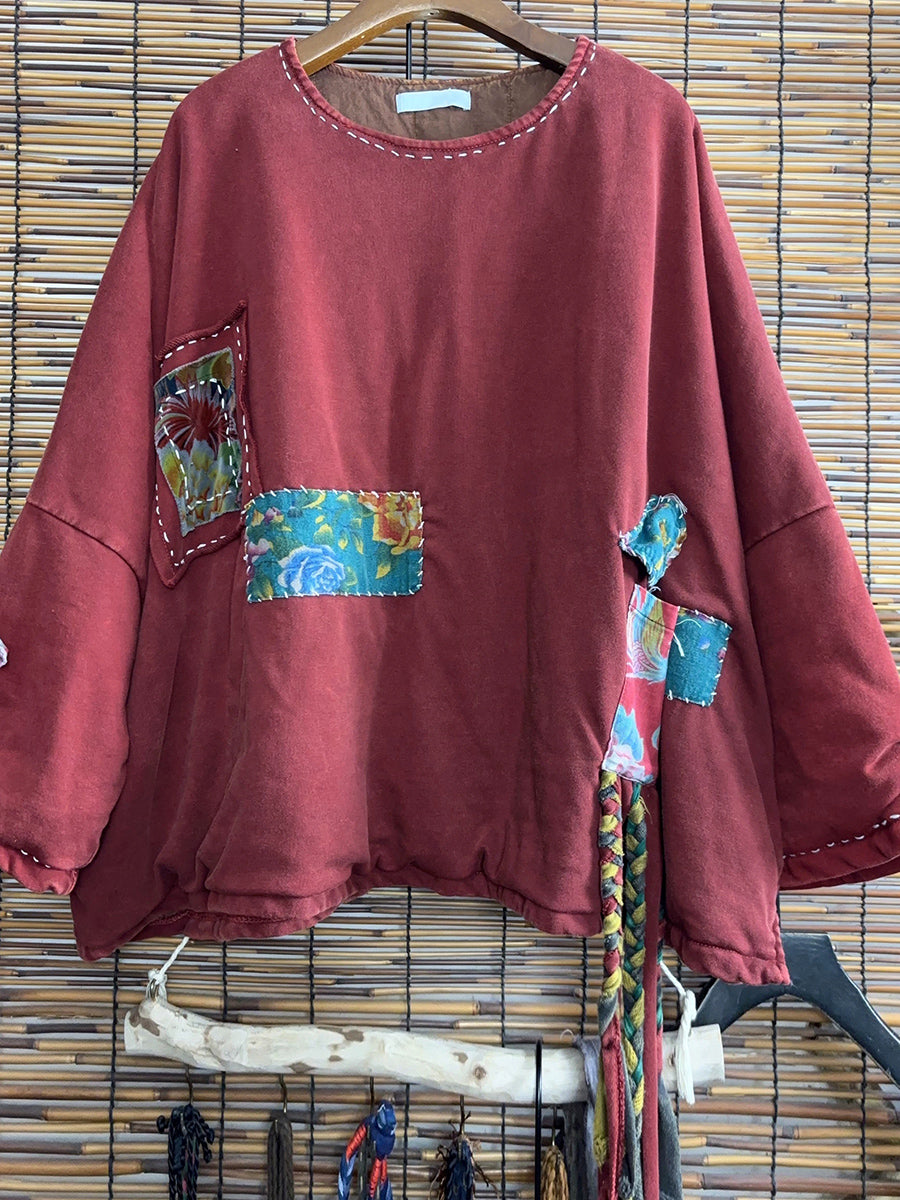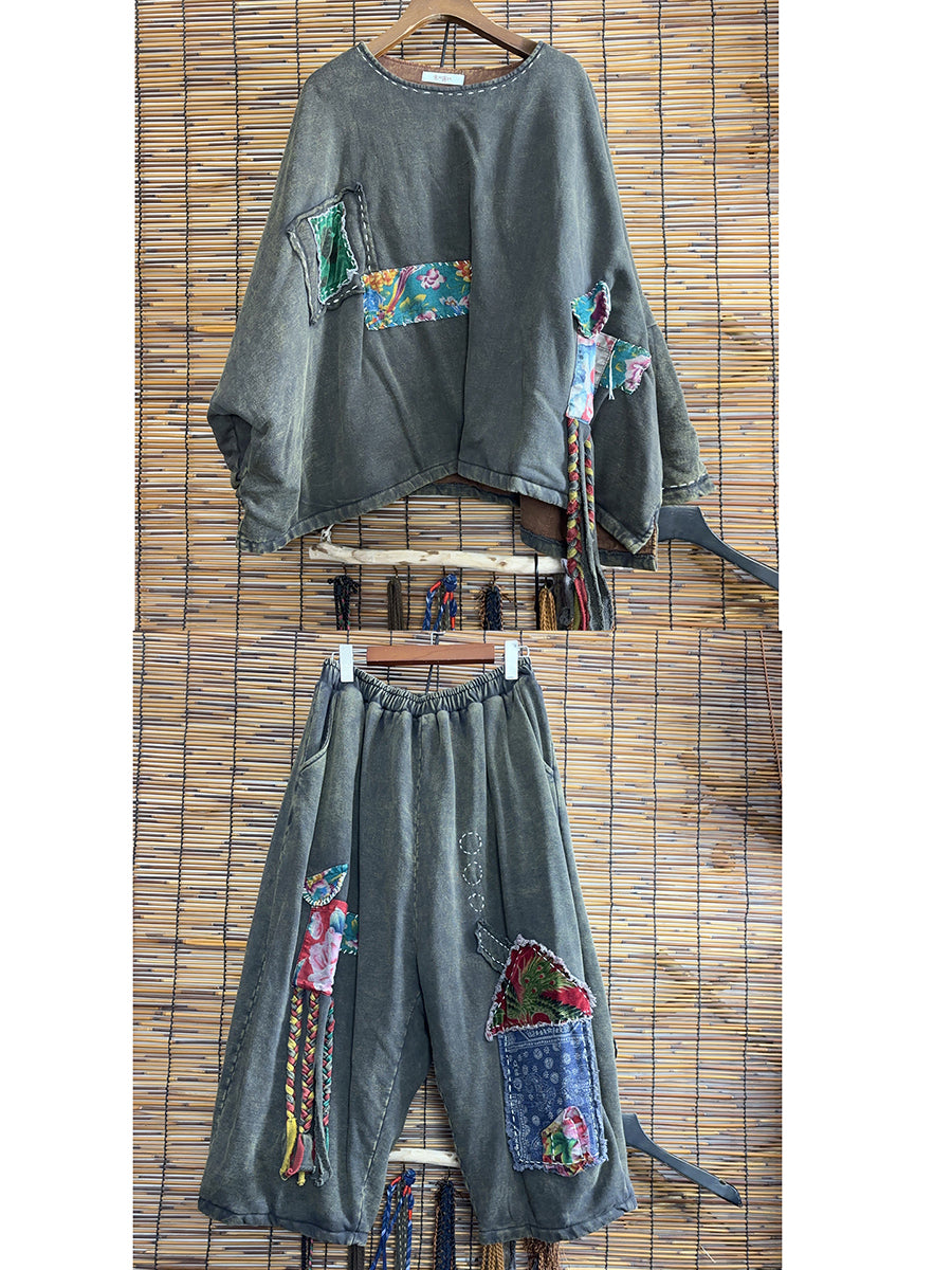 Damen Winter Retro Patchwork O-Neck Quasten Anzüge